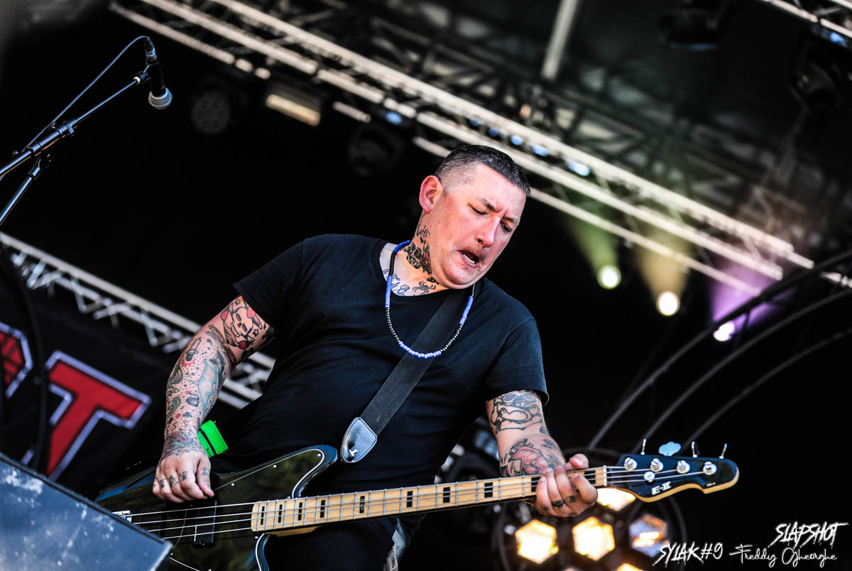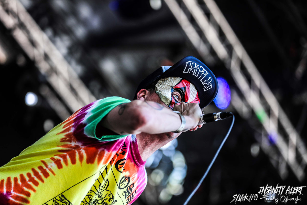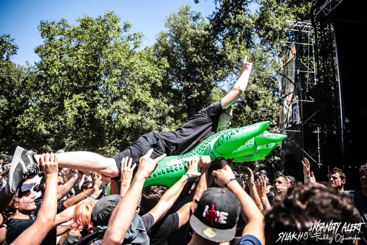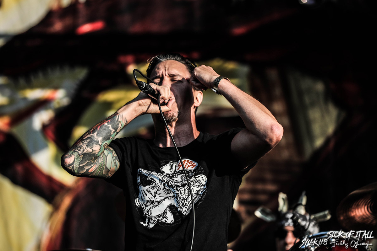 Après avoir retourné le ROCK’N’EAT il y a peu, INSANITY ALERT est de retour dans la région pour répandre son All Mosh – No brain Thrash Crossover, visiblement très attendu par une foule d’ores et déjà conquise et ne demandant qu’à en découdre ! Faut dire que la folie déjantée autrichienne s’y prête bien et les bougres ont une forme olympique qu’ils vont mettre à contribution pour renverser le SYLAK ! Tout y passe, des masques loufoques aux traditionnels panneaux indicateurs, des pas de danse Piccolo à l’humour dévastateur (auf französich bitte !) pour que le mosh pit ne sache plus où il habite sur chacun des morceaux qui font tous mouche ! Délire total et total chaos dans la fosse sur « All mosh no brain », « Metal punx never die » et le célèbre « Run to the pit » version revisitée du morceau presque éponyme d’IRON MAIDEN ! Inutile de vous dire que pour bon nombre de festivaliers, INSANITY ALERT restera comme le groupe qu’il ne fallait pas louper lors de cette édition ! Et franchement, ce n’est pas moi qui vais vous dire le contraire !