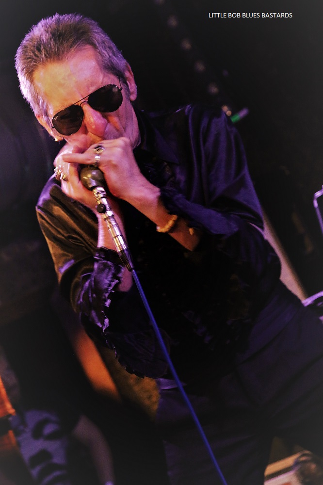 Que ce soit sous le vocable de LITTLE BOB, LITTLE BOB STORY ou maintenant LITTLE BOB BLUES BASTARDS, Roberto Piazza et son rock n’roll « from le Havre » n’a jamais retourné son perfecto et il est resté, fidèle au rock. Un rock vrai, pur, rebelle parfois, dénonciateur aussi accompagné sur cette tournée par des musiciens éprouvés, concernés par cette démarche intense et émotionnelle. Au passage nous notons la présence derrière les fûts de Nico Garotin compère de toujours et bien entendu Bertrand à la contrebasse remarquée, Gilles à la guitare scalpel et Mickey à l’harmonica bluesy. Après plus de 40 ans de route « le hurleur d’un mètre soixante » n’a cessé de vivre son rock n’roll, son blues et celui des personnes rencontrées au hasard de la vie, qu’elle soit musicale ou bien celle de tous les jours avec des anecdotes à la clé pour les laissés pour compte, les « cabossés » de la vie, c’est aussi le rock n’roll avec un grand « R ». Musicalement aujourd’hui Little Bob et son groupe n’ont de leçons à recevoir de personne et continuent donc à tourner, la tournée actuelle étant effectuée afin de promouvoir un nouvel album intitulé « new day coming ». Mais l’on se doute bien que c’est l’occasion de rencontrer à nouveau son public que ce soit en France où à l’étranger, notamment en Angleterre où Little Bob est connu comme le « loup blanc ». Alors ici ce soir dans un brin de Zinc plein comme un œuf, Little Bob Blues Bastards impressionne avec à la clé un voyage dans le temps mais aussi des émotions en acceptant le sourire et la gentillesse de cette légende du rock-blues qui n’a pas choisi le chemin facile du « mainstream » mais la pureté originelle du blues et du rock. Les titres s’égrènent, des anciens des nouveaux, du Woody Guthrie et tout se termine avec le fameux « riot in Toulouse ». Mais ne partez pas, Little Bob est généreux et nous offre plusieurs rappels dont le dernier qui n’est autre que « lucille », où quand Little Bob reprend Little Richard, que du bonheur donc ! Soirée magique donc, soirée hors du temps qu’il ne fallait surtout pas manquer. Alors merci à ces rockeurs cultes et bien sûr merci au Brin de Zinc pour l’accueil toujours bien apprécié. |