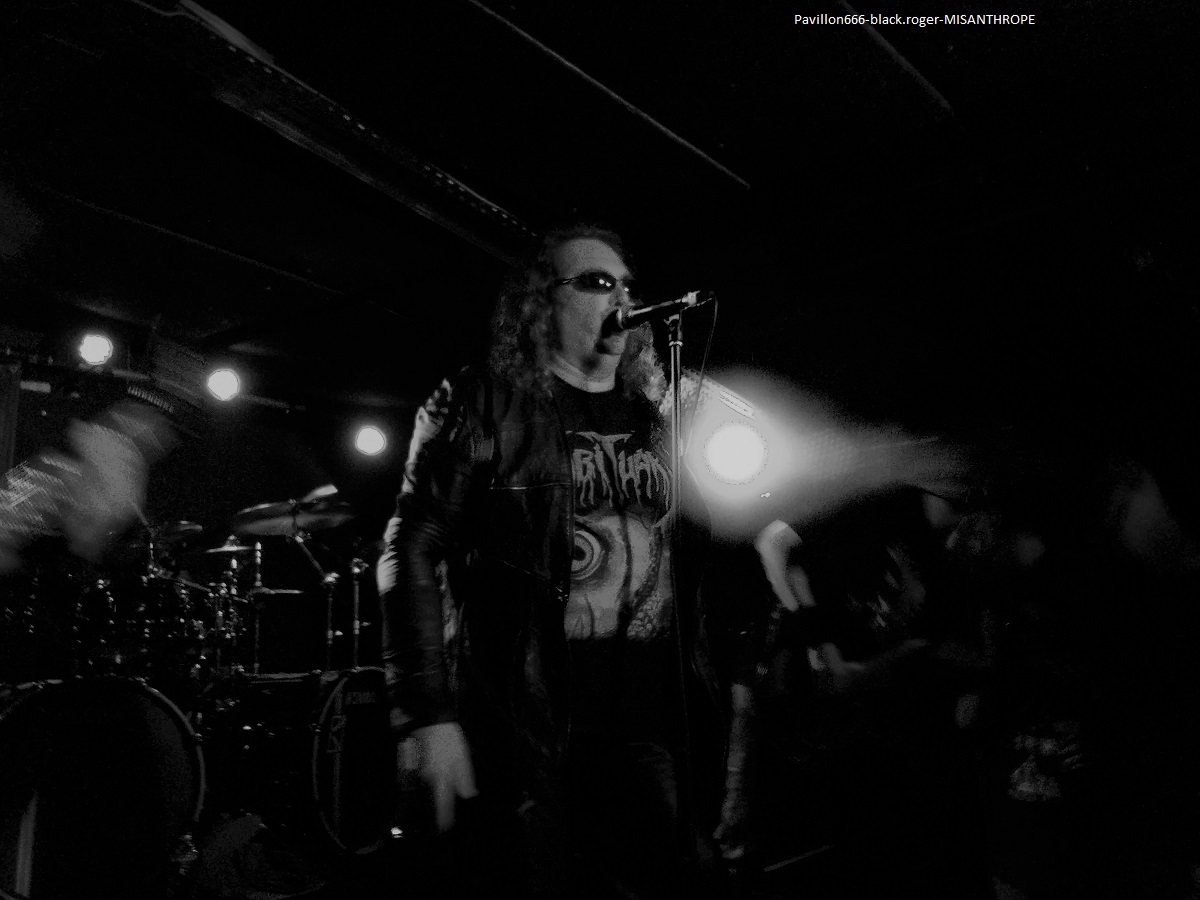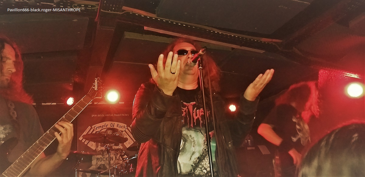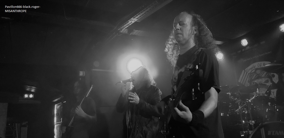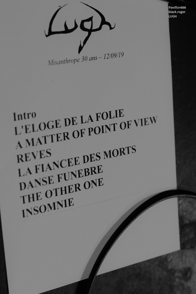 A noter avant tout propos que les quelques photos de Misanthrope figurant sur ce live-report ont été effectuées à l’aide d’un portable, l’appareil photo de votre serviteur Black-roger a cru bon de tomber en panne au début du set de SAS l’Argilière, excusez donc la mauvaise qualité des clichés pour ce groupe. A 20heures 45 rendez-vous devant la scène afin d’accueillir LUGH pour un set de folie dans tous les sens du terme. En effet Lambert, chanteur acteur d’un théâtre bizarre (sic) nous emmène dans un monde rock, metal et gothique en brisant toutes barrières du convenu. Prestation théâtrale donc où le binaire du rock côtoie le heavy lourd (pléonasme ?) et le côté sombre du black depuis les cieux jusqu’aux enfers et au « batcave » pourquoi pas ! Le chant hésite entre français et anglais, les guitares sont incisives et …déroutantes parfois (clin d’œil au prog), les rythmiques sont diaboliques ne laissant pas s’installer la monotonie. De « l’éloge de la folie » à « l’insomnie » en passant par « la fiancée des morts » et la « danse funèbre », les fils de la divinité Celtique Lug vous maltraitent les neurones sans ménagement, et nous avons aimé ce soir la prestation de LUGH, vraiment ! Set-list en photo. MISANTHROPE sur scène, c’est tout un poème, et ce soir nous allons déguster leur offrande, la rétrospective complète de leur discographie depuis « hater of manking » jusqu’à « alpha X omega » dixième album en trente années de vagabondages métalliques et de divagations textuelles et théâtrales. Alors me direz-vous, Misanthrope c’est quoi au juste ? Et bien c’est une façon particulièrement frenchie d’aborder le metal avec un certain côté extrême que ce soit dans les textes originaux ou que ce soit dans les cavalcades entêtantes entrecoupées de lourdeurs plombées. Je choisirai deux titres, le côté pile et le côté face, qui marquent la soirée en ce qui me concerne comme « humiliation libertines » et « 1666 théâtre bizarre », mais SAS de l’Argilière nous tient en haleine sur chaque titre de par sa (ses) voix criardes, plaintives voire « growlées », sa présence, son « à propos ». Et que dire des musiciens tenant le « haut du pavé » dans le style, si style il y a bien entendu. Mais ici l’originalité est de mise, les anciens fans boivent et reprennent les paroles, les nouveaux spectateurs qui découvrent en restent « bouche-bée », que du bonheur donc, on aime, que dis-je on adore cette prestation, hors du temps et de l’espace point barre. Misanthrope, ce groupe majeur de la scène frenchie, qu’il soit adulé ou haï a donc marqué d’une empreinte indélébile cette soirée particulière à Lyon offerte par le fameux Rock nEat, que l’on remercie. N’oublions pas que nos locaux de Lugh nous ont follement interpellés ! |
