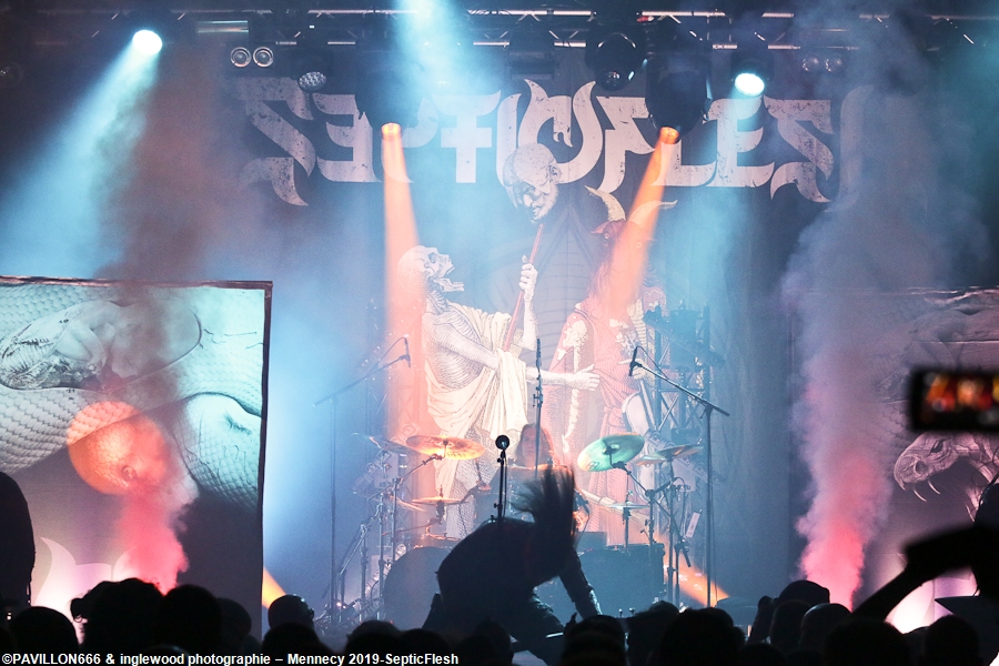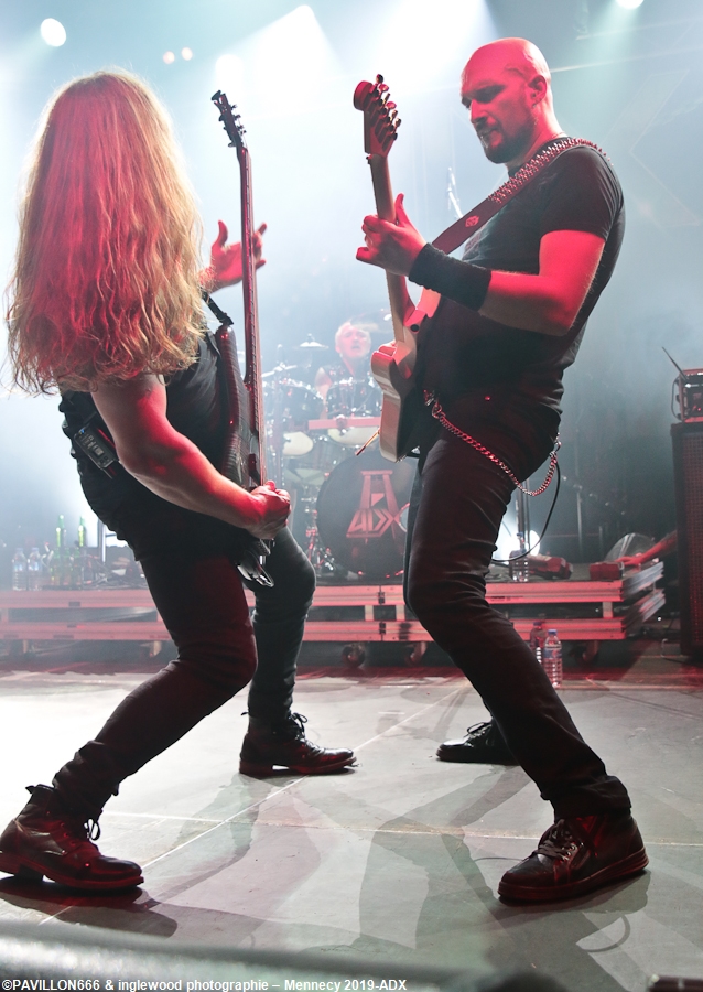 Comme à l’accoutumée, une affiche de rêve pour un prix hyper raisonnable : Le vendredi : Jades, Lonewolf corp., KOB, ADX, Sidilarsen, Prong et SepticFlesh. Le samedi : LYNN, CHABTAN, BLACK HORIZON, Daturha, ARCANIA, Smash Hit Combo, Les Tambours du Bronx et Le Bal Des Enragés. Un petit mot sur l’organisation, au top, que ce soient les stands extérieurs, l’accueil billetterie, la sécu, toute l’équipe est sympathique pro et souriante, c’est vraiment un plaisir renouvelé que de venir à Mennecy. Idem pour la scène principale. Super son, belles lumières… Des conditions professionnelles qui ont permis aux groupes de jouer dans des conditions irréprochables. Cerise sur le gâteau, la seconde scène extérieure qui permet de patienter pendant les changements de plateau. Bon, parlons musique et concerts : Arrivé en fin d’après-midi, je n’ai pas pu assister au concert de Jades et n’ai vu que les trois derniers morceaux de Lonewolf corp. Ces derniers m’ont donné une bonne impression technique et un agréable moment visuel. On a affaire, ici, à de vieux briscards pratiquant un hard-rock 80’s à la ACCEPT. Les soli sont propres et effectués par des mecs qui connaissent leur art. Une audience encore un peu faible n’a pas aidé le groupe à bien chauffer l’ambiance malgré ces quelques titres plutôt efficaces. C’est une autre belle bande de vieux pirates qui prend la scène avec KOB. Déjà, faire la balance avec un titre de Maiden, moi, ça me met dans de bonnes dispositions ! Puis nous balancer un set hyper poilu, catchy et même assez original, pour un groupe évoluant clairement sur un registre heavy 70-80’s, je dis bravo. Mention au chanteur qui possède une voix incroyable qui propulse le beau travail de ses acolytes. Je ne me lancerais surement pas dans un cours d’histoire pour vous apprendre qui est ADX. Ce groupe français possède une belle page Wikipédia que je vous engage à aller lire si le cœur vous en dit. Retenez seulement que nous avons à faire à un groupe de bâtisseur du hard-rock national qui mérite tout notre respect. Guitariste moi-même j’étais vraiment très intéressé par la nouvelle recrue d’ADX : Arnaud « Nono » ou bien encore Neogeofanatic (son nom de youtubeur). Loin d’avoir son talent (mais vraiment très loin) j’ai dégusté pas mal de ses vidéos et je voulais voir la bête en live. Nulle déception sur ce point, ce mec est vraiment hyper doué et s’amuse beaucoup sur scène, grand musicien et personne sympa. Attention, les mecs ont la dalle, ADX n’est pas un groupe croulant ou nostalgique, les titres s’enchainent dans l’énergie et la violence sans nous laisser respirer, c’est très bon. J’ai passé un bon moment avec un groupe pro et proche qui maîtrise son sujet. Ce fut mon deuxième concert de Sidilarsen et je dois bien dire que je ne fus, encore une fois, pas déçus du spectacle. Certes nous n’avons pas affaire à des jeunots mais à une belle équipe de pros. Mais tout de même ! ce groupe est une machine. Bien aidé par des titres vraiment efficaces et tous taillés pour la scène, Sidilarsen déroule son répertoire à la perfection. Rageur et engagé et au niveau des plus grand musicalement, ce groupe est à voir absolument. De plus, ils prennent le temps de venir parler aux fans, à l’image des Mass, à la fin du concert, geste que j’apprécie beaucoup en cette époque de pack VIP hors de prix et de propos. Il y a 30 ans, j’ai acheté le vinyle de « Beg to Differ », second album de Prong. Cet album, je l’ai écouté des centaines de fois, sans jamais avoir eu la chance de les voir en live. J’avais vraiment hâte de voir ce que donnait le groupe, même s’il n’a plus grand-chose à voir avec sa version 90’s. Force est de constater que l’efficacité et le groove sont au rendez-vous, le trio est en place et les morceaux déchirent vraiment en live. Le chanteur Tommy Victor est attachant et drôle (sans vraiment le vouloir) à cause de ses tentatives de communication en français. Prong visite tout son répertoire en une heure et ça passe très bien, le public répond présent et c’est un super moment pour les nostalgiques des 90’s tout comme les plus jeunes. La musique de Prong ne semble pas souffrir des années tout comme certains textes encore très actuels. Un des pics de la soirée. A ce moment de la soirée, il est déjà tard et j’ai vu tout ce que je voulais voir. SepticFlesh, c’était donc du bonus. Assez fan du groupe sur CD, j’attendais beaucoup des Grecs. Malheureusement ce fut un peu bof. Je me doute bien que le groupe ne peut emmener un ensemble philharmonique en tournée avec les cœurs, les sopranos etc… mais bon, tout sur du sample ça donne un côté artificiel et préfabriqué qui lasse assez rapidement. Scéniquement, il ne se passe pas grand-chose non plus, les musiciens sont statiques et peu m’ont semblé assez peu expressifs. Hormis ça, les titres sont puissants, bien composés et très bien interprétés, rien à dire… Personnellement, je me suis un peu ennuyé ce qui ne fut pas le cas de la majorité du public qui m’a semblé assez réceptif au Death de nos amis Grecs. Encore une belle édition du Mennecy Metal Fest, un événement à taille humaine emmenée par une équipe de bénévoles tous à fond. Un réel plaisir, merci. Pour des raisons de confidentialité YouTube a besoin de votre autorisation pour charger. Pour plus de détails, veuillez consulter nos Politique de confidentialité. |