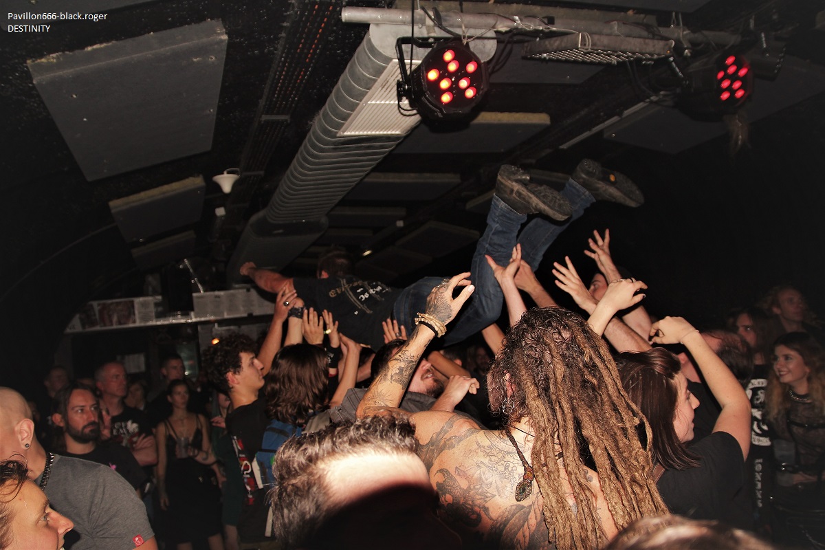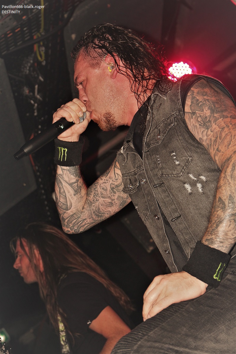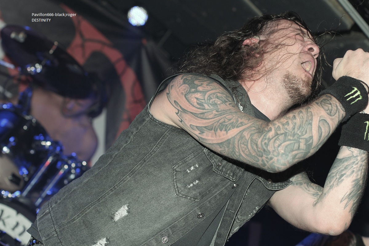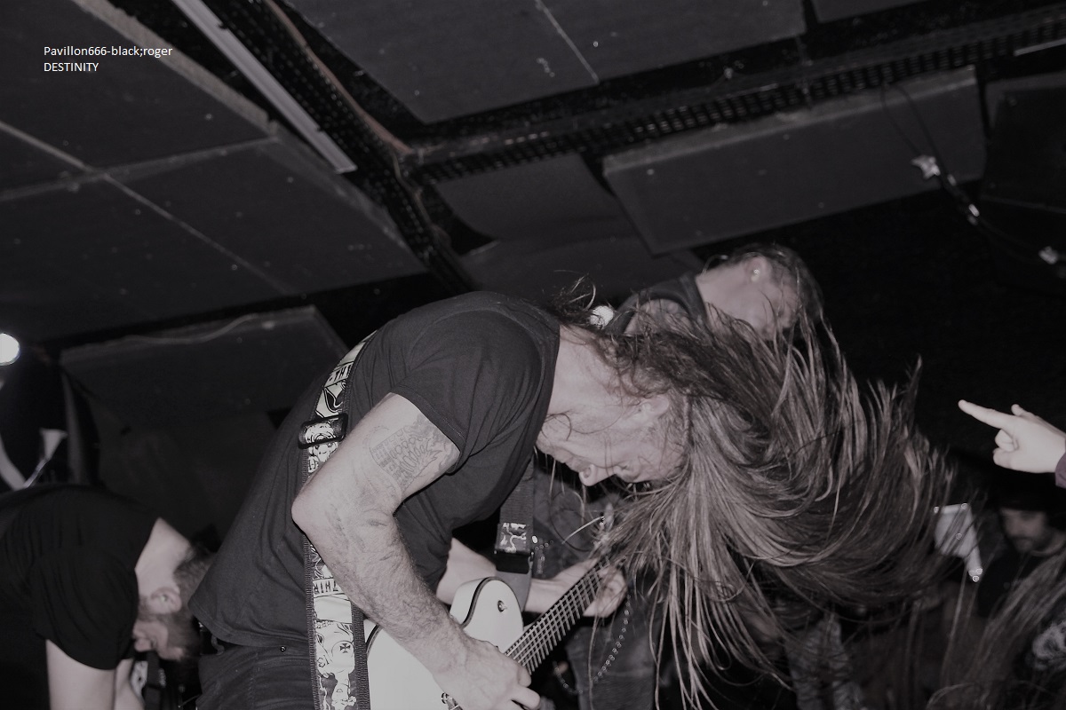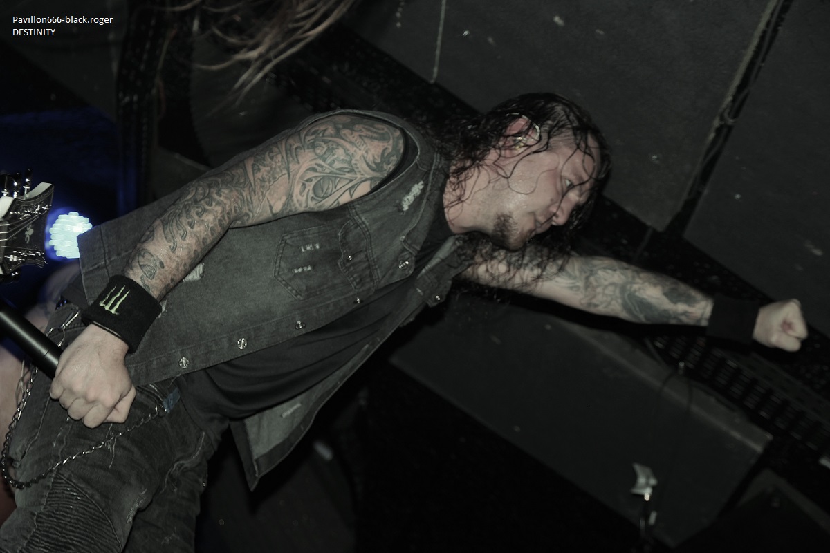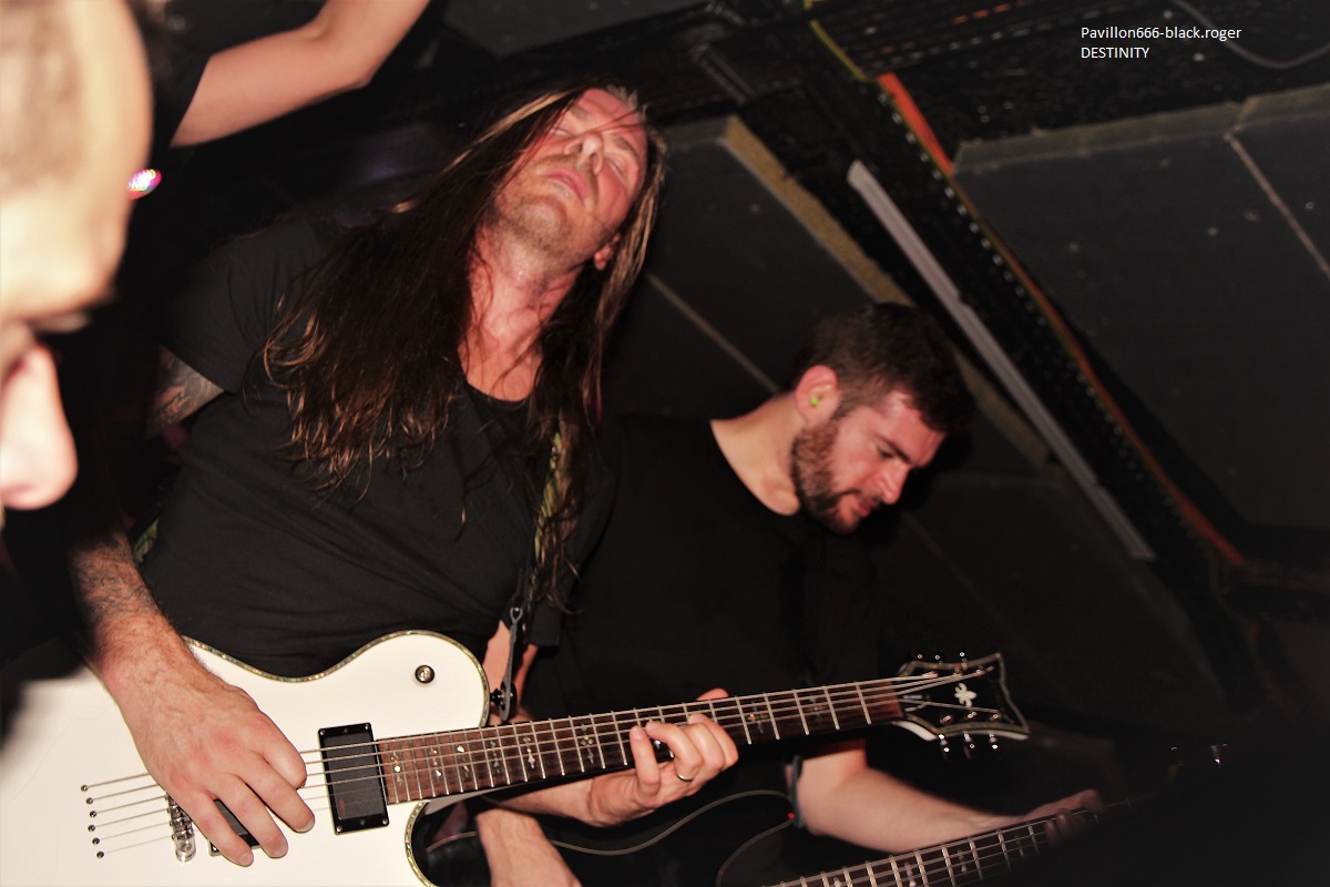 Avec leur death/thrash à la Suédoise ils ont su mixer avec bonheur mélodie et agressivité que l’on avait retrouvée dans leurs 4 albums marquants réalisés entre 2005 et 2012. Alors ce soir, comme le dit son frontman Mick Caesare « ça fait du bien de jouer à la maison » et, « boosté » par un public qui va tout renverser dès le premier titre, Destinity va retourner littéralement le RNE. Nous n’en attendions pas moins en fait et tous ces gens venus faire la fête du rock/metal, qu’ils soient amis, fervents, fans de toujours ou tout simplement curieux, ont instauré une ambiance de « ouf » rarement égalée dans ces lieux il faut le souligner.
