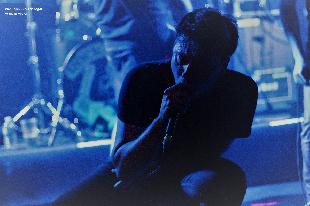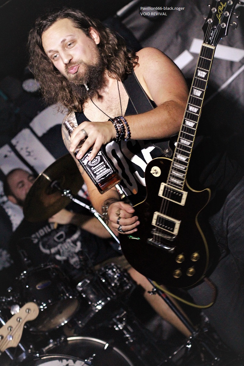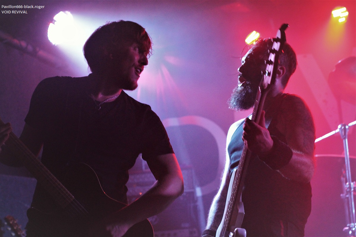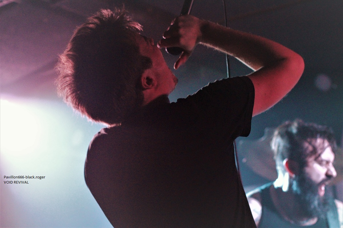 A 20 heures 30, sans tambour ni trompette, mais avec guitares, basse et batterie + un chanteur (un second vocaliste viendra d’ailleurs sur un titre nous rappeler les débuts de la formation), voici donc les Lyonnais de VOID REVIVAL qui s’approprient le premier son (pas le premier sang voyons !).