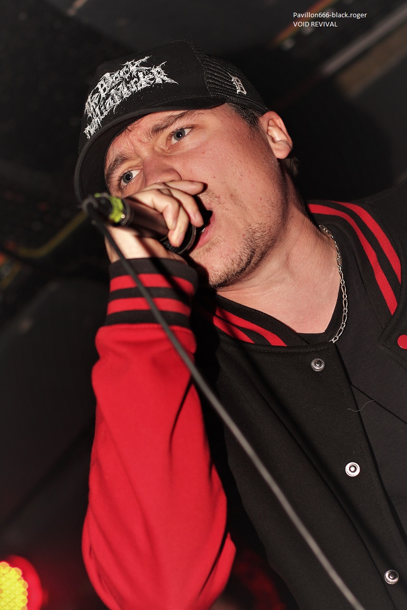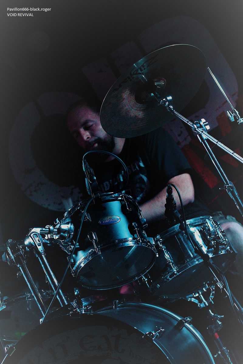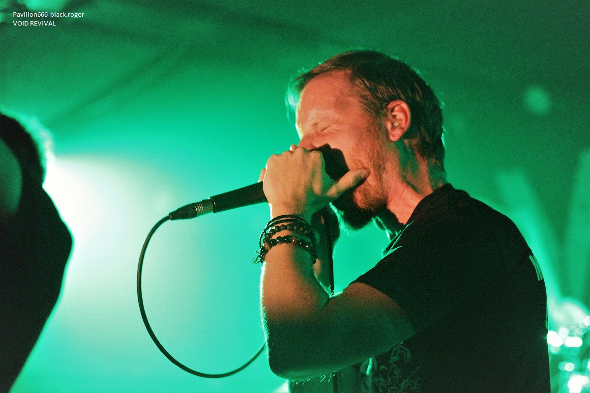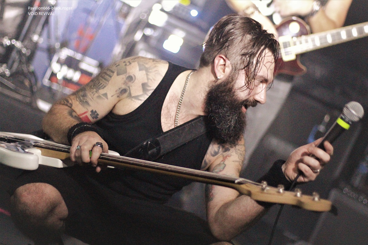 A 20 heures 30, sans tambour ni trompette, mais avec guitares, basse et batterie + un chanteur (un second vocaliste viendra d’ailleurs sur un titre nous rappeler les débuts de la formation), voici donc les Lyonnais de VOID REVIVAL qui s’approprient le premier son (pas le premier sang voyons !).