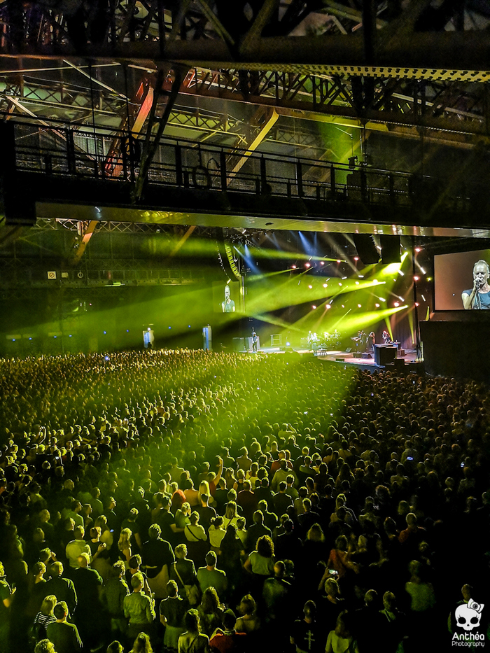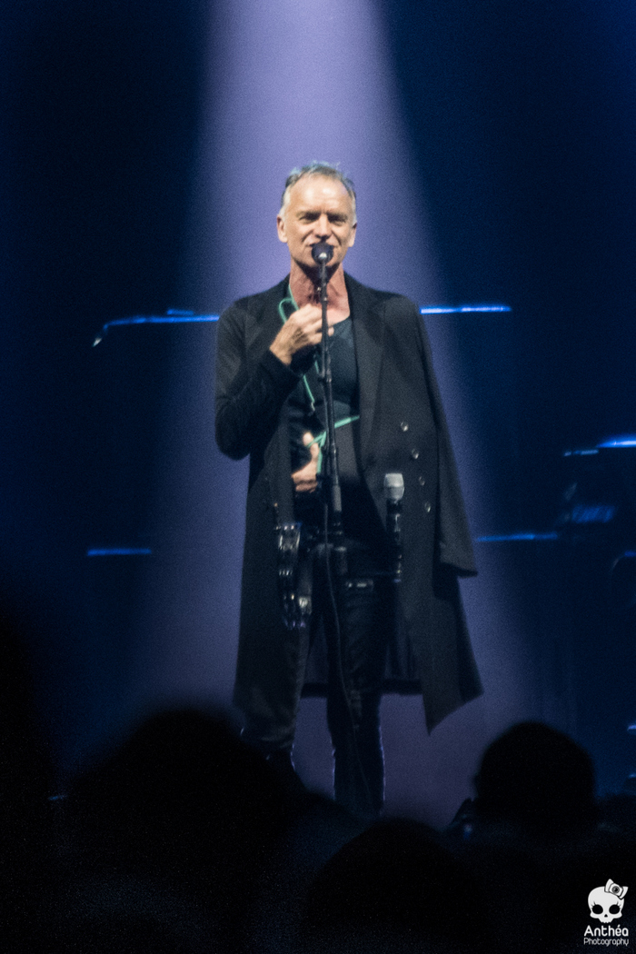 Et voici notre british de retour par chez nous pour une date à couvert cette fois après un passage cet été aux Nuits de Fourvière. Plus de 8000 personnes rassemblées pour venir applaudir l'ex bassiste de Police. Sans basse d'ailleurs ! Blessé quelques jours auparavant, il arrive sur scène le bras en écharpe.