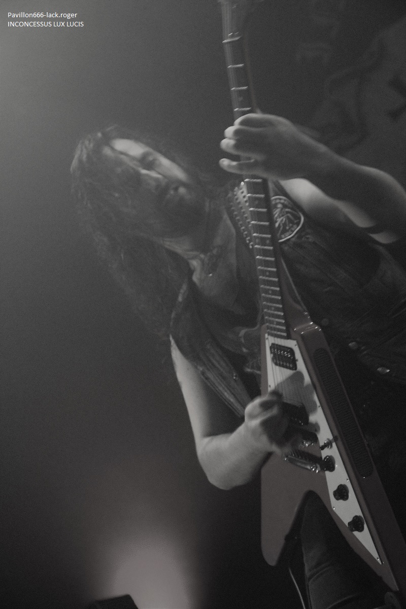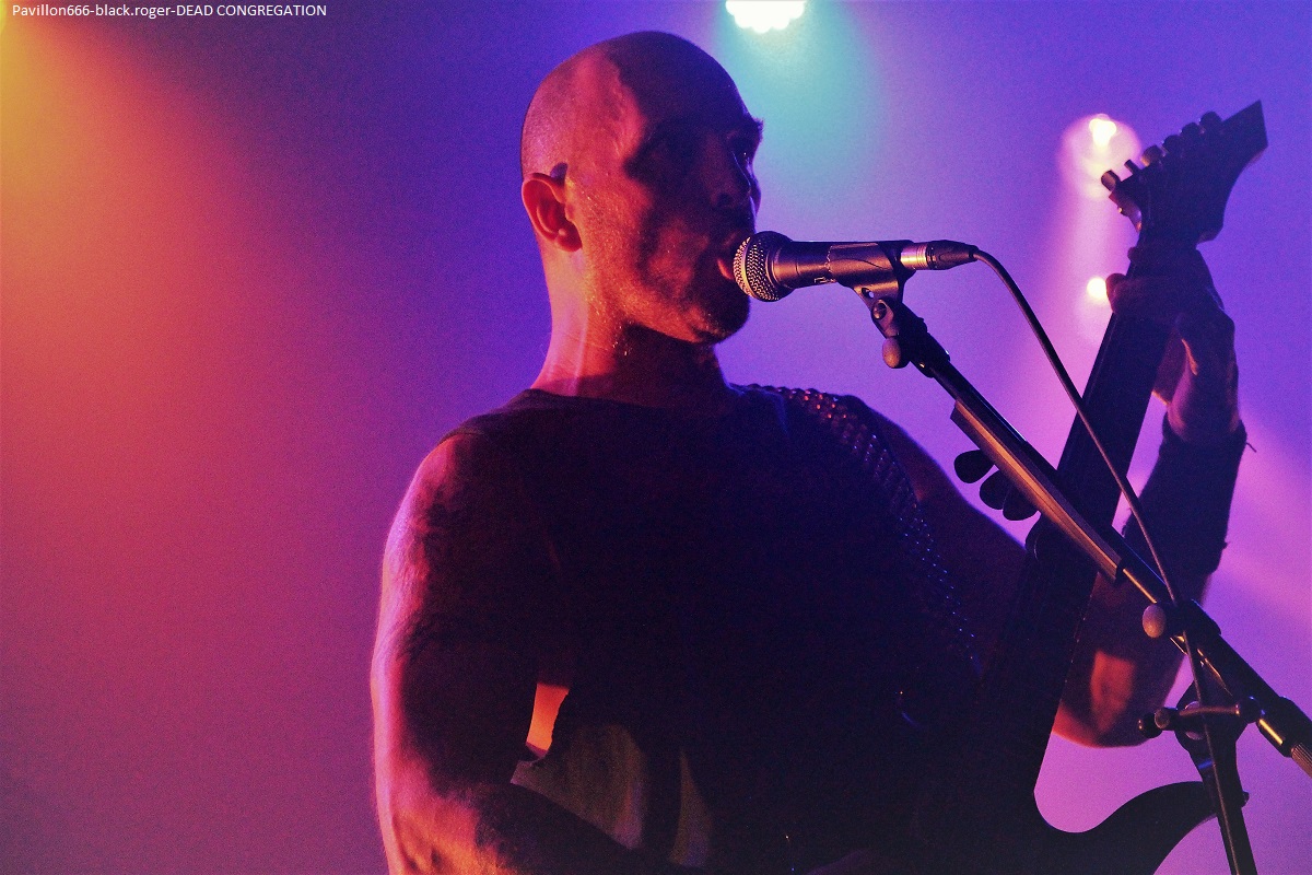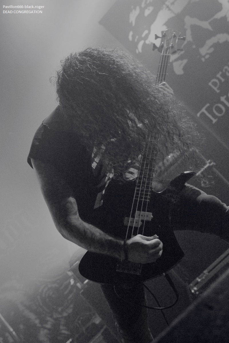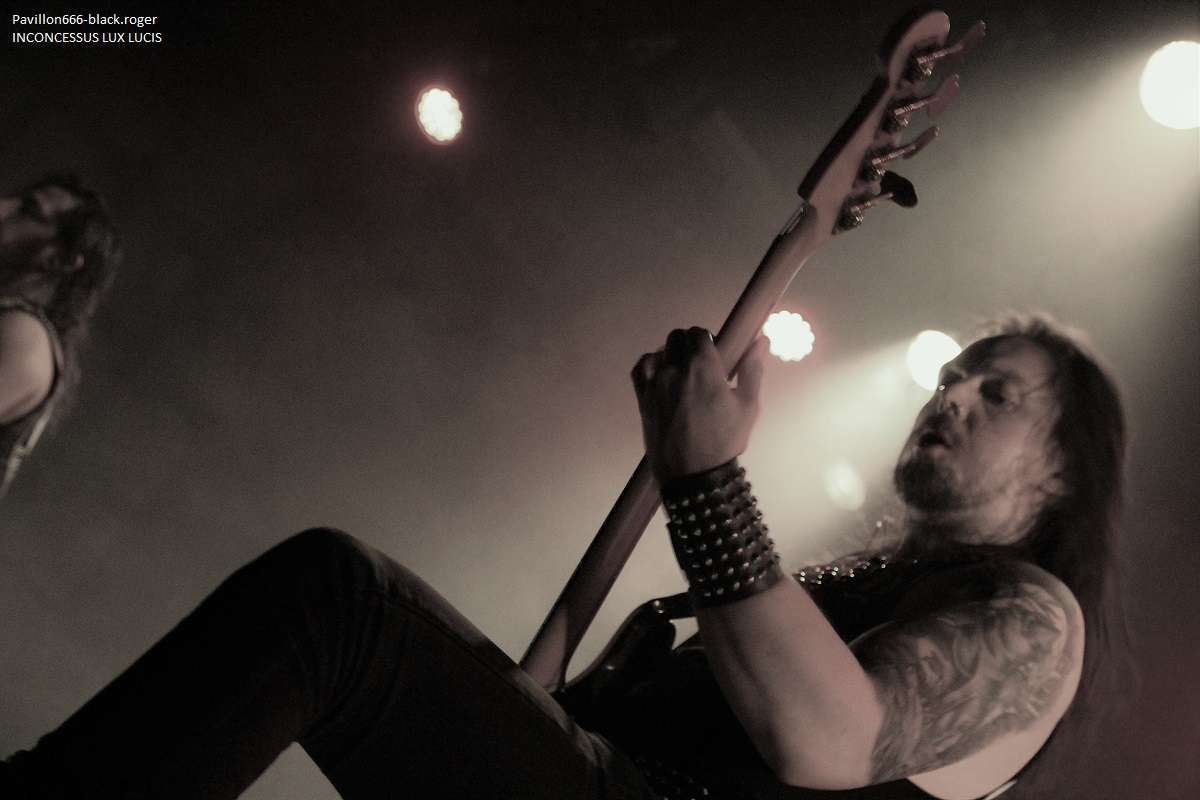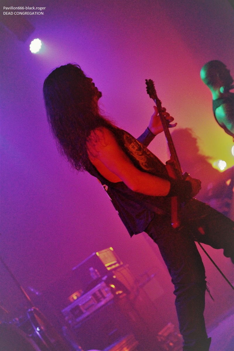 Les concerts au CCO démarrant tôt en général, timing serré oblige, c’est donc à 19 heures 15 que le trio british INCONCESSUS LUX LUCIS lance les hostilités. Au menu du black/thrash à la Venom (oups !) avec une pointe de fucking rock n’roll sauvage à la Motörhead cela ne s’invente pas ! Formé en 2006 ce groupe possède trois albums et semble avoir une maîtrise de la scène acquise de longue date rien qu’à voir la démonstration en live de leurs compositions. Comme dit plus haut, avec ces Anglais le black est sauvage, bien dans la lignée des groupes de la « perfide Albion » tout simplement. Nous en prenons donc plein la « g…le », mais au final on arrive quand même à se lasser au bout d’un moment car trop souvent leurs titres se suivent…et se ressemblent nous offrant donc une certaine linéarité lassante, voilà c’est dit, la suite SVP ! La suite se nomme NOCTURNAL GRAVES et là nous allons vraiment déguster dans tous les sens du terme avec leur death/thrash/black « holocaust » de haute volée, aargh ! Comme ses compatriotes de Destroyer 666, Nocturnal Graves ne fait pas dans la dentelle depuis trois albums dont le fameux « from the bloodline of cain » qui avait mis tous les « potets » dans le rouge et réalisé dans une certaine urgence à tout détruire. Depuis, le groupe a un peu « levé le pied » mais si quelques mid-tempos sont introduit c’est pour mieux faire passer la pilule d’une hargne bien perceptible en live. Comme ce soir à Lyon où le public a largement apprécié et même plus encore. Avec les Grecs de DEAD CONGREGATION nous allons vraiment rentrer dans une musique de cimetière, lourde, pesante, aux ambiances morbides affichés, du death-metal pur jus de cercueil pourrait-on dire. Mais si les chevaux métalliques tirant le corbillard avancent à pas lents, ils ne renient pas cependant à s’emballer et échapper au contrôle de l’équipage dans des vitesses brutes de décoffrage faisant hurler les instruments qui soutiennent une voix morbide et blasphématoire. Bref, Dead Congregation porte haut et fort depuis quinze ans la couleur noire du pur death- metal qui lui va si bien. Les puristes ont donc apprécié ce soir, quant aux autres… On ne présente plus DESTROYER 666 qui depuis 25 ans maintenant et 6 enregistrements vient régulièrement détruire ce qu’il nous reste de neurones. Les Australiens sont toujours aussi furieux en live inutile de résister nous allons apprécier à sa juste valeur ce black-thrash peut-être un tantinet vintage mais qui s’enorgueillit de rester fidèle à cette « furiosité » old-school qui nous avait explosé la cervelle dans les 80’s. Ici les riffs sont propulsés à tirs rendus ne laissant que peu de passage aux soli malsains et vénéneux. Bien entendu leur thrash sans limite prend des allures occultes et morbides pour ce côté black sous-jacent. Alors destroyer 666 détruit tout sur son passage (pléonasme !) et la puissance de feu est incommensurable faisant sortir le public de ses « gonds » pour des exploits physiques sauvages cela va de soi. Et ce dès les premiers envois comme « Wildfire », « breed apart », « call of the wild », « traitor » » et « wargod », qui nous collent contre les murs. Une petite heure de violence jouissive et puis s’en vont. Dommage, nous en aurions bien repris une louche de cette sauce piquante distillée dans nos « cages à miel » ce soir, mais bon ! Alors à une autre fois, groupe vu en live « x » fois en ce qui me concerne, mais toujours au top niveau d’une brutalité incontrôlée. Bravo à cette formation fidèle à elle-même et insensible aux sirènes de la modernité pour notre plus grand plaisir de « défonce » musicale d’une efficacité redoutable. Merci Sounds Like Hell productions pour cette soirée métallique en diable qui a fait du bien à nous métalleux extrêmes invétérés. Merci bien entendu aux 4 formations en lice, et merci au public pour l’ambiance instaurée. |