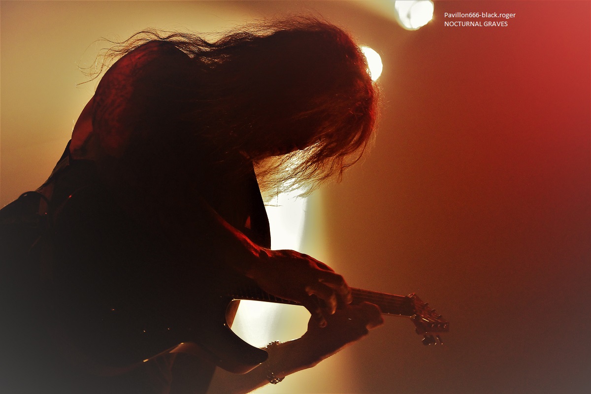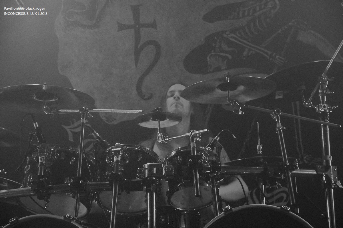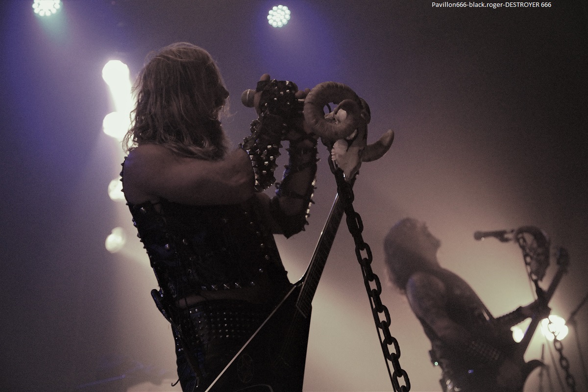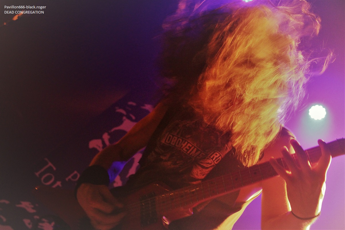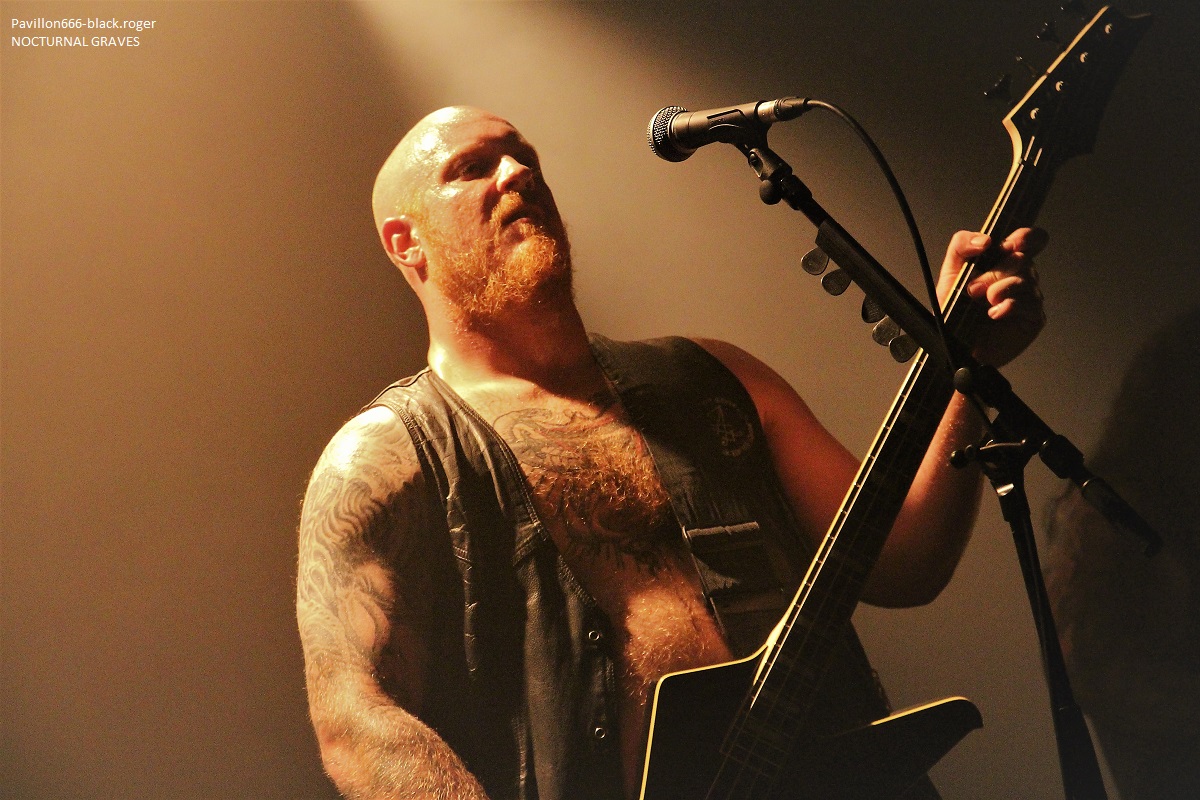 Les concerts au CCO démarrant tôt en général, timing serré oblige, c’est donc à 19 heures 15 que le trio british INCONCESSUS LUX LUCIS lance les hostilités. Au menu du black/thrash à la Venom (oups !) avec une pointe de fucking rock n’roll sauvage à la Motörhead cela ne s’invente pas ! Formé en 2006 ce groupe possède trois albums et semble avoir une maîtrise de la scène acquise de longue date rien qu’à voir la démonstration en live de leurs compositions. Comme dit plus haut, avec ces Anglais le black est sauvage, bien dans la lignée des groupes de la « perfide Albion » tout simplement. Nous en prenons donc plein la « g…le », mais au final on arrive quand même à se lasser au bout d’un moment car trop souvent leurs titres se suivent…et se ressemblent nous offrant donc une certaine linéarité lassante, voilà c’est dit, la suite SVP ! La suite se nomme NOCTURNAL GRAVES et là nous allons vraiment déguster dans tous les sens du terme avec leur death/thrash/black « holocaust » de haute volée, aargh ! Comme ses compatriotes de Destroyer 666, Nocturnal Graves ne fait pas dans la dentelle depuis trois albums dont le fameux « from the bloodline of cain » qui avait mis tous les « potets » dans le rouge et réalisé dans une certaine urgence à tout détruire. Depuis, le groupe a un peu « levé le pied » mais si quelques mid-tempos sont introduit c’est pour mieux faire passer la pilule d’une hargne bien perceptible en live. Comme ce soir à Lyon où le public a largement apprécié et même plus encore. Avec les Grecs de DEAD CONGREGATION nous allons vraiment rentrer dans une musique de cimetière, lourde, pesante, aux ambiances morbides affichés, du death-metal pur jus de cercueil pourrait-on dire. Mais si les chevaux métalliques tirant le corbillard avancent à pas lents, ils ne renient pas cependant à s’emballer et échapper au contrôle de l’équipage dans des vitesses brutes de décoffrage faisant hurler les instruments qui soutiennent une voix morbide et blasphématoire. Bref, Dead Congregation porte haut et fort depuis quinze ans la couleur noire du pur death- metal qui lui va si bien. Les puristes ont donc apprécié ce soir, quant aux autres… On ne présente plus DESTROYER 666 qui depuis 25 ans maintenant et 6 enregistrements vient régulièrement détruire ce qu’il nous reste de neurones. Les Australiens sont toujours aussi furieux en live inutile de résister nous allons apprécier à sa juste valeur ce black-thrash peut-être un tantinet vintage mais qui s’enorgueillit de rester fidèle à cette « furiosité » old-school qui nous avait explosé la cervelle dans les 80’s. Ici les riffs sont propulsés à tirs rendus ne laissant que peu de passage aux soli malsains et vénéneux. Bien entendu leur thrash sans limite prend des allures occultes et morbides pour ce côté black sous-jacent. Alors destroyer 666 détruit tout sur son passage (pléonasme !) et la puissance de feu est incommensurable faisant sortir le public de ses « gonds » pour des exploits physiques sauvages cela va de soi. Et ce dès les premiers envois comme « Wildfire », « breed apart », « call of the wild », « traitor » » et « wargod », qui nous collent contre les murs. Une petite heure de violence jouissive et puis s’en vont. Dommage, nous en aurions bien repris une louche de cette sauce piquante distillée dans nos « cages à miel » ce soir, mais bon ! Alors à une autre fois, groupe vu en live « x » fois en ce qui me concerne, mais toujours au top niveau d’une brutalité incontrôlée. Bravo à cette formation fidèle à elle-même et insensible aux sirènes de la modernité pour notre plus grand plaisir de « défonce » musicale d’une efficacité redoutable. Merci Sounds Like Hell productions pour cette soirée métallique en diable qui a fait du bien à nous métalleux extrêmes invétérés. Merci bien entendu aux 4 formations en lice, et merci au public pour l’ambiance instaurée. |