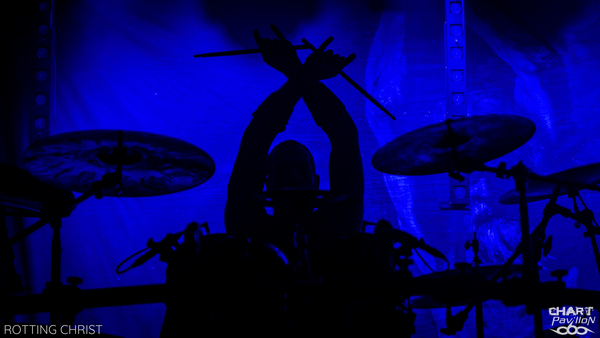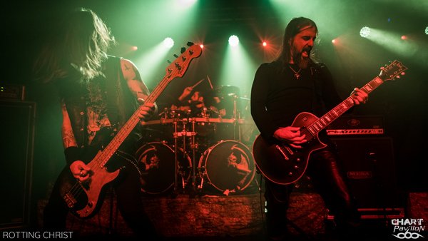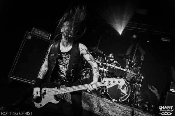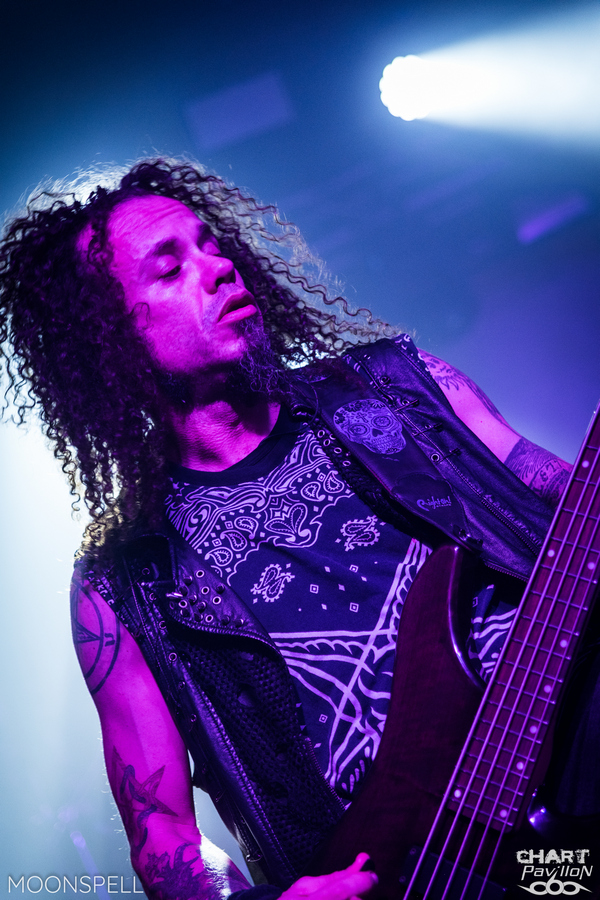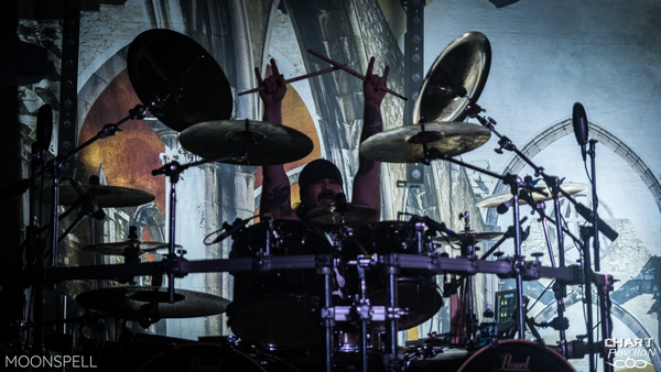 On commence cette soirée par un groupe suisse que je n'avais pas encore eu l'occasion de croiser, SILVER DUST. La formation officie depuis 2013 et son troisième album, « House 21 » est sorti en 2018. Première remarque, si d'habitude ce sont les têtes d'affiche qui ont droit à toute la puissance sonore, SILVER DUST bénéficie d'un très bon son. Mais ce n'est pas tout, le combo a pris le temps de nous livrer un packaging très inspiré. En plus des costumes que portent les musiciens, le visuel est assuré en complément par la vidéo. Cela ajouté à une musique pour le moins percutante, l'ensemble est tout à fait à la hauteur. On oscille dans différentes inspirations metal et si je devais mettre un nom à côté du leur pour vous faire un rapprochement, je mettrais celui de THE VISION BLEAK. C'est en tout cas une belle découverte que ce premier groupe. On poursuit la soirée avec un grand nom de la scène metal extrême qui valait à lui seul ce déplacement. ROTTING CHRIST est de retour et comment ne pas se motiver pour ce concert ? Chaque fois que j'ai eu l'occasion de les croiser depuis 2008, jamais je n'ai été déçu et ce n'est pas ce soir que les choses vont changé. On se prend d'entrée de jeu « 666 » dans les oreilles avant d'enchaîner avec « Dub-sag-ta-ke ». ROTTING CHRIST est le groupe qui en concert vous transporte littéralement. C'est puissant, rapide ou lourd suivant les titres mais toujours d'une intensité implacable. Avec les années le combo continue se bonifier et ne perd rien de son énergie. On sent un groupe toujours motivé et prêt à tout donner comme il l'a fait une nouvelle fois ce soir avec des morceaux d'anthologie comme « Dies Irae » ou l'incontournable « King of a Stellar War » et enfin « Non Serviam » pour une conclusion irréprochable. Comme à son habitude ROTTING CHRIST a été énorme et à lui seul a bien justifié ce déplacement. MOONSPELL fait son entrée avec « Em Nome Do Medo » issu de « Alpha Noir » sorti en 2012. Le groupe assure toujours la promotion de son dernier album « 1755 » exclusivement chanté en portugais mais comme sa sortie remonte à 2017, le groupe peut se permettre de se faire plaisir en allant chercher des titres plus anciens pour agrémenter cette set-list qui nous ne le verrons est plutôt bien pensée. MOONSPELL, depuis ses débuts en 1992 a toujours sur varier sa musique passant du metal extrême à certaines tendances proches de la New Wave. Depuis quelques années déjà et plusieurs albums, le groupe portugais a trouvé sa vitesse de croisière avec des albums percutants tels que « Night Eternal », « Extinct » et donc dernièrement « 1755 ». Mais le passé du groupe est imposant et on ne pourra jamais le lui retirer. On pense bien évidemment à « Wolfheart » en 1995 et « Irreligious » en 1996. C'est donc tout à fait logiquement que l'on retrouve des morceaux tels que « Opium » et « Awake » glissés entre « Desastre » et le plus ancien « Night Eternal ». Tout comme ROTTING CHRIST, et j'imagine l'ambiance chaleureuse entre les deux formations sur cette tournée, MOONSPELL officie depuis tellement longtemps que sa présence sur scène est naturellement imposante. La seule chose qui elle évolue dans un sens différent, ce sont les cheveux qui blanchissent et disparaissent peu à peu. Pour le reste, c'est un show implacable et ce ne sont pas les titres comme « Alma Mater » et « Full Moon Madness » en conclusion qui prouveront le contraire. Une telle affiche est un véritable plaisir. Trouver cette salle de la Tannerie pleine pour un événement de cette ampleur et toutes ces nouvelles têtes est aussi un plaisir. Pour l'anecdote c'est aussi ici que les choses ont commencé pour MOONSPELL avec le label Adipocère et Christian à sa tête. Cela donne un petit côté historique supplémentaire à cette date particulière. Merci encore à La Tannerie pour son organisation et son accueil. |