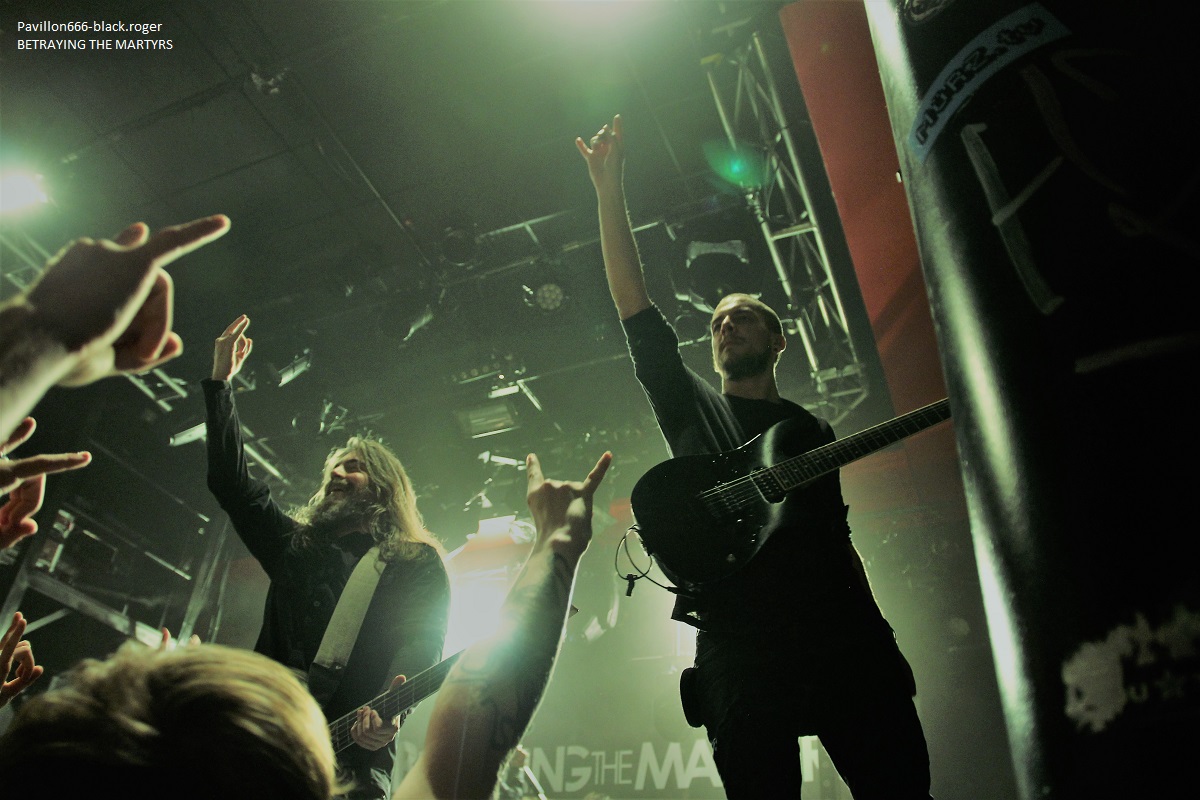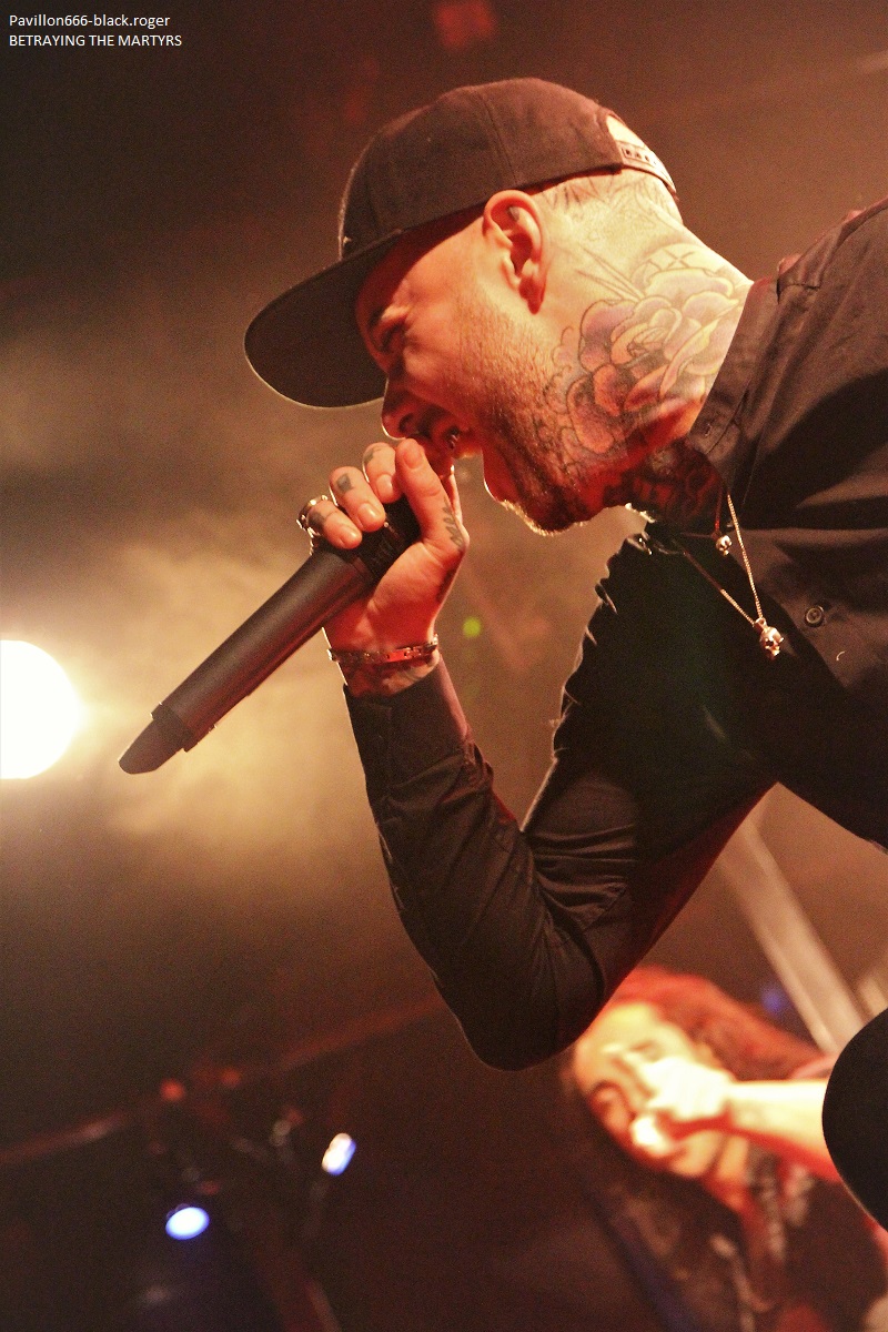 Et maintenant à 23 heures, c’est le meilleur pour la fin ? Non, je n’irai pas jusqu’à dire cela à propos de BETRAYING THE MARTYRS, ce qui désavantagerai les autres groupes. Mais lorsque la bande à Aaron débarque sur scène, c’est un véritable tsunami metalcore qui renverse tout d’emblée de jeu. Alors inutile de résister nous allons être collés au plafond dès le premier titre sur une rythmique d’enfer avec des musiciens s’éclatant de long en large sur la scène, aargh !