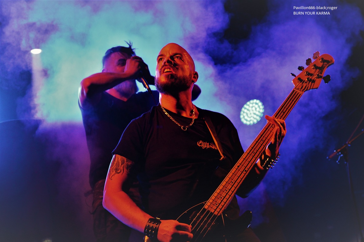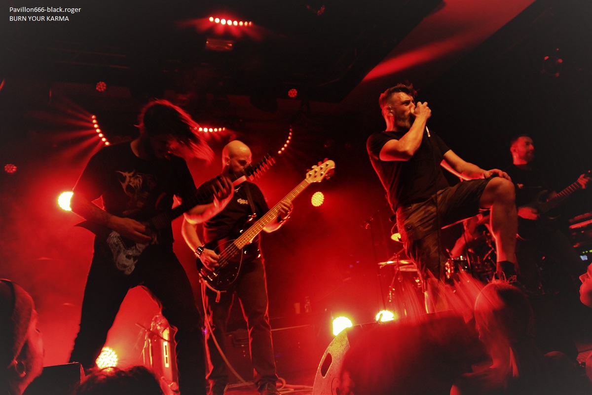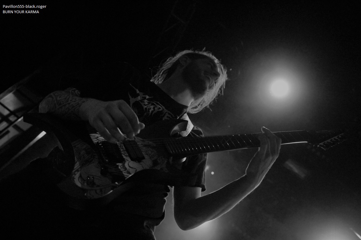 Les Stéphanois de BURN YOUR KARMA n’attendent pas 20 heures 30 pour grimper sur scène et nous balancent un metal puissant qui a du « core », et faire du bruit donc, il est 20 heures 20 exactement.