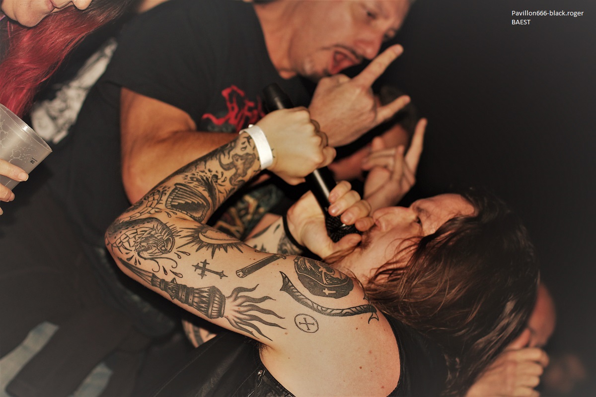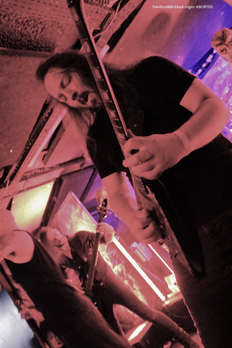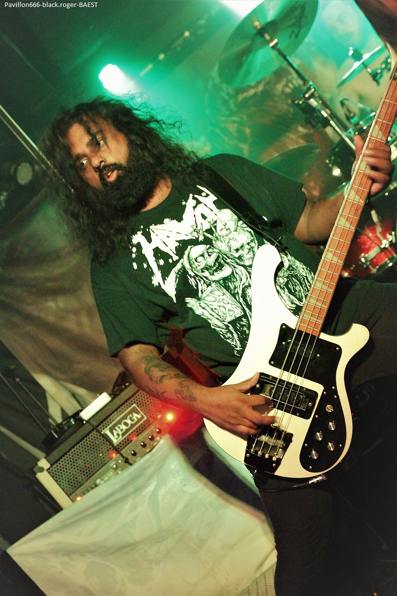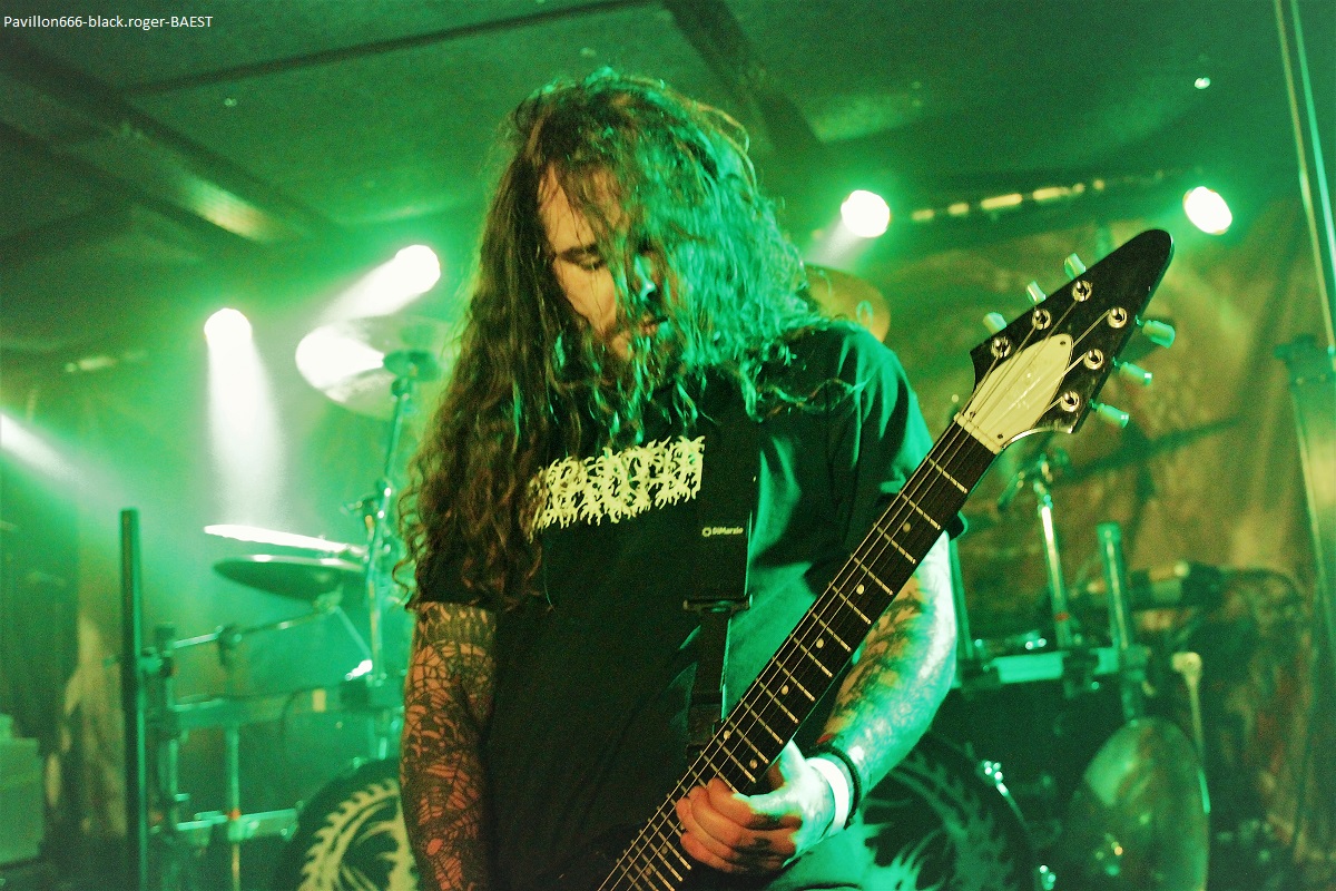 A peine le temps d’avaler une « overkill » maison, qu’il me faut aller devant la scène où viennent de lancer le son les jeunes Danois de BAEST, il est 19heures 20 et ça démarre fort. Leur death/thrash influencé par notamment Entombed (ça ne s’invente pas) et autre Bloodbath, va nous mettre illico dans l’ambiance mortelle de la soirée. D’autant plus qu’en live cette formation ne manque pas d’humour, sait tenir la scène avec notamment un frontman allant « chatouiller » le public et un guitariste faisant le spectacle non-stop. Mais leurs compositions restent quand même violentes et « groovy » ne négligeant pas des aventures plus modernes, leur death n’étant pa, figé dans le temps. Ce soir ils défendent leur nouveau méfait (le second) intitulé « venenum » qui nous démontre qu’au Danemark on peut être sauvages, menaçants et vicieux dans le domaine du metal extrême. Alors ce soir leur démonstration fut concluante et nous avons aimé leur set implacable dans ce style qui leur va si bien. Quelques « déménagements » de scène plus tard, le décorum sanguinolent installé nous informe que nos Belges préférés ABORTED vont nous faire rentrer dans leur « archaïc abattoir » (sic). Svencho a la frite ce soir (facile celle-là !) et les autres musiciens du groupe aussi cela va de soi. Depuis 1995 (et 10 albums) ces maitres du death/gore/grind/hardcore nous inondent la matière grise à l’aide de « chairs » musicales en putréfaction. Swencho arpente de long en large la scène nous faisant profiter de toute une gamme de « growls » de cimetière, les guitaristes nous font profiter, eux, de riffs « lame de rasoir » », le bassiste fait gronder les grosses cordes de son instrument et le batteur est carrément épileptique, aargh ! Bon, vous allez me dire leur death-metal bien gras sonne assez classique, mais en y ajoutant de subtiles variations venues des chambres froides de la morgue, leur metal extrême « gorisant » prend tout de suite une autre tournure en nous rendant « accros » à leurs compositions qui varient les plaisirs putrides. Bref, dans l’assistance les cercueils s’entrechoquent, pardon les participants s’agitent à qui mieux-mieux, comment résister aux envois puissants qui vous tombent dessus (comme la vérole sur le bas clergé), vous ne voyez pas le rapport, moi non plus mais comment traduire ce qui se passe lors d’un concert donné par Aborted ? En tous cas ce soir nous avons dégusté dans tous les sens du terme comme je le dis assez souvent lorsque le show est brulant, ce qui fus le cas dans un Rock n’Eat en sueur et chaleur évidemment. Set-list en photo. En attendant l’installation du groupe suivant, je me remémorai la première fois où j’ai pu participer à un concert d’ENTOMBED, c’était en 1994 au Rail Théâtre de Lyon, et leur set m’avait fortement marqué l’esprit. Je pense donc à beaucoup d’autres participants qui ce soir sont « collés » contre la scène attendant l’arrivée sur les planches, là devant nous des Suédois pères d’un certain death puissant devenu par la suite plutôt death n’roll. Pour la petite histoire, Entombed est devenu Entombed A.D à la suite de tracasserie administrative à propos du nom de groupe. Et ce soir, il ne reste que L.G. Petrov et Olle Dahlstedt du « feu » Entombed des débuts. Un LG Petrov au regard malicieux qui va transcender le show avec ses « jeunes » musiciens et acolytes (je n’ai pas dit alcooliques !). Le troisième album enregistré sous le vocable Entombe A.D, intitulé « bowels of earth » nous démontre que la formation n’a rien perdu de son accroche c’est un fait avec toujours ce « son » Entombed reconnaissable entre mille. Ce soir nous aurons droits a des titres de ce nouvel opus qui a poussé encore une fois le groupe à reprendre la route pour une tournée appelée « Hell over Europe III ». Mais beaucoup de fans présents ici ce soir attendaient aussi des titres légendaires d’Entombed, alors « left and path » et « volverine blues » ont été lâchés en pâture au public évidemment, ambiance ! Cette ambiance, parlons-en, inutile de vous faire un dessin, ce fus pure folie dans le pit avec une assistance complètement déchainée du début jusqu’à la fin du show pour ce concert qui restera gravé dans nos mémoires et pour longtemps, incroyable et énorme tout simplement, un concert coup de cœur, un concert d’anthologie, vous m’avez compris ! Set-list en photo. Que rajouter de plus en guise de conclusion ? Rien tout simplement, à part les remerciements habituels aux groupes, au RNE et au public pour l’ambiance bien entendu. |