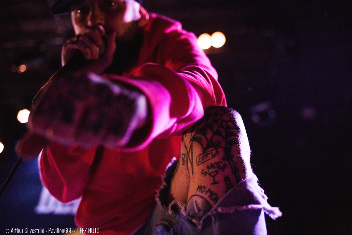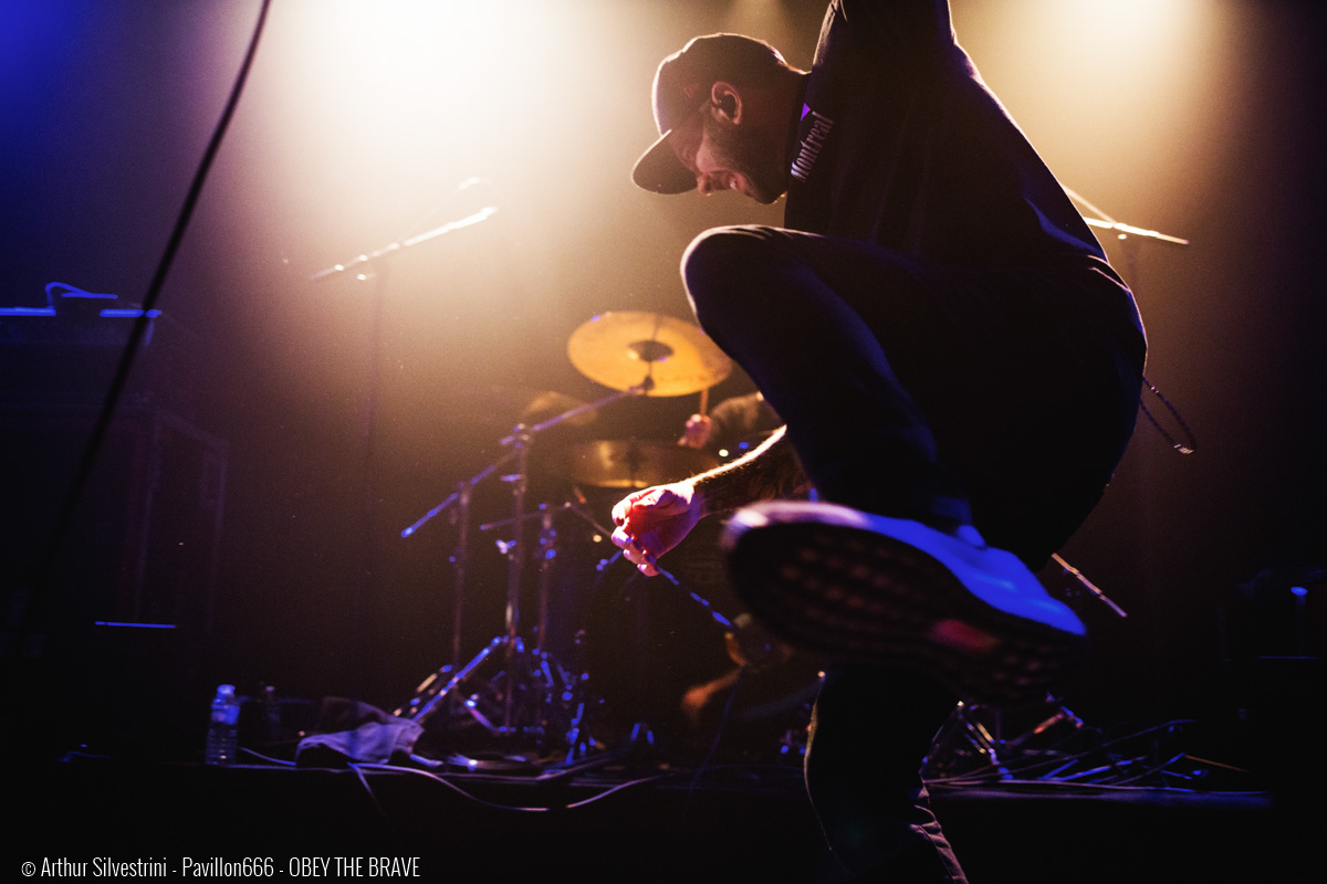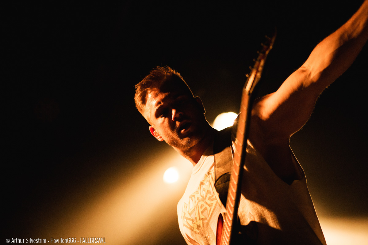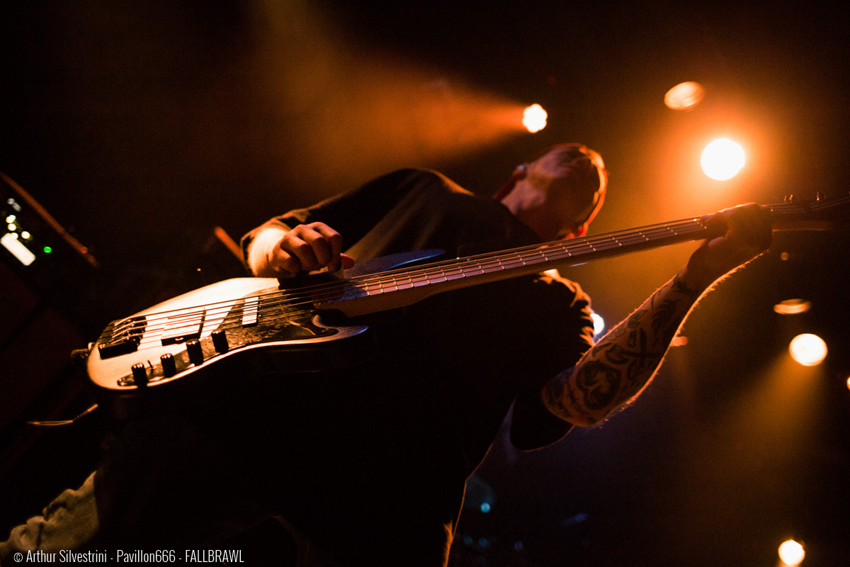 Plus de 4h de concerts, et autant d’économie en chauffage : ça saute dans tous les sens, ça hurle de joie, ça transpire, ça monte sur scène et surfe sur la foule… qui a dit que le dimanche soir était fait pour se reposer ? Et on commence à toute vitesse par FALLBRAW, avec un timing respecté à la minute près, pas le temps de tergiverser, on sort l’appareil photo et on tente de capter l’énergie qui fuse ! A peine le temps de dire ouf que c’est déjà au tour de de OBEY THE BRAVE. Comment capter cette intensité ? Principalement par des regards, des lumières, des gestes, qui en disent long à eux seuls, et on fait comme on peut, avec une attention particulière aux tatouages, arborés avec panache. On prend enfin le temps de dire ce ouf, et hop KUBLAI KHAN arrive sur scène, avec son look à l’américaine. Il reste encore 2 groupes après eux, mais le public semble déjà aux anges ! Et ça continue avec DEEZ NUTS : record de spectateurs qui montent sur scène et surfent sur la foule, sourire aux lèvres. Petite épisode avec un gars qui tente de déboutonner son jean sur scène, échoue, et saute dans le public. Intervention du groupe, il faut aller au bout de l’action ! Reprise du déboutonnage, démonstration fessière, et retour dans la foule. Petite attention toute particulière au vent que j’ai à moitié mis au chanteur et son check, mille excuses ! Bref, on continue les va-et-vient entre scène et foule, le chanteur aura le droit à son câlin, et, 2e ouf, pause, et on arrive à la tête d’affiche LIONHEART ! Et là, comme si le public s’était rechargé pendant les 4 concerts précédents, tout le monde se met en mode « action » et hop, ça fuse encore plus de tous les côtés ! Ceci explique cela, je ne fais que quelques photos au 1er rang et m’extirpe en arrière salle, honnêtement bien exténué par les 3h précédentes. En somme, un public comblé, bravo Sounds Like Productions, et bravo aussi à l’équipe qui a géré les lumières ! |