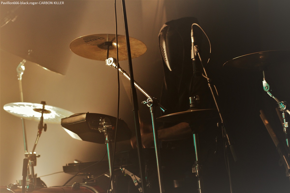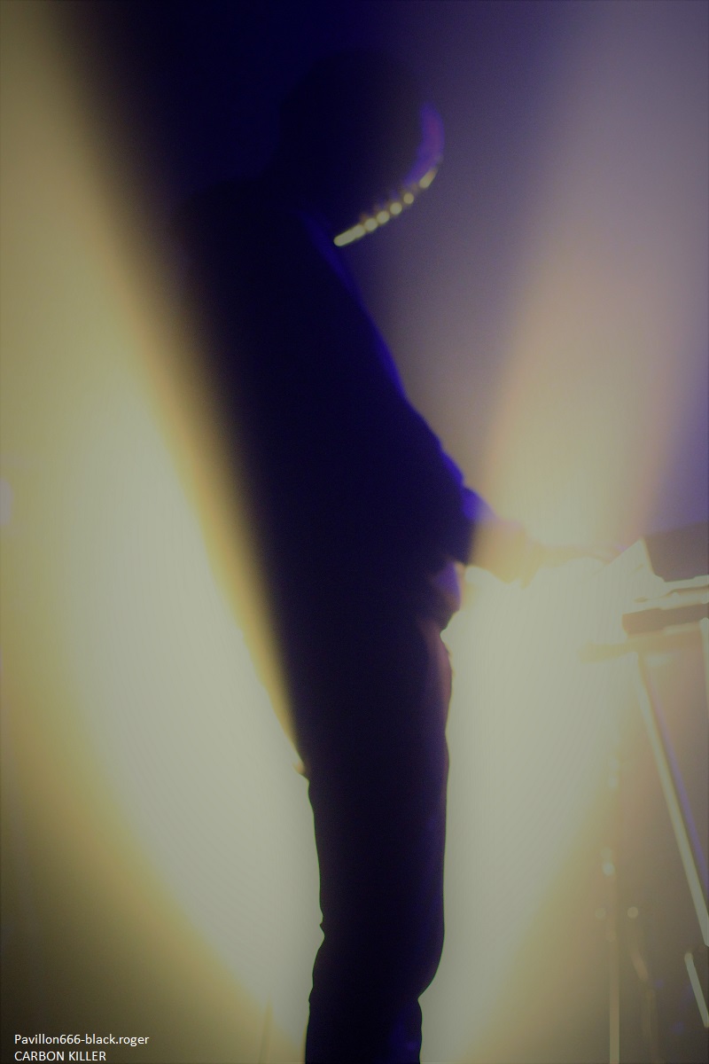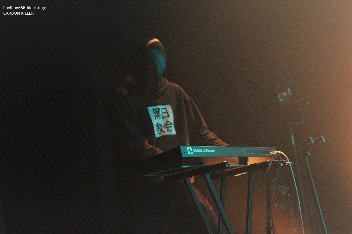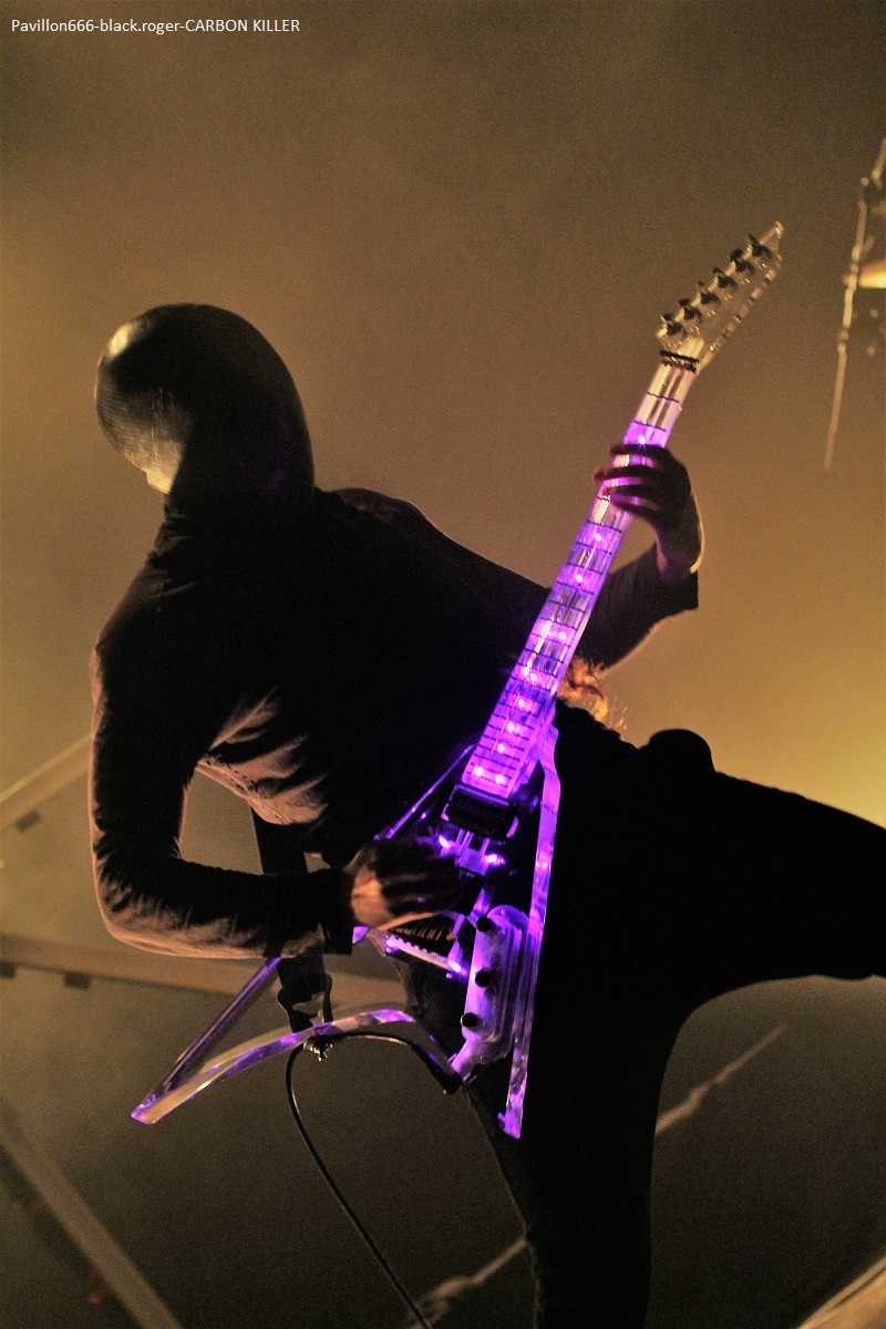 Les membres de CARBON KILLER venus de nulle-part, de Bordeaux en fait, avancent masqués dans leur démarche sombre éclairés seulement par des néons aveuglants.