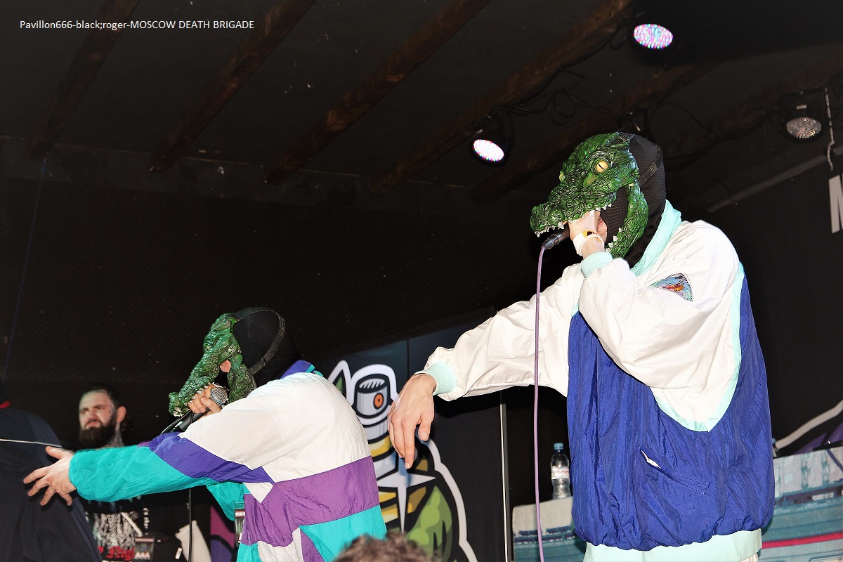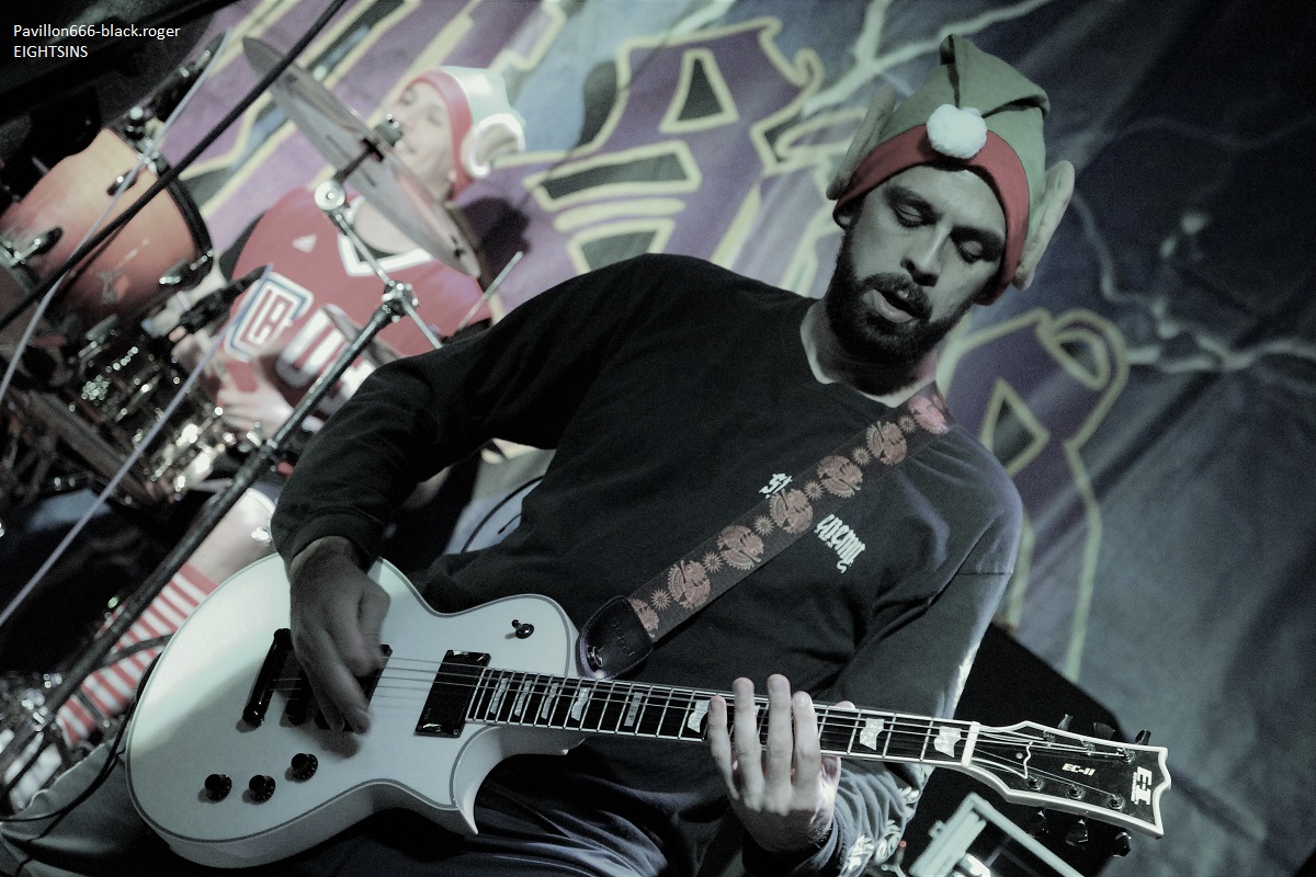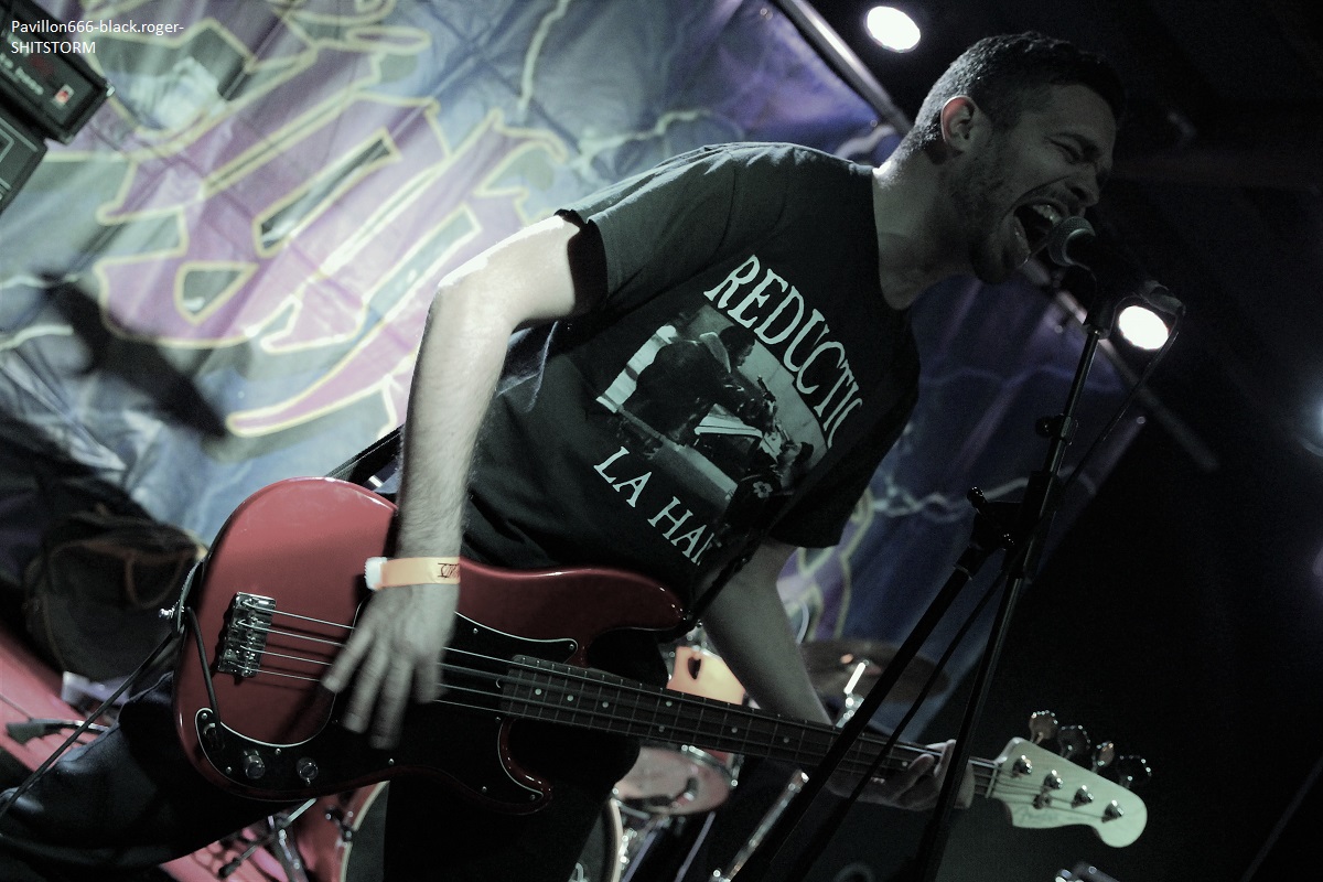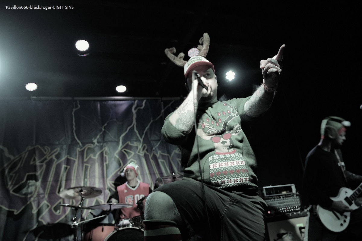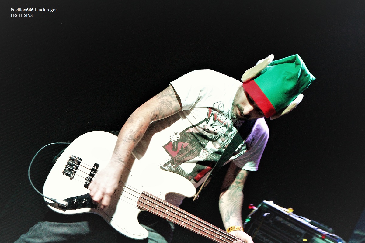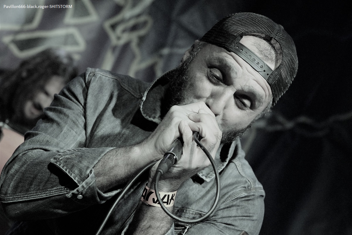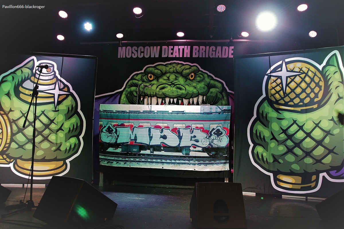 Bon, alors le ton hardcore est donné par les locaux de SHITSTORM, quatuor formé par des rescapés de combos lyonnais réunis par le old-school qui arrache, qui décape, qui fout la « merde » quoi ! Le niveau est bon on s’en doute avec ces vieux renards naviguant sur les eaux troubles du punk sans complexe, du hardcore en rut et fleurant bon l’odeur (shit) du thrash en fusion et non pas en confusion. Bref, ça envoie sans compromis, sans fausses notes (ah bon) et sans faux semblant, idéal pour ouvrir cette soirée fumante qui promet d’être chaude dans tous les sens du terme. Merci les gars vous revenez quand vous voulez ! Le père Noël est déjà passé au Warmaudio et a donné en coulisse de bien beaux bonnets aux membres de EIGHT SINS qui ne sont pas venus ici ce soir pour rigoler (si, un peu quand même !), mais pour nous coller contre les murs du Warm’ à l’aide de brûlots thrashcore évidemment. On ne présente plus ce quatuor légendaire (si, si !) qui depuis plus de 10 ans et trois albums sous leurs petits bras défraient la chronique après leurs passages dans les salles régionales et même plus loin (Hellfest), où ils répandent la « terror » influencés par notamment Madball, vous voyez ce que je veux dire ? Non, et bien allez dans leurs concerts comme celui de, ce soir ou ces musicos sont en forme, et Loïc en bon père « no hell » d’un soir s’amuse avec le public (qui a dit comme d’habitude ?). Mais rassure-vous il « aboie » toujours aussi fort et les riffs guitaristiques sont toujours meurtriers soutenus par une rythmique en béton armé. Mais que vois-je tout d’un coup, un second père Noël qui vient pousser la chansonnette en duo (ou duel) sur un titre afin de varier les plaisirs en live ! C’est la fête, ambiance ! Bon Eight Sins n’a pas déçu ce soir car la surprise est souvent de mise avec cette formation qui sait toujours mener la danse, celle du hardcore cqfd, alors on aime tout simplement. Changement de décor sur scène avec la venue tant attendue de MOSCOW DEATH BRIGADE, des « crocodiles » de Moscou qui ont la langue bien pendue pour dénoncer, se rebeller sur un ton agressif avec en arrière-plan des machines, des synthés afin de soutenir les propos de nos Moscovites en cagoules dans une mouvance anarchiste tout simplement. Bien qu’en activité depuis plus de dix années notamment dans le « street art » la formation n’a délivré qu’un véritable album intitulé « bolt cutter », traduisez des pinces coupantes afin de couper les barbelés existantes entre notamment les « chapelles » musicales du punk, du rap, du hardcore, de la techno, de l‘électro ou autres démarches subversives issues de la rue. Leurs clips sont parlants, les textes enregistrés aussi, mais c’est surtout en live que Moscow Death Brigade fait sa « fiesta » et c’est donc la « fiesta » ce soir dans un Warmaudio en mouvements perpétuels, en stage-diving, en sueur, en chaleur (sic), en pogos, en circle-pit, en ce que vous voulez quoi, ce soir c’est la liberté d’expression. C’est le défoulement de tout un public concerné et motivé reprenant les refrains distillés et ce fus tout simplement énorme, la « quecla dans la chetron » en langage « street punk/verlan ». Résultat, coup de cœur indiscutable de la part de votre chroniqueur de Pavillon666, amen ! Merci à tous, organisateurs, artistes, musiciens, Warmaudio et à toi public qui a en quelque sorte transcendé cette soirée hors du temps et de l’espace. |