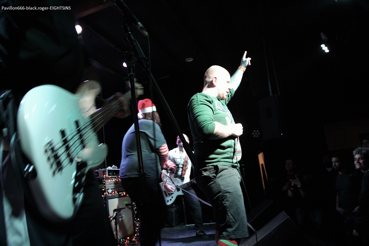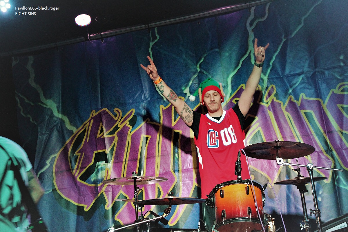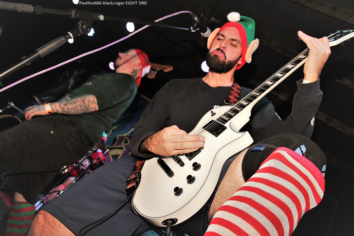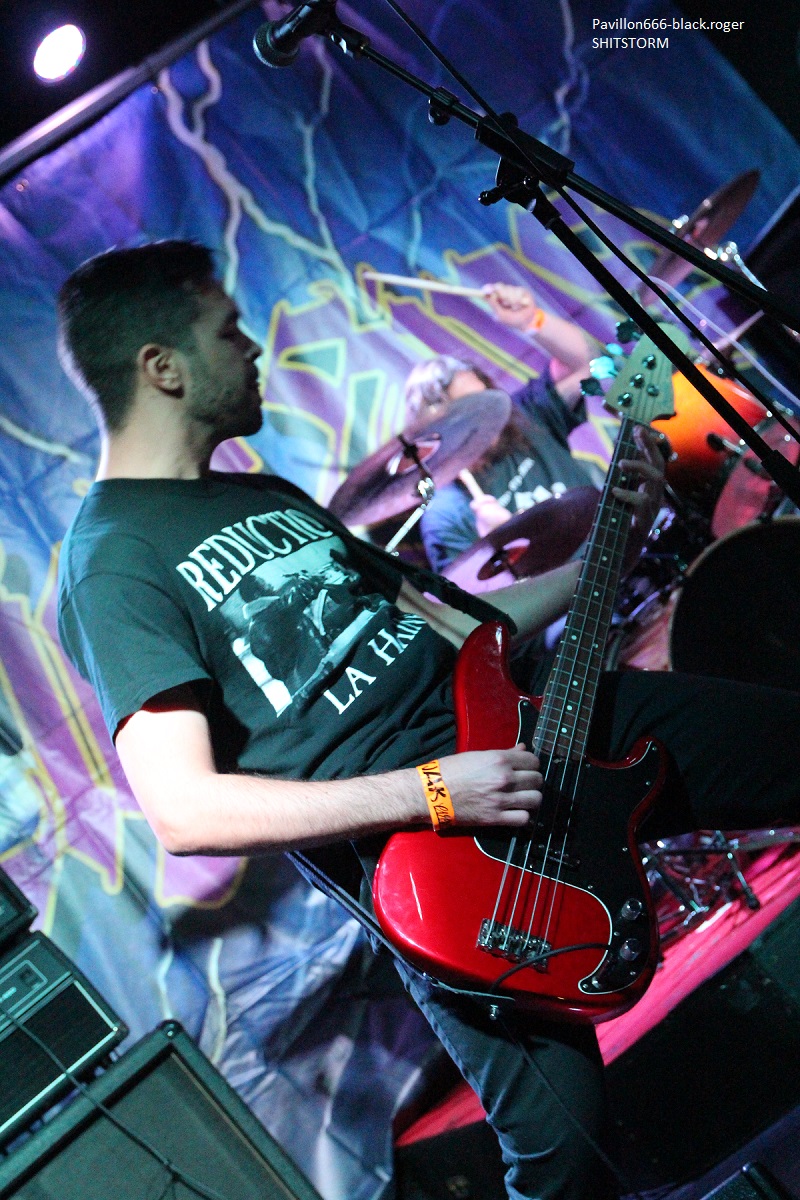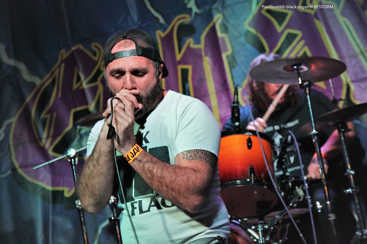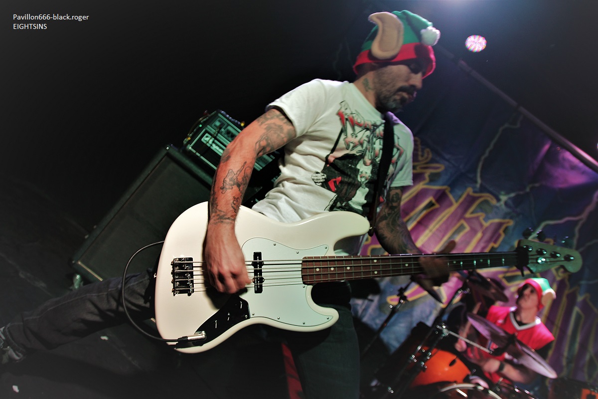 Bon, alors le ton hardcore est donné par les locaux de SHITSTORM, quatuor formé par des rescapés de combos lyonnais réunis par le old-school qui arrache, qui décape, qui fout la « merde » quoi ! Le niveau est bon on s’en doute avec ces vieux renards naviguant sur les eaux troubles du punk sans complexe, du hardcore en rut et fleurant bon l’odeur (shit) du thrash en fusion et non pas en confusion. Bref, ça envoie sans compromis, sans fausses notes (ah bon) et sans faux semblant, idéal pour ouvrir cette soirée fumante qui promet d’être chaude dans tous les sens du terme. Merci les gars vous revenez quand vous voulez ! Le père Noël est déjà passé au Warmaudio et a donné en coulisse de bien beaux bonnets aux membres de EIGHT SINS qui ne sont pas venus ici ce soir pour rigoler (si, un peu quand même !), mais pour nous coller contre les murs du Warm’ à l’aide de brûlots thrashcore évidemment. On ne présente plus ce quatuor légendaire (si, si !) qui depuis plus de 10 ans et trois albums sous leurs petits bras défraient la chronique après leurs passages dans les salles régionales et même plus loin (Hellfest), où ils répandent la « terror » influencés par notamment Madball, vous voyez ce que je veux dire ? Non, et bien allez dans leurs concerts comme celui de, ce soir ou ces musicos sont en forme, et Loïc en bon père « no hell » d’un soir s’amuse avec le public (qui a dit comme d’habitude ?). Mais rassure-vous il « aboie » toujours aussi fort et les riffs guitaristiques sont toujours meurtriers soutenus par une rythmique en béton armé. Mais que vois-je tout d’un coup, un second père Noël qui vient pousser la chansonnette en duo (ou duel) sur un titre afin de varier les plaisirs en live ! C’est la fête, ambiance ! Bon Eight Sins n’a pas déçu ce soir car la surprise est souvent de mise avec cette formation qui sait toujours mener la danse, celle du hardcore cqfd, alors on aime tout simplement. Changement de décor sur scène avec la venue tant attendue de MOSCOW DEATH BRIGADE, des « crocodiles » de Moscou qui ont la langue bien pendue pour dénoncer, se rebeller sur un ton agressif avec en arrière-plan des machines, des synthés afin de soutenir les propos de nos Moscovites en cagoules dans une mouvance anarchiste tout simplement. Bien qu’en activité depuis plus de dix années notamment dans le « street art » la formation n’a délivré qu’un véritable album intitulé « bolt cutter », traduisez des pinces coupantes afin de couper les barbelés existantes entre notamment les « chapelles » musicales du punk, du rap, du hardcore, de la techno, de l‘électro ou autres démarches subversives issues de la rue. Leurs clips sont parlants, les textes enregistrés aussi, mais c’est surtout en live que Moscow Death Brigade fait sa « fiesta » et c’est donc la « fiesta » ce soir dans un Warmaudio en mouvements perpétuels, en stage-diving, en sueur, en chaleur (sic), en pogos, en circle-pit, en ce que vous voulez quoi, ce soir c’est la liberté d’expression. C’est le défoulement de tout un public concerné et motivé reprenant les refrains distillés et ce fus tout simplement énorme, la « quecla dans la chetron » en langage « street punk/verlan ». Résultat, coup de cœur indiscutable de la part de votre chroniqueur de Pavillon666, amen ! Merci à tous, organisateurs, artistes, musiciens, Warmaudio et à toi public qui a en quelque sorte transcendé cette soirée hors du temps et de l’espace. |