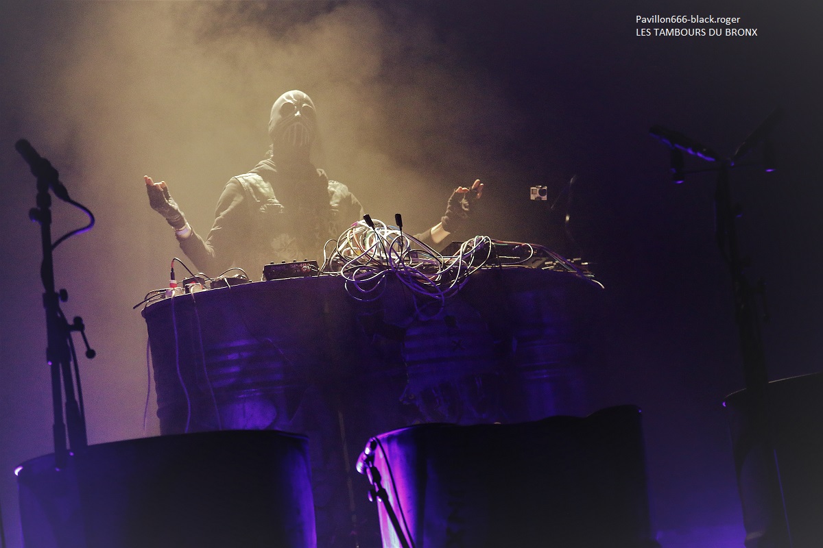 Il est 19 heures pétante et FLAYED monte sur scène, tant pis pour les retardataires qui vont louper leur show. Un Flayed motivé surtout que son frontman Renato foulera la scène tout à l’heure avec les Tambours du Bronx Cqfd. Alors pour tous ceux qui ne connaissent pas encore, ce groupe distille un rock seventies aux relents d’orgue Hammond avec la puissance des années 2000. Inutile de résister donc aux envois binaires et parfois funky de la bande à Renat’. Et ce soir le Transbordeur leur a fait une ovation méritée, comment ne pas aimer leur rock n’roll groovy qui arrache ? En attendant, leurs albums s’arrachent alors n’hésitez pas conseil d’ami. Nous allons partir maintenant dans les sables du désert avec le metal oriental des Parisiens d’ACYL avec en fond d’écran les paysages favoris de leurs origines. Les mélodies et les passages plus métalliques s’entrechoquent, les classiques guitares, basse, batterie du rock se marient avec les instruments traditionnels que sont oud et percussions notamment. Le public semble surpris par ce metal ethnique prenant ses racines en Algérie pour s’épanouir en France et pourquoi pas plus loin, ailleurs… Je vous le concède, il faut faire un certain effort afin de rentrer dans leur jeu aventureux, mais une fois ingéré leur metal particulièrement recherché et détaillé nous ne pouvons qu’apprécier leur death progressif, alors pourquoi pas ! Dire que SIDILARSEN avait sa place dans cette affiche en compagnie des Tambours du Bronx, oui, trois fois oui même si au départ de l’aventure en 1997 nos Toulousains n’avaient pas convaincu avec leur metal qualifié de neo-electro taillé uniquement pour le « dance-floor ». Il faut avouer qu’à cette période je n’appréciai pas du tout leur démarche, mais depuis quelque temps et au vu de leurs prestations scéniques, j’apprécie leurs riffs tranchants, leur utilisation de machines, leurs lights, leurs textes et surtout leur communication avec le public après 20 années d’existence. Aujourd’hui, forts d’un 7ème album intitulé « on va tous crever », ils crèvent (sic) le plafond du metal, mais un metal plus agressif et violent. Sidilarsen est donc en colère au travers de ses textes qu’il nous demande de partager, et ça marche comme ce soir à Lyon où le groupe a fait un « tabac » tout simplement. Il y a plus de trente ans, j’avais découvert en live l’aventure appelée LES TAMBOURS DU BRONX et ce soir ce sera une autre aventure pour moi, et pour beaucoup d’autres je pense avec la prestation des Tambours qui ont su évoluer sans se renier depuis tout ce temps, depuis leurs débuts à Nevers. Aujourd’hui, cette formation qui est une référence mondiale de la percussion industrielle et expérimentale, se produit sur scène avec un batteur (Franky Costanza, Blazing War Machine), trois chanteurs, Stéphane Buriez (Loudblast), Reuno (Lofofora) et Renato (Flayed), un DJ masqué aux claviers et deux guitaristes membres originels. Et puis ce soir, cerise sur le gâteau, nous aurons droit à la participation de deux invités surprise évoluant sur scène à tour de rôle ou avec les autres chanteurs. Il s’agit de Julien Truchant (Benighted) venant poser ses « growls » sur une reprise de Sepultura pour un voyage en percussions Brésiliennes et Appoline Magnet (Plastic Age) venant, elle, poser sa voix particulièrement attachante collant bien avec les percussions. Ces percussions tribales aux sonorités metal, indus, tribales, afro-beat aussi qui sont en quelque-sorte la « moelle épinière » du spectacle. Car oui, spectacle il y a, où rien ne lasse, où les intervenants se succèdent, se rencontrent pour des envois irrésistibles magnifiant certaines reprises (qui a dit on se croirait au bal des enragés, oups !). Le Transbordeur tremble sur ses fondations, le public restant en quelque sorte « subjugué » par ce spectacle visuel et musical qui prend des allures de fête, pourquoi pas ! Après donc leurs compositions et les reprises de Sepultura (roots bloody roots), Prodigy (the day is my enemy) et au final Rob Zombie (dragula) tout s’arrête, photo de famille et ovation. C’était bien, voire très bien, voire énorme. Merci les Tambours du Bronx votre spectacle n’était pas « bidon » (sic). Alors merci qui ? Merci aux organisateurs, à tous les musiciens, au Transbordeur et à toi public qui est resté « vivant » durant toute la soirée. |
