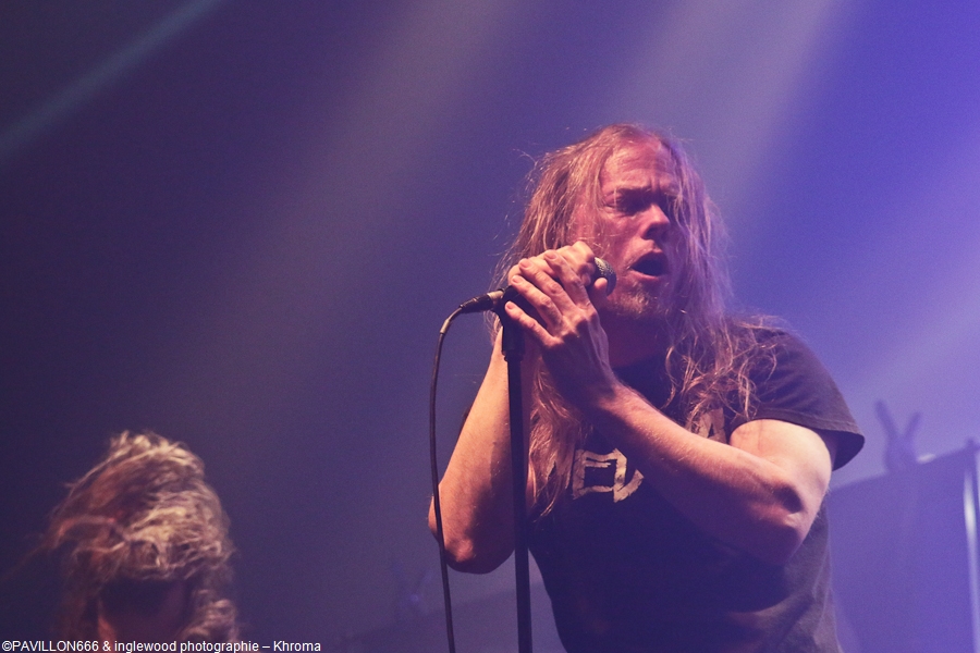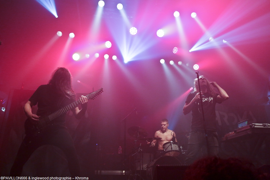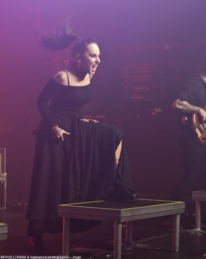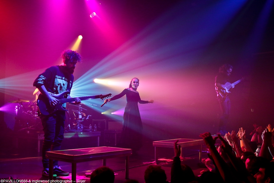 Et bien, malgré ça, ce dimanche restera un des meilleurs souvenirs de 2019 (grâce aussi à la crève que j'y ai chopée).Un programme dense et varié qui nous a réservé quelques surprises. Quel menu, ce fut entrée, plat, fromage et dessert !, Quatre groupes les gars, Jinjer, The Agonist, Khroma et Space Of Variations. Je pénètre dans la Machine du Moulin rouge vers 17h30 pour l'interview d'Eugene, le bassiste de Jinjer ( à lire sur le site), après un petit ¼ d'heure de causette, je file m'installer dans la salle et bien m'en a pris car le concert commence tôt, TRES tôt, la faute au planning serré du groupe, en effet le timing semble bien difficile pour tout le monde et l'agitation est bien présente backstage. Mais, le show must go on et rien de tout ce stress ne s'est vu sur scène. Space Of Variations. Groupe Ukrainien, également, le style est metal/ électro hardcore, je ne suis pas fort pour les étiquettes mais je ne peux que vous conseiller l'écoute de leur album : Mind Darknet. Je resté sur le cul de la qualité des compositions, le chanteur et le guitariste se partagent, couplets et refrains, l'un hurle, l'autre se charge des voix claires, ça donne une vraie fraîcheur aux titres déjà bien efficaces. De plus, les sourires sur les visages des 4 petits gars et leur énergie à galvaniser une salle à demi pleine en cette fin d'après-midi. Belle découverte et très bon concert. Khroma est un groupe Finlandais qui m'a laissé un drôle de sentiment. Bien que sur la même veine que leurs prédécesseurs, ils sont aussi nettement plus fins et aboutis. Musicalement, les compositions sont très efficaces et variées et les apports electros donnent beaucoup d'originalité et de profondeur aux titres. Ce qui m'a un peu refroidi, c'est l'attitude lointaine (hautaine?) du chanteur qui a mis pas mal de distance. Pourquoi ? Les autres membres ont fait le taff, eux, notamment le gratteux qui a baladé sa 8 cordes de long en large. Un bon moment pour une salle encore très clairsemée. Honte sur moi, je ne connaissais The Agonist que de nom. Ce n'est pas vraiment ma came de toute façon... Je ne m'attendais à rien et je dois bien avouer que j'ai passé un bon moment. Musicalement, les mecs sont au top (mention au batteur qui est vraiment une bête), les compositions me semblent honnêtes bien qu'un peu semblables et la chanteuse est vraiment à l'aise. Parlons en deux minutes. Je m'en fous bien qu'elle ait succédé à la diva Alissa White-Gluz (je trouvais Arch Enemy bien mieux avant elle …) je ne parlerais que de sa performance de ce soir. Quelle solidité et quelle présence ! Très impressionnante vocalement, elle a beaucoup de charisme et nous défonce grave la tronche, j'ai vraiment aimé toutes les facettes de sa voix et même si les compos ne sont pas toutes exceptionnelles, elle arrive à nous embarquer, bravo je suis convaincu, tout comme une grande partie de la salle au ¾ pleine maintenant. Il est plus de 21h30 et ça fait pratiquement 3 heures que nous avons du son dans les feuilles, presque un festoch cette soirée !? Peu importe car c'est enfin à Jinjer de prendre pleinement possession de la scène. Trois écrans lumineux verticaux habillent le décor, c'est sobre et classe. « Teacher, Teacher » résonne et la salle est en feu, en tournée depuis plus de 3 ans sans réelle coupure, le groupe est chez lui et est bien décidé à nous retourner. Assez peu de communication avec le public, pas le temps de niaiser, c'est un mélange assez intelligent de tous les albums du groupe. Quatre titres du dernier « Macro » et cinq du précédent « King of Everything », on mise bien sur la nouveauté et je dois dire que ça passe bien. Le fabuleux « Retrospection » se pose comme le pic du set faisant démonstration du talent de musiciens (énormes de précision, d'agilité et de férocité) et de la palette de Tatiana, encore une fois parfaite. Ce qui différencie ou du moins fait sortir du lot Jinjer, c'est évidemment sa chanteuse Tatiana Shmaylyuk, envoûtante ou rageuse, sa voix est toujours parfaite et se met parfaitement au service des compositions. Elle est omniprésente sur le devant de la scène et sait mettre l’audience dans sa poche, je regrette un peu la distance et le manque de communication ( à part les traditionnel « Ca va ? » etc …). Un show maîtrisé et très efficace qui a comblé les fans et les curieux par un des groupes dont on parle le plus en 2019 et qui va exploser en 2020 avec notamment un Hellfest très attendu, n'en doutons pas. Merci à Elodie et Julien de HIM Media et à Veryshow. Pour des raisons de confidentialité YouTube a besoin de votre autorisation pour charger. Pour plus de détails, veuillez consulter nos Politique de confidentialité. |