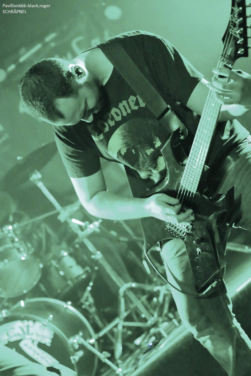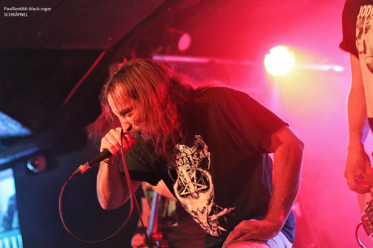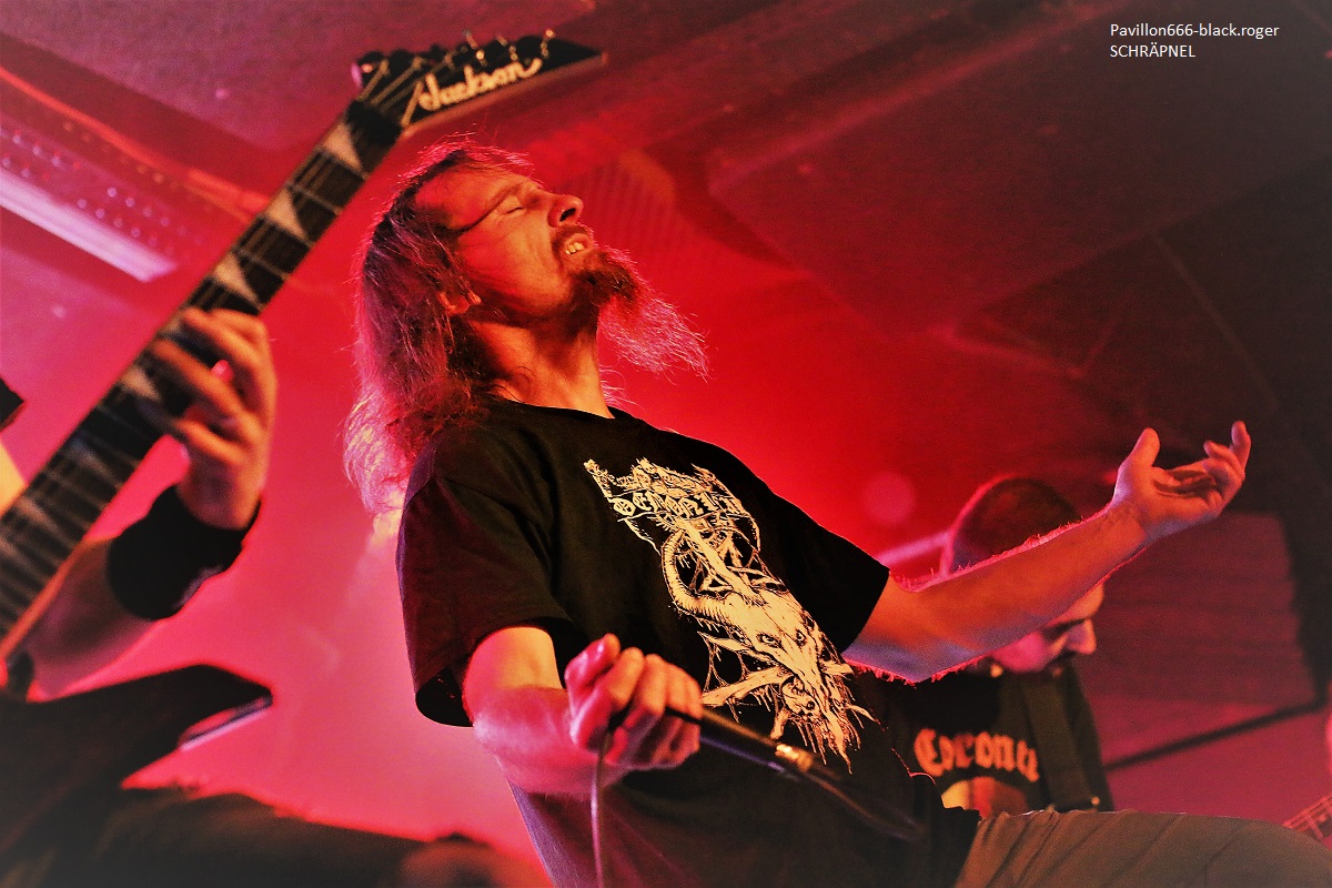 Changement de décor, changement d’ambiance avec les Grenoblois de SCHRÄPNEL et leur death/thrash sauvage, brut de décoffrage, mais où le groove et la technique trouvent leur chemin dans des envois…ravageurs.