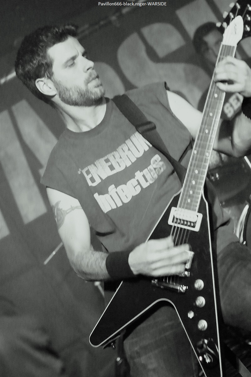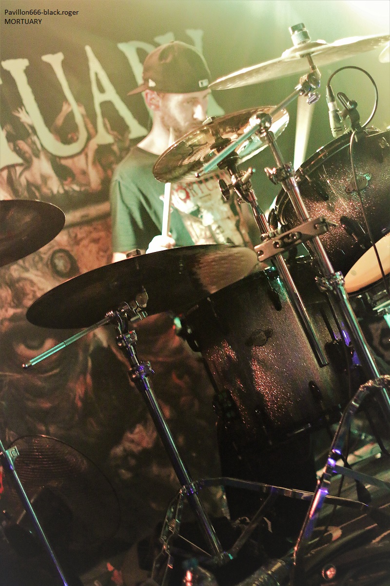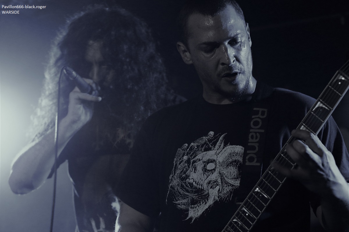 On ne peut pas dire que le trio Lyonnais originaire de l’ile de la Réunion, AEON PATRONIST, garde pour lui ses compositions de metal ectrême/prog. Non, le groupe a l’air d’en vouloir et tourne de plus en plus et nous constatons ce soir que leurs prestations scéniques prennent de l’ampleur et confirment tout le bien que l’on pensait d’eux. Leur black/death recherché fait mouche avec toujours cette puissance éruptive, mais néanmoins technique, qui leur va si bien. Du coup, ce moment passé ce soir avec eux fus un « sans faute », que demander de plus ? Nous leur souhaitons d’avancer dans cette veine et donner une suite à leur dernier enregistrement de fin 2018 intitulé « mortal prosternation ». Set-list en photo. De formation récente (2018), les Lyonnais de WARSIDE étaient tout indiqués pour ouvrir le concert de Mortuary. En effet, ce quintette composé de vieilles connaissances évoluant dans le death, le grindcore et le thrash ne fait pas dans la dentelle, c’est brutal de chez brutal avec des soli meurtriers, des vocaux qui arrachent et une rythmique imparable. Bref, avec Warside nous sommes dans le char d’assaut du death/thrash sans concession qui démolit tout sur son passage, et ça fait mal, très mal (ou du bien, c’est selon !). Alors fatalement on aime et on adhère à fond à leur démarche. Leur prestation de ce soir nous a démolit la matière grise, avec doigté SVP ! Set-list en photo. Trente ans après leurs débuts, les Nancéens de MORTUARY sont venus ce soir à Lyon afin de nous prouver encore une fois que leur death/thrash d’anthologie n’était pas mort, au contraire ! Alors ils vont nous présenter leur dernier « bébé » intitulé « the autophagous reign », mais pas que. Un album qui remet en selle les Lorrains bien qu’ils n’aient jamais quitté le champ de bataille occupé par ses compatriotes de sa génération, Loudblast, Mercyless et Agressor entre autres. Devant nous dans ce RNE rempli de « fidèles », mais aussi de jeunes découvreurs, Mortuary surprend, se dépasse comme si sa vie en dépendait, surgissant du cimetière avec ce death puissant auréolé de thrash aux multiples déviances (bénéfiques bien entendu) pour une agressivité de bon aloi. Ce soir, Mortuary se veut efficace en diable, mais aussi généreux devant un public qui après le char d’assaut Warside reçoit en pleine face le tir des roquettes virulentes des Nancéens, ici c’est toujours la guerre donc. Au bout du set, Mortuary fait mine de s’en aller en sachant très bien qu’il allait revenir ? Il revient donc avec rappels en proposant notamment un micro pour les ‘grogneurs » présents dans la salle. C’est la fête donc, la fête du metal extrême et nous avons dégusté dans tous les sens du terme. Merci les gars vous revenez quand vous voulez on apprécie ! Set list en photo. Excellente soirée donc avec cette affiche qui tue, alors merci aux trois formations en lice, au Rock n’Eat et au public pour l’ambiance installée. |