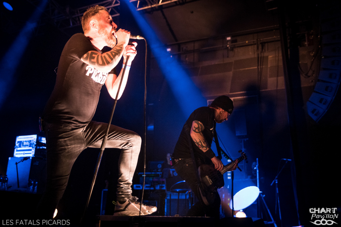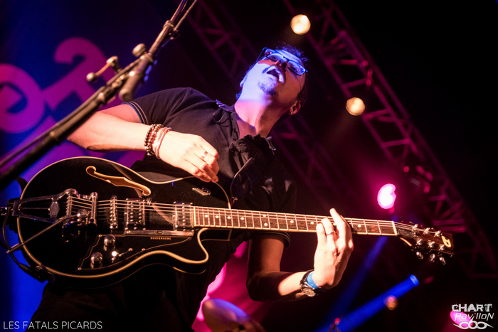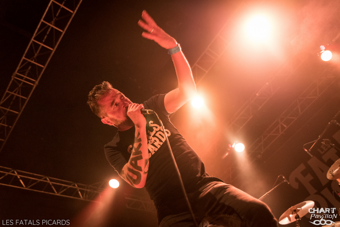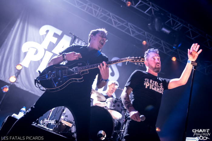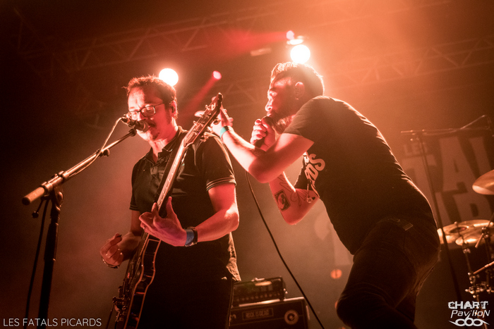 Pour ceux qui n'auraient jamais entendu parler de Frédéric FROMET, c'est très simple, il suffit d'écouter FRANCE INTER le vendredi vers 17h55 sinon, pour le rattrapage, il y a bien un album mais aussi toutes ses vidéos sur Youtube. Vous cernerez très vite le personnage. Il s'agit d'un chanteur qui s'accompagne à la guitare et sur scène de musiciens, qui chante tout simplement l'actualité. Et comme il fait ça avec brio, talent et simplicité, il a fini par se faire remarquer par certains groupes. Le voici donc en première partie des FATALS PICARDS pour un show d'une bonne heure. Le résultat est à la hauteur de toutes les espérances. Je dois avouer qu'il s'agissait pour moi d'un argument de taille pour me rendre à ce concert que cette première partie. C'est très simple, Frédéric FROMET sera de retour dans la région en mai et je compte bien aller me reprendre cette dose de bonne humeur qui fait le plus grand bien ! Je ne peux que vous le recommander. On passe aux choses plus rock avec LES FATALS PICARDS qui fêtent aujourd'hui leurs 20 années de carrière. Et oui, le temps passe ! Mais le groupe est toujours là et particulièrement en forme. Pour preuve, le Transbordeur affiche complet et on ne peut que s'en réjouir. Les FATALS PICARDS ont certes eu leur moment de gloire grâce au passage radio de « Mon Père était tellement de gauche » mais la mode n'a pas eu raison d'eux, bien au contraire. Leur style alternatif sur des textes décalés les rangent du côté des WAMPAS et on sait très bien que ce style est, en France, indémodable. Cette soirée, ce concert ont donc tous les ingrédients réunis pour nous faire passer un bon moment. Bien entendu, on compte sur des morceaux efficaces comme « Sucer des Cailloux » ou « Le Retour à la Terre » ainsi que l’indétrônable « Bernard Lavillier ». Forcément on ne peut que passer un bon moment. Le groupe se permet même un petit moment en acoustique avec « Morflé », « Mon Père était tellement de gauche » et « Cure Toujours » qui fonctionne parfaitement dans leur plus simple appareil. LES FATALS PICARDS déroulent un concert réjouissant avec d'autres bons moments avec notamment « Béton Armé », « Le Reich des Licornes », « Noir(s) », « Punkachien ». On note un rappel remarquable avec une reprise de « Sans Contrefaçon » de Mylène FARMER suivie de « Dans un Ciel de 1er Mai » avant un final explosif avec « Punks au Liechtenstein ». Des moments comme ça, on en veut à foison ! C'est frais, efficace et revigorant ! Merci à MEDIATONE pour cette excellente organisation et leur accueil toujours aussi agréable. |