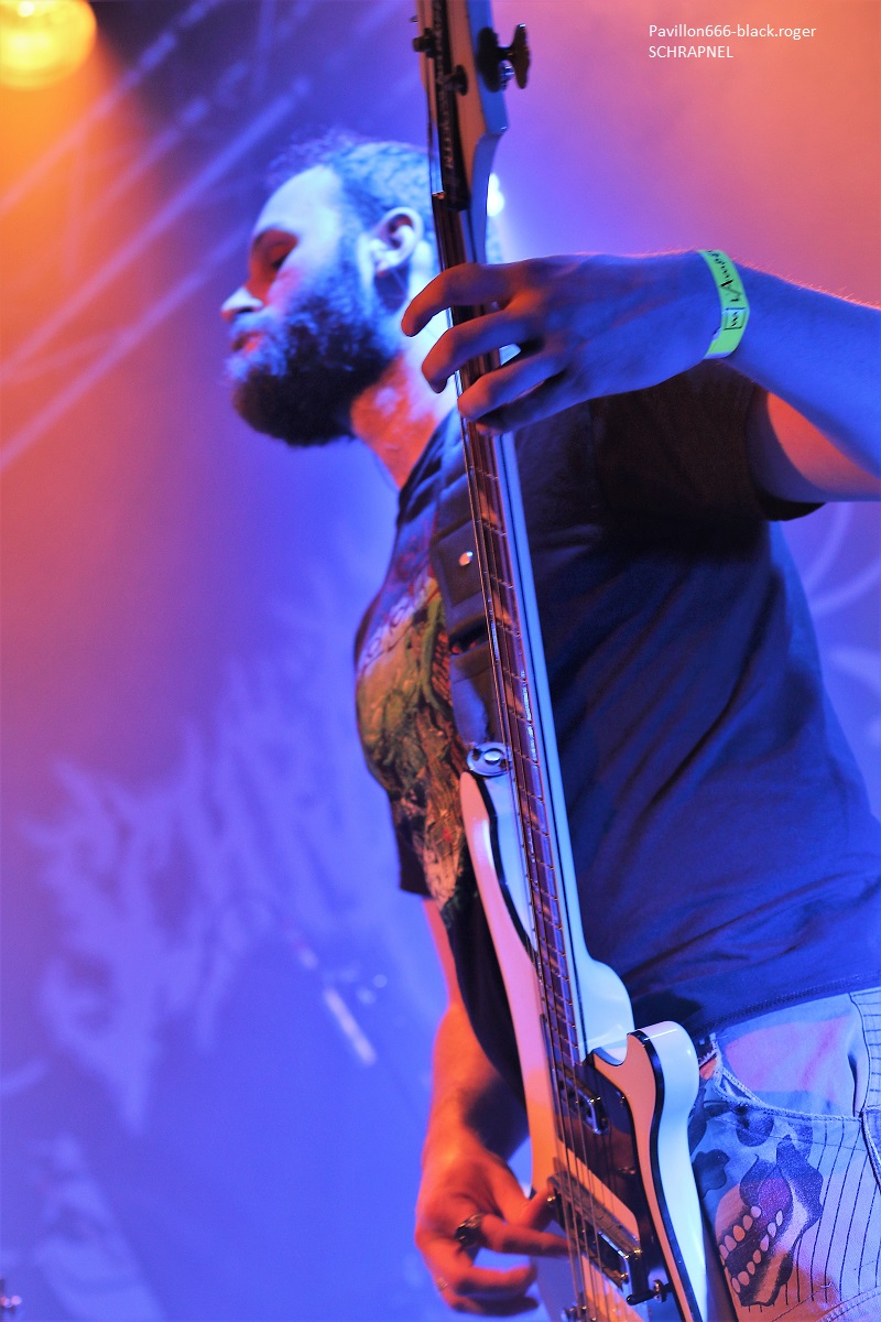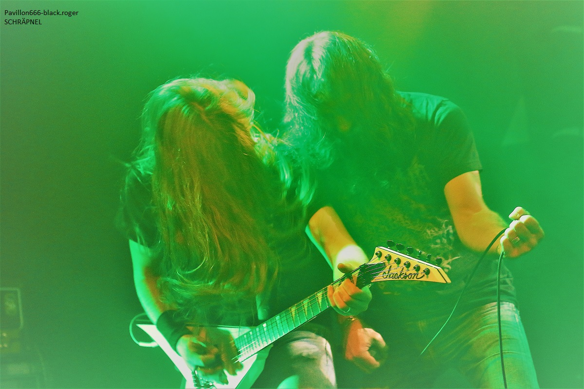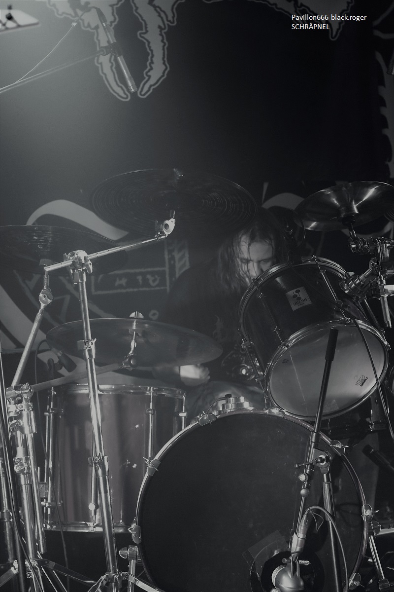 SCHRÄPNEL, vu à Lyon au début de janvier nous avait donné un petit goût de « revenez-y » après leur prestation enflammée en ce début 2020. Ici ce soir, ce sera la même, la même présence, la même puissance de feu, le même charisme dans leurs envois qui vont d’entrer de jeu nous indiquer que ce soir nous sommes au bon endroit pour une ambiance thrash/death brutale et sans compromis.