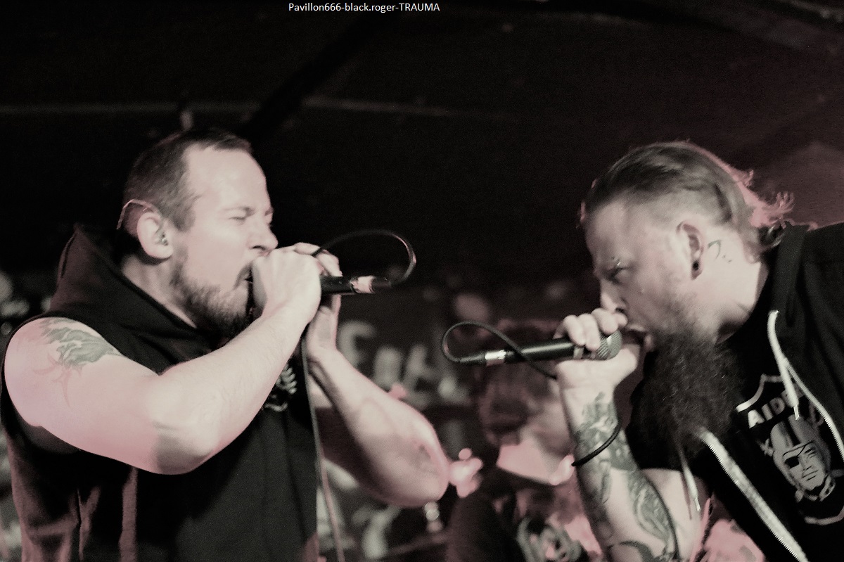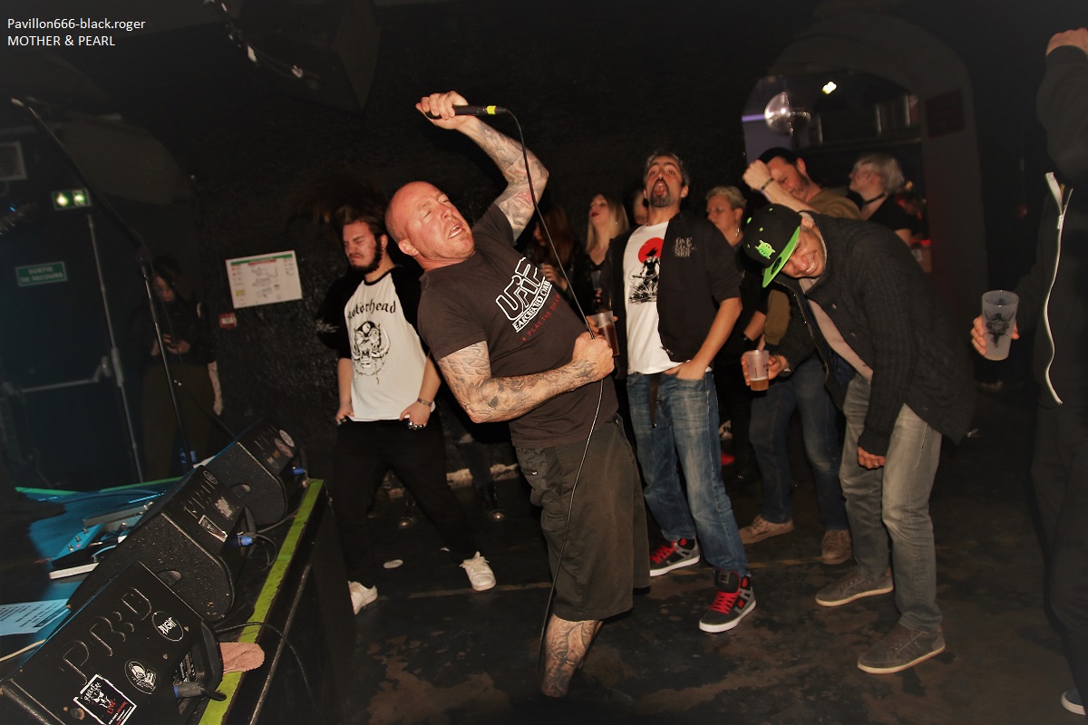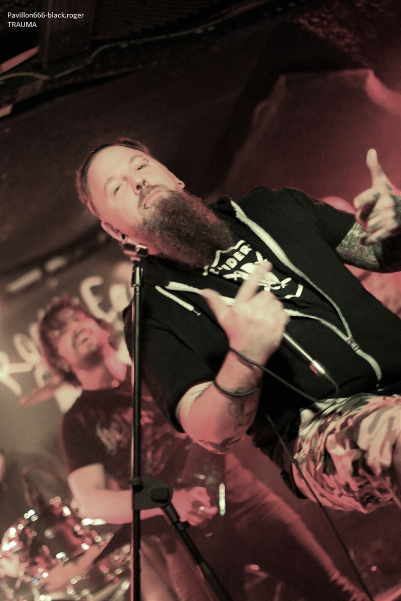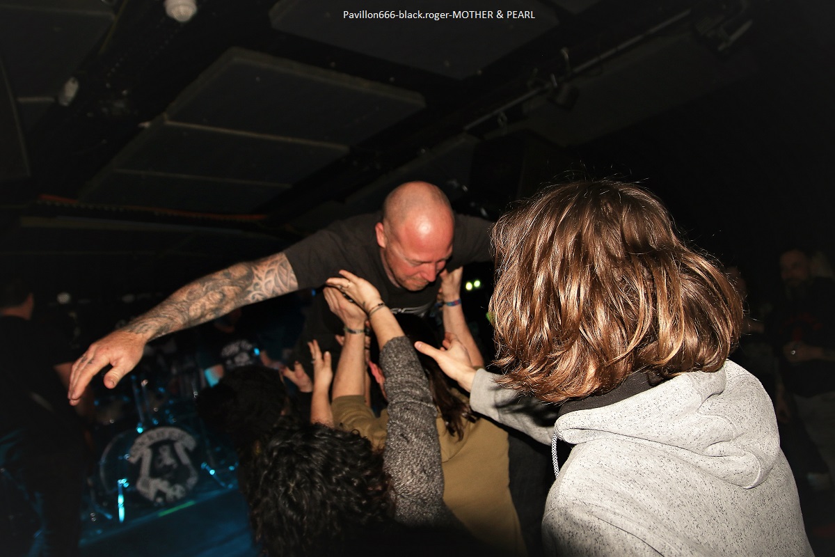 Avec un nom de groupe pareil, LE CORE & L’ESRIT, le chant dans la langue de Molière est de rigueur. Pari risqué donc, mais nos amis musiciens de Lorraine font parler la poudre dans une démarche proche de celle de Lofofora, le mot est lâché ! Les vocaux se veulent changeant, les textes aussi, des textes « engagés », mot par trop usité mais bon. A milieu du set la reprise « poinçonneur », de Gainsbourg à la sauce metalcore donne le ton de ce quintette qui ne se fixe aucune limite en fait et ose les textes en français, ce n’est pas facile, mais ils ont l’air d’y croire. Alors bonne route les gars, vous valez le détour dans ce monde de brutes, ne lâchez rien ! Set-list en photo. C’est avec plaisir que nous retrouvons TRAUMA en live avec au menu une certaine agressivité metal/hardcore. Voici donc la voix modulée du chanteur bien remarquée, les guitares aux cordes affutées comme des lames de rasoir, la basse grondante en fond d’écran et la batterie soutenant l’édifice à bout de baguettes, puissante comme on aime. Trauma sait instaurer la bonne ambiance c’est un fait, mais ce soir sur le 3ème titre de leur set-list, un guest fait irruption ; il s’agit de Stef (Butcher Of Mississippi) et la température va monter d’un cran. Ces temps-ci durant les sets de concerts au RNE de plus en plus de « guest » font leur apparition j’ai remarqué, effet de mode ? Peut-être, en tous cas c’est fort de café, l’idée est bonne Trauma a donc enflammé le RNE ce vendredi et c’est tant mieux, bravo les gars vous revenez quand vous voulez ! Set-list en photo. Avec MOTHER & PEARL la température ne va pas retomber vous vous en doutez bien même si le frontman aura un peu de mal à « remonter les bretelles » du public au début de la prestation. Mais Mother & Pearl en a vu d’autres et bientôt tout repart en « live » le chanteur allant « chatouiller » l’assistance qui n’attendais que ça connaissant nos musicos. Ce soir un nouveau (jeune) batteur est derrière les futs et va apporter une dose de « sang neuf » à la formation, aargh ! Alors ça va « blaster » dans la chaumière du RNE avec nos amis Lyonnais (qui a dit comme d’habitude ?) Nous pouvons dire que Mother & Pearl à le « thrash au core » et c’est vrai, pas de répit ce soir, et hop pour terminer, le fameux titre « russian roulette » met tout le monde d’accord avec deux « guest » bien entendu ! Set-list en photo. Au final, des groupes contents d’avoir pu s’éclater en live, une assistance comblée ayant « la banane ». Alors merci à tous, musiciens, Rock n’Eat et public pour ce moment fort passé ensemble dans l’underground lyonnais. |