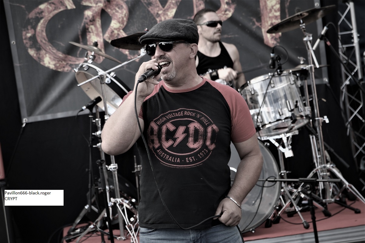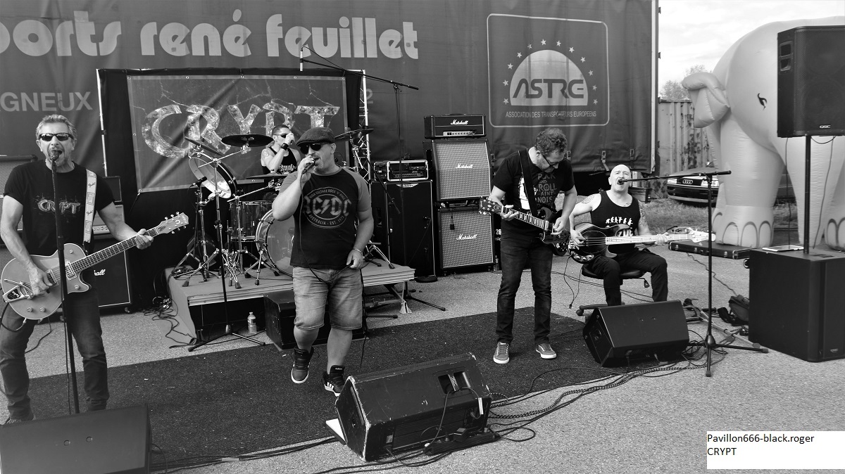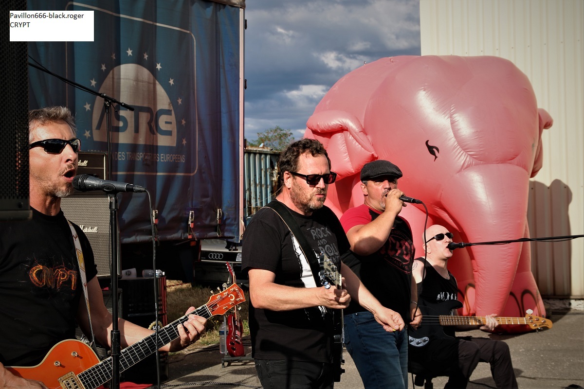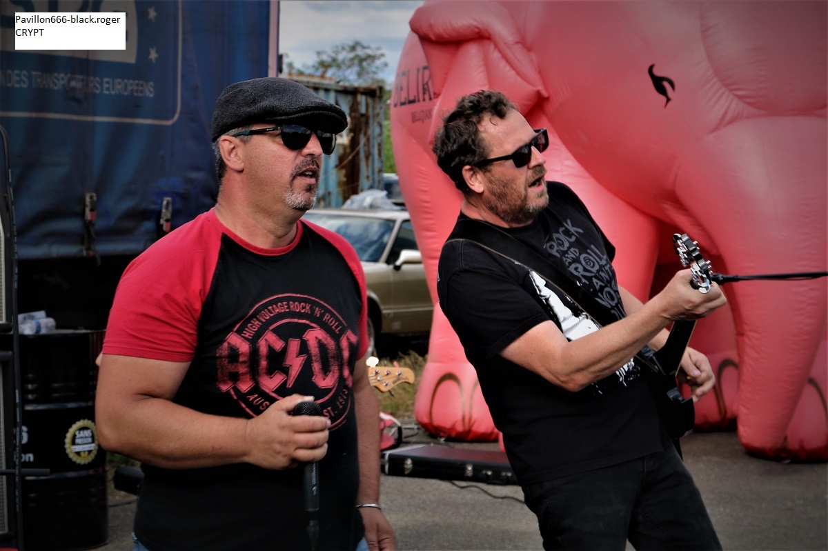 Nombreuse assistance dans ces lieux il faut le souligner et c’est normal car les endroits où l’on peut se retrouver dans une ambiance live ne sont pas légion en cette période « troublée » vous m’avez compris. Et le Sans pression a bien organisé ce meeting, courageusement nous pouvons le dire. A l’extérieurs des stands, des voitures de collection, des bikes et puis donc des concerts avec deux groupes de hard-rock régionaux. En premier, c’est DOCTOR ALIBI qui est venu nous « soigner » de la pandémie à l’aide de son rock/metal « pur malt ». Alors sur prescription médicale nous aurons droit à des compositions perso du groupe, mais aussi à des reprises musclées de notamment Motörhead, Judas Priest et aussi de Nashville Pussy à forte dose « 4 titres ». Bref, en 18 titres Doctor Alibi a pu nous soigner du manque de « live » de cette année 2020 bien malade et figurez-vous que l’on a aimé leur prestation qui a dépoussiéré les gros amplis Marshall. Merci les gars vous revenez quand vous voulez, ici ou ailleurs ! Et puis ce fus au tour des 5 lascars de CRYPT de mettre l’ambiance avec des titres incontournables des Australiens pur rock n’roll d’AC/DC. Crypt est donc un groupe de reprise mais il faut reconnaitre que tout y est, attitude, voix, riffs, puissance de feu, du binaire en folie donc. Tout le monde se presse enfin contre le groupe, l’ambiance est là bien palpable avec les fans reprenant en chœur par exemple « back in black », « get it hot », « high voltage », « TNT » ou encore « highway to hell », je ne vous fais pas un dessin, plu de 20 titres légendaire au menu ! Crypt est donc une « war machine » si vous voulez. Crypt nous a emballé sans problème avec pression (sic). Merci aux organisateurs pour cette journée « qui fait du bien », ambiance retrouvailles, musique qui « déménage » et tout et tout, on recommence quand ? |