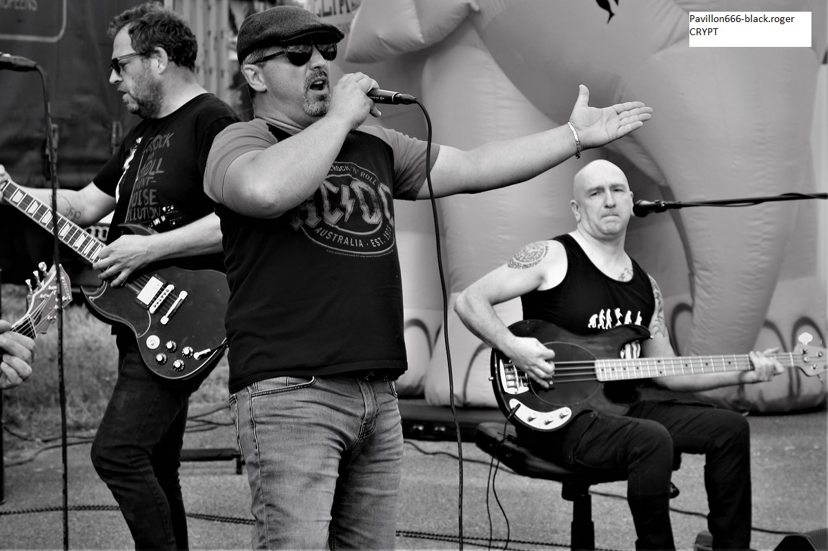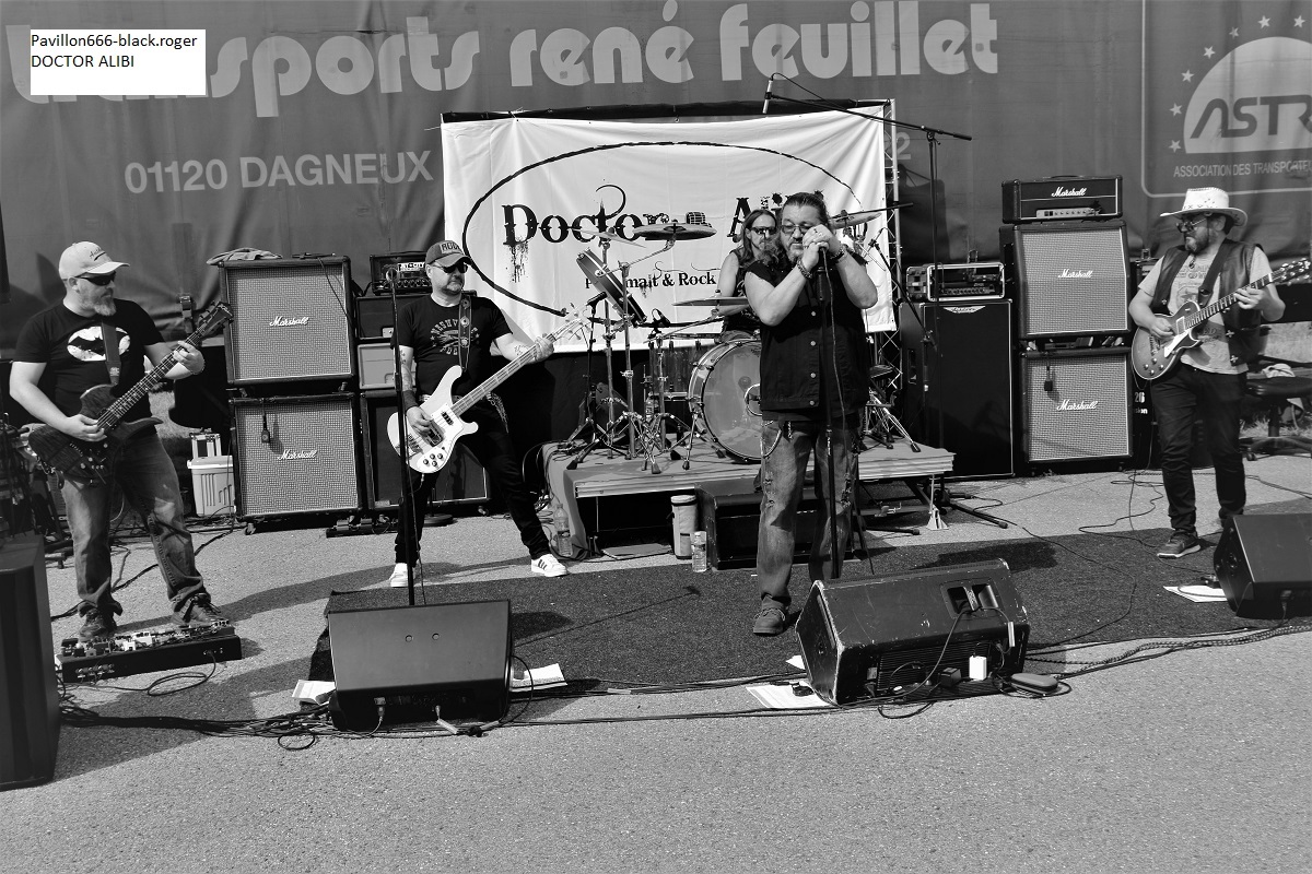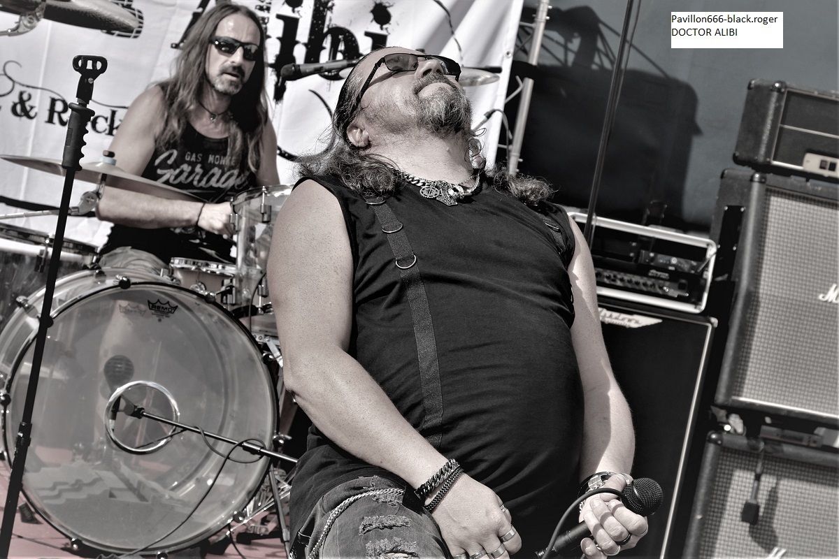 Nombreuse assistance dans ces lieux il faut le souligner et c’est normal car les endroits où l’on peut se retrouver dans une ambiance live ne sont pas légion en cette période « troublée » vous m’avez compris. Et le Sans pression a bien organisé ce meeting, courageusement nous pouvons le dire. A l’extérieurs des stands, des voitures de collection, des bikes et puis donc des concerts avec deux groupes de hard-rock régionaux. En premier, c’est DOCTOR ALIBI qui est venu nous « soigner » de la pandémie à l’aide de son rock/metal « pur malt ». Alors sur prescription médicale nous aurons droit à des compositions perso du groupe, mais aussi à des reprises musclées de notamment Motörhead, Judas Priest et aussi de Nashville Pussy à forte dose « 4 titres ». Bref, en 18 titres Doctor Alibi a pu nous soigner du manque de « live » de cette année 2020 bien malade et figurez-vous que l’on a aimé leur prestation qui a dépoussiéré les gros amplis Marshall. Merci les gars vous revenez quand vous voulez, ici ou ailleurs ! Et puis ce fus au tour des 5 lascars de CRYPT de mettre l’ambiance avec des titres incontournables des Australiens pur rock n’roll d’AC/DC. Crypt est donc un groupe de reprise mais il faut reconnaitre que tout y est, attitude, voix, riffs, puissance de feu, du binaire en folie donc. Tout le monde se presse enfin contre le groupe, l’ambiance est là bien palpable avec les fans reprenant en chœur par exemple « back in black », « get it hot », « high voltage », « TNT » ou encore « highway to hell », je ne vous fais pas un dessin, plu de 20 titres légendaire au menu ! Crypt est donc une « war machine » si vous voulez. Crypt nous a emballé sans problème avec pression (sic). Merci aux organisateurs pour cette journée « qui fait du bien », ambiance retrouvailles, musique qui « déménage » et tout et tout, on recommence quand ? |