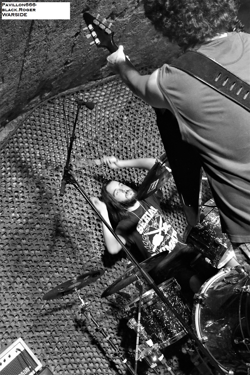 Et dès 19heures 30, c’est SHARKED qui ouvre le « petit bal » du Samedi soir, premier groupe à annoncer la couleur car ce soir (comme d’habitude enfin quoi !) le PCD ne va pas faire dans la dentelle avec des formations metal plus ou moins brutales mais toujours extrêmes et nous aimons ça, voyons ! Bon, alors que nous propose Sharked ? Eh bien c’est du lourd, du thrash avec une louche de death et une pincée de grindcore Le groupe nous offre des titres « liberticides » pas encore « insecticides » mais ça viendra bien un, jour. En tous cas ce soir Sharked nous en met plein la vue et les oreilles, set idéal en début de soirée afin de nous « laver » de tous les propos « lavage de cerveau » qui nous affectent en ce moment, alors « stay metal », « stay brutal », « stay strong », et pour longtemps encore ! Un boys band goregrind metal, il fallait oser et c’est AxDxT qui l’a fait ! De la couleur, du fluo, des accessoires sado-maso, des dérives grindcore exécutées par trois musicos en folie armés de fûts et cymbales, de batterie quoi, de guitare et de basse avec des voix parodiques ou bien gutturales, nous y sommes ! Mais nous sommes où en fait ? Et bien regardez les attitudes et savourez les textes issus notamment de leur dernière compilation et de l’album «shit’s all right » sorti pour la dernière St-Valenchien, St-Valentin pardon ; Du love’n gore extrême donc à apprécier sans modération ! Avec HARMORAGE on ne rigole plus et le « dance-floor » de Trept va devenir très agité et brûlant comme le metal en fusion fus-t-il extrême. Harmorage est « psychocorrosif » à l’image de son deuxième album et va nous détruire ce qu’il nous reste de neurones, c’est sûr ! Harmorage nous offre un metal varié où se bousculent les envies punk, hard-rock et plus encore à vous de chercher. Les musiciens naviguent sur les flots d’une basse hors-norme d’une guitare abrasive, d’une batterie épileptique le tout dominé par des vocaux rageurs. Tout était donc réuni ce soir pour nous mettre un direct « in your face » et ce fus bon, qui a dit le contraire ? DEAD FUCK c’est trois gars qui viennent ce soir nous « blaster » jusqu’à plus soif à l’aide d’un death/grind à vous plaquer contre les murs de la cave. Et ce fus le cas avec un hurleur/grogneur arc-bouté sur son micro, un guitariste aux riffs saignants et un batteur démolisseur de fûts. Alors avec eux nous avons immédiatement eu le grind au « core » et tout se passe bien, c’est violent, rapide, précis et jusqu’au boutiste quoi ! Dead Fuck nous « parasite » les « cages à miel » vite et bien sans longueurs, sans faux-semblants. Les Lyonnais nous avaient manqué durant plus d’un an et demi et ce soir c’est donc la défonce sur et devant la scène, on aime, vraiment ! Il est tard maintenant mais tout le monde est bien présent pour accueillir comme il se doit WARSIDE. Bien sûr comme son nom l’indique Warside c’est du brutal amplifié et mijoté par de vieux briscards de la scène death/thrash Lyonnaise pour un death flirtant bien souvent avec le grind. Du coup le groupe nous fait voyager sur les terres brûlées du metal-de-la-mort-qui-tue, avec doigté SVP . Du coup il ne manque qu’un filet de camouflage sur le kit de batterie et l’on se croirait revenu au temps d’un Whisper-X (oups, j’ai rien dit !). Souvenez-vous d’un titre de cet ancien groupe, le prémonitoire « virus destroy human », alors nous y sommes ! Bref, Warside c’est de « la bonne », du brutal death qui tâche et vous tue à bout portant, merci les gars on se revoit quand vous voulez, « get a grip » ! Fin des hostilités vers une heure du matin, ne me reste qu’à remercier Norbert et Tom Roger, organisateurs infatigables et motivés, quel accueil ! Merci aux bénévoles sans qui rien ne serait possible matériellement, et bien entendu merci aux 5 formations en lice qui ont tout donné pour un public aux anges (au diable pardon), on recommence quand ? |