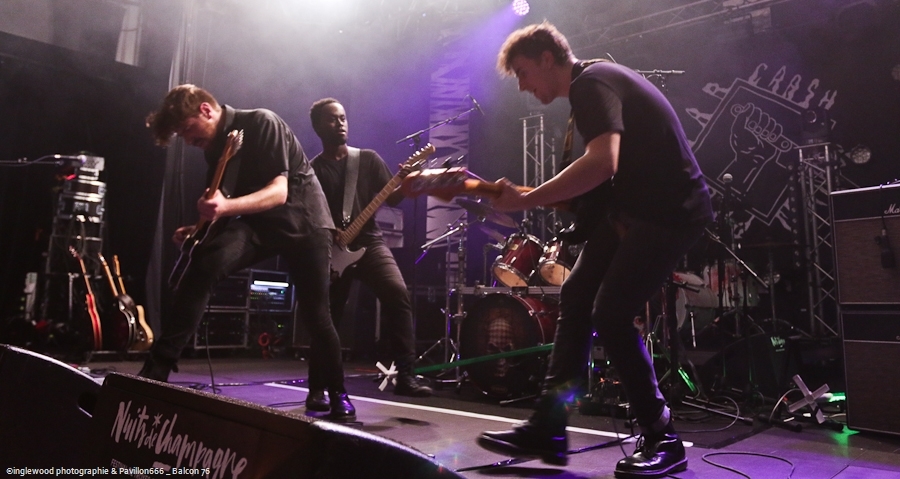 Mais, une fois par an, tout le microcosme culturel s’agite pour « Les nuits de Champagne », événement populaire destiné au grand public fort apprécié de la bien-pensante bourgeoisie locale. En gros, on se délecte des Souchon-Voulzy en buvant des coupettes ! Mais 2021 est une année différente… En effet l’association Dixsonance qui profite des « Nuits de Champagne » pour promouvoir des groupes locaux dans le cadre de leur « Tremplin musiques actuelles » invite chaque année une tête d’affiche renommée. Et, en 2021, ils ont eu la très bonne idée de faire venir Pogo Crash Car Control (P3C) pour une soirée que l’on n’est pas prêt d’oublier. La soirée débuta donc avec les deux groupes finalistes du tremplin musiques actuelles, à savoir « Balcon 76 » et « Mon doigt dans ton crew ». Balcon 76 m’a très agréablement surpris. Les compositions sont fouillées et hargneuses, le rock est aiguisé et les quatre écorchés maintiennent une pression sur la scène qui verrouillent vos sentiments. C’est plaisant à entendre et à voir. Balcon 76 est très à l’aise sur scène et ne semble pas du tout intimidé. Les textes sont quelque peu névrotiques, mais ç’est l’idée. Bravo ! La suite sera moins fine… C’est le groupe « mon doigt dans ton crew » qui prend d’assaut la scène. Du punk à roulettes pur et dur pour amateurs du genre. Il semble bien que les amateurs fussent présents et ravis, car c’est bien « mon doigt dans ton crew » qui fut déclaré gagnant du tremplin à l’issue du vote du public et du jury. La perte de temps n’est pas dans l’ADN des Pogo Crash Car Control (P3C), le groupe nous a fait du rentre-dedans systématique et c’était bien ! Le dernier album du groupe est clairement plus metal que le précèdent et il est bien évident que cette envie se répercute en live. Quelle puissance et quel punch ! Une énergie punk/grunge communicative malgré le faible public. Les quatre parisiens se démènent et la scène est un vrai champ de boue labouré aux riffs aiguisé et arrogants des « crèves » ou « aluminium ». On n’avait pas envie que ça se termine, c’est bon signe ! Merci les P3C d’avoir bousculé les Nuits de Champagne ! Merci à Greg pour l'accred !! |