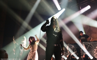 Même si la salle n’était pas full, l’ambiance était chauffée à blanc et on peut dire que les groupes se souviendront de cette date. Ils ne doivent pas avoir dû jouer si souvent devant une telle audience. Il fallait être là pour comprendre, mais Igorrr et Horskh eux, comprendront. Horskh ne fait pas dans la dentelle, le duo devenu trio assène un electro-metal-indus violent et sans compromis. J’ai apprécié la mise en scène et la mise en lumière. Je tiens d’ailleurs à mettre en avant la beauté et la précision des lights durant toute la soirée, l’ingé lumière et un des héros de la soirée. 45 minutes d’un set brillant, habité et bien mis en scène, à aucun moment, on ne s’ennuie, les titres sont accrocheurs et inspirés et ne sombrent jamais dans la facilité. Un excellent moment pour ma part, je valide sans réserve. « Paranoid Bulldozer Italiano » résonne vers 22h et les basses nous font trembler les organes alors que Gauthier débute seul le set d’Igorrr. Je ne peux vous le cacher, je suis fan du groupe, de sa folie, de son génie créatif et de ses prestations barrées. J’étais on ne peut plus curieux et impatient de découvrir les successeurs de Laure Le Prunenec et Laurent Lunoir aux chants. En effet, ceux-ci ont fait l’identité vocale du groupe d’une façon si intense qu’il me semblait difficile d’imaginer une transition. Et bien dans l’ensemble, je suis satisfait. Aphrodite Patoulidou et JB Le Bail sont dorénavant sur le devant de la scène et assure le coté visuel d’Igorrr avec aplomb et conviction. Aphrodite s’en sort remarquablement, vocalement, c’est à s’y méprendre et scéniquement, c’est très différent de Laure. On est carrément plus joué, habité et sans retenue. Aphrodite grimace, se tord, dandine de façon flippante et incarne la folie du groupe. Petite déception pour JB Le Bail, c’est vrai qu’il est extrêmement difficile de remplacer Laurent Lunoir. Si la voix est à la hauteur, la présence sur scène n’est pas aussi puissante et animale que par le passé. Impossible d’oublier la tenue, l’attitude et la tension que provoquait le désormais ancien chanteur. Qu’en est-il de la prestation ? Musicalement, Igorrr, c’est du caviar, l’ajout d’un guitariste sur scène est un vrai plus et comble les fans les plus metal du groupe. La set-list oscille beaucoup sur les deux derniers albums d’Igorrr et cela a semblé contenté le public du Silex qui a rendu coup pour coup. Le light show est parfait et digne de la musique, il est une partie intégrante du spectacle. Un véritable spectacle, oui, un cirque baroque ou tout peut arriver, un chaos bancal et assourdissant qui nous laisse fatigués et pantois. Igorrr, c’est l’animalité à l’état pur et l’expression brute d’un génie absolu. C’était extrêmement brillant, bravo, merci et on se voit au Hellfest ! Merci Maïté et à toute l'équipe du Silex, toujours au top ! |
