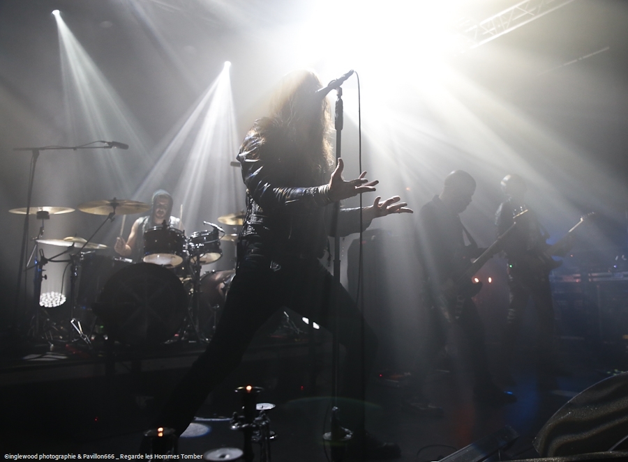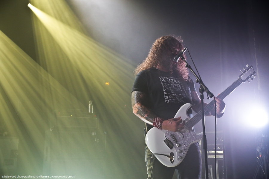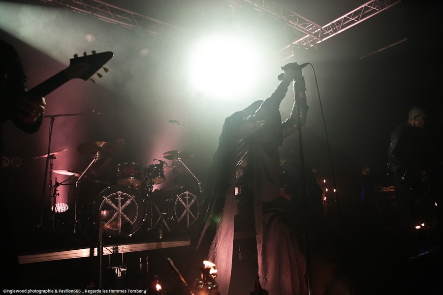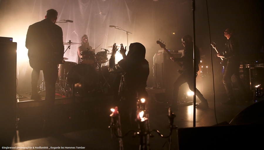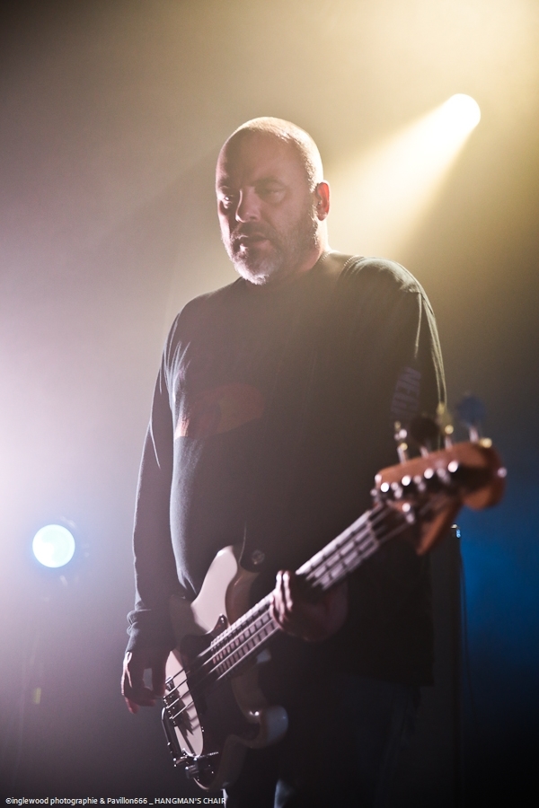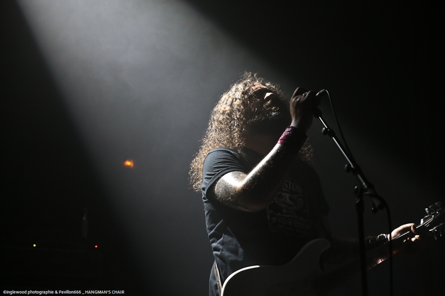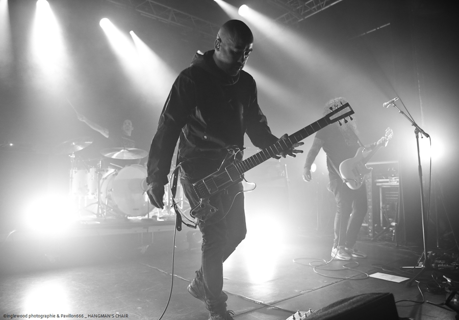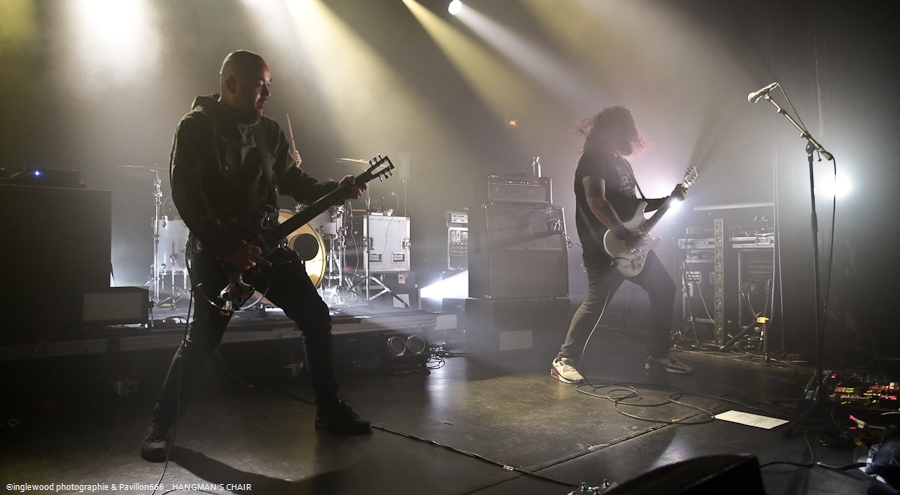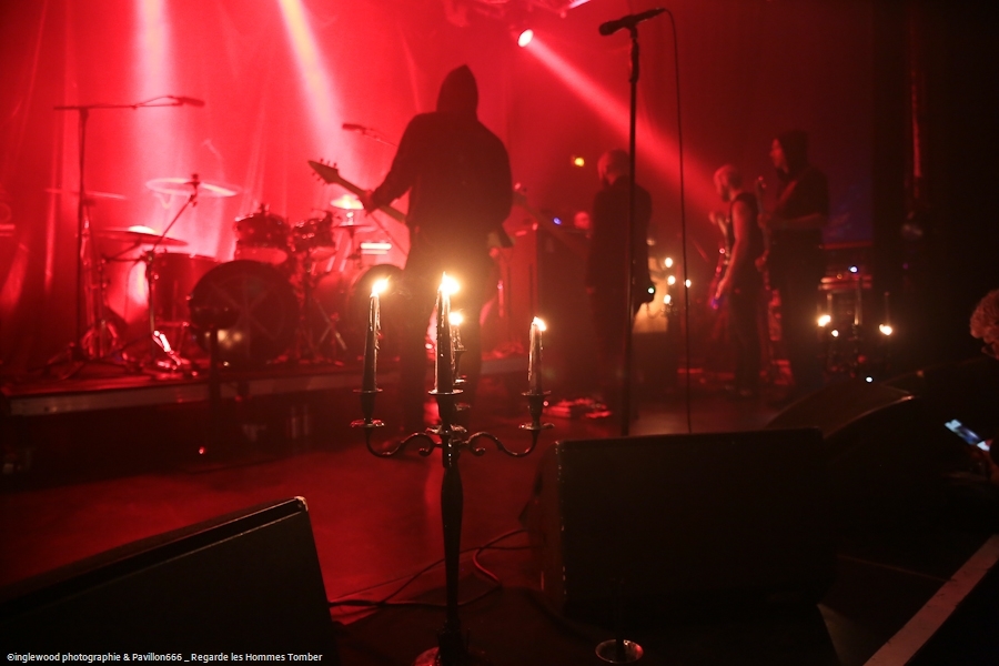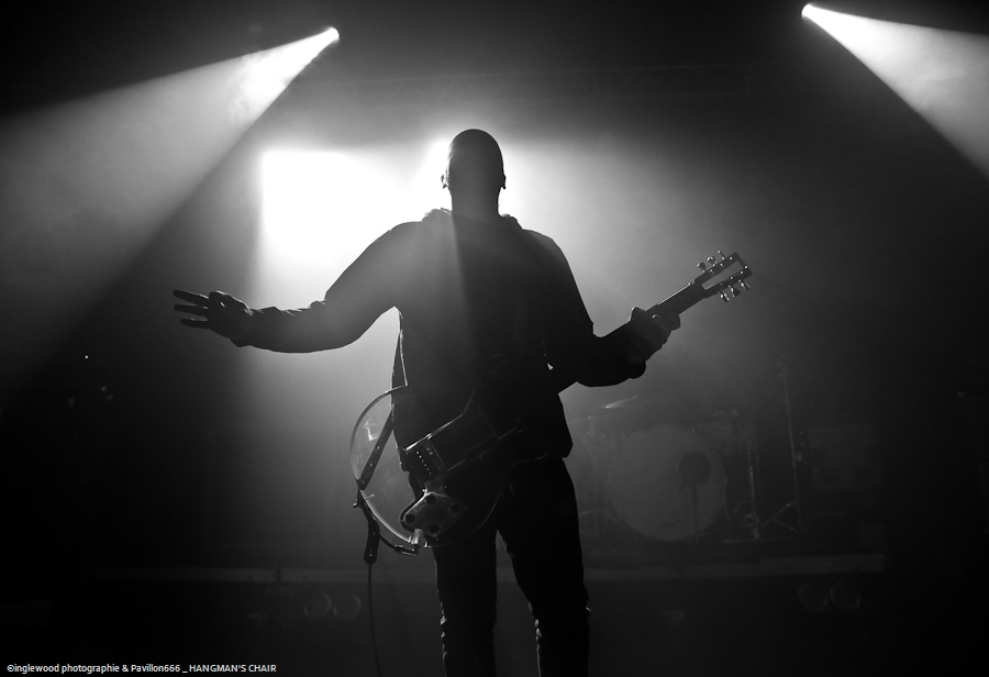 Tout d’abord, cette salle est parfaite pour ce style de plateau, à la fois intime, réduite et humaine, cette salle fut le réceptacle idéal pour créer une ambiance propice aux deux formations de la soirée. Une soirée placée sous le signe des atmosphères sombres, planantes et violentes. « Regarde les hommes tomber » et «Hangman's Chair » sont réputés pour poser un voile lourd et sombre sur leurs performances et, ce soir, ils ne nous ont pas déçu. Je n'avais jamais vu Hangman's Chair sur scène et je dois dire que ce fut une bonne surprise. Le groupe à la capacité d'assombrir le climat et d'instaurer son ambiance sonore propre. Un jeu de scène sobre mais viril, chaque musicien fait de son corps un outil émotionnel et contagieux. Musicalement, maîtrisé, le set de HC peu paraître quelque peu difficile d'accès, il faut se laisser aller et bercer par les tendances mélancoliques et dépressives des titres, une fois fait, la transe et puissante. Le temps d'installer la mise en scène, chandeliers et encens que RLHT entame « L'ascension ». Dire que ce ne fut qu'un grand huit émotionnel est un euphémisme. Une avalanche de morceaux alternants riffs brutaux et arpèges hypnotiques diablement efficaces, un chanteur possédé et énigmatique, RLHT assène les coups avec une violence froide et terriblement puissante. Pas de blabla, on déroule les titres, les atmosphères et les mysticismes dans un crescendo de violence et de puissance. C'est fort et prenant, le groupe est affûté et très à l'aise réussissant même à déclencher un petit pogo sur la fin du set. Une soirée lourde et pesante réussie en tout point. Deux groupes au top et une belle affluence. On vous revoit très bientôt au Hellfest pour une deuxième dose de rappel. |