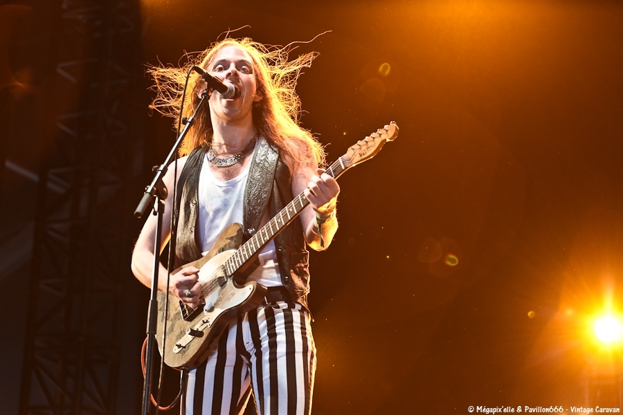 • ME AND THAT MAN (14h20 - 15h00) La grande classe, un set très rock et classieux, un véritable bon moment . • THE VINTAGE CARAVAN (15h55 - 16h40) Les petits chouchous, un rock psyché super efficace qui donne la pèche et une belle rencontre à l’espace VIP, des mecs super sympas. • TAAKE (18h30 - 19h20) Grandiose, prenant excellent. • STEEL PANTHER (19h25 - 20h25) Du fun, du fun, un spectacle très bien réglé et la meilleure imitation d’Ozzy au monde. • SEPULTURA (21h35 - 22h35) LA CLAQUE !! énorme et parfait, je ne vois pas quoi ajouter. • GHOST (23h10 - 00h45) Du grand spectacle, que des tubes, je suis fan et j’ai passé un très bon moment. • AIRBOURNE (01h00 - 02h05) Vu rapidement parce que je savais que je serai là le second week-end. |