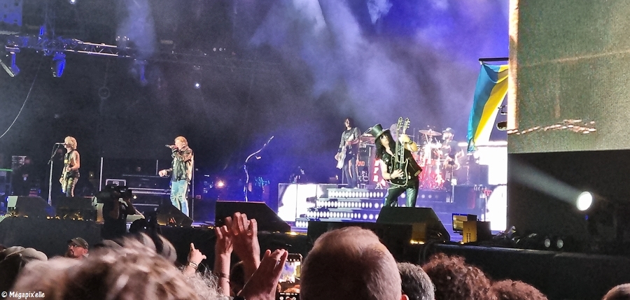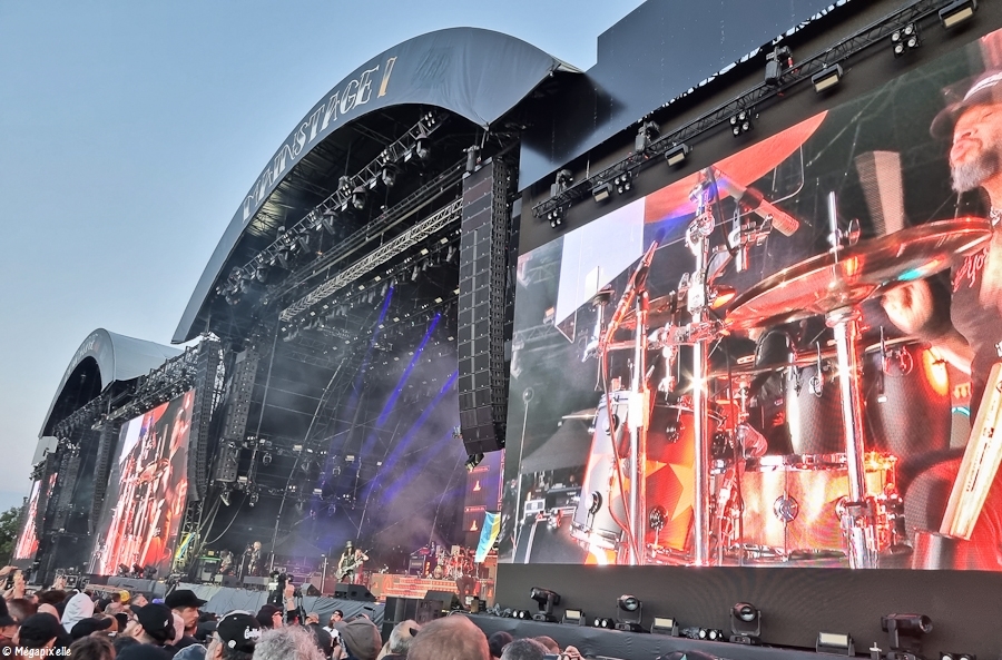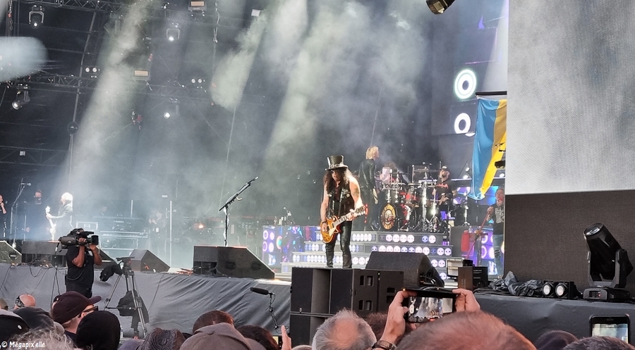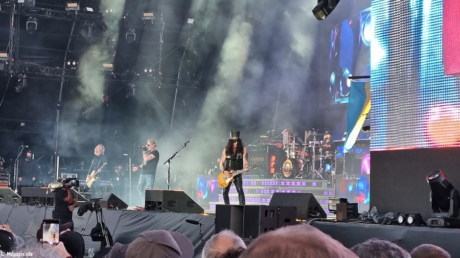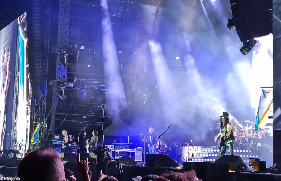 • ELUVEITIE (16h10 - 16h55) Très bien ! c’est hyper efficace, il se passe toujours quelque chose sur scène, le groupe est super au point et sait mener un show. • MYLES KENNEDY AND COMPANY (17h00 - 17h50) Bonne surprise, moment de rock bien sympa. On attendait tous Slash sur « World on fire » mais il n’est pas venu. • EPICA (17h55 - 18h55) Vu de loin en attendant la suite, pas trop ma tasse de thé. • AIRBOURNE (19h00 - 20h15) Exceptionnel, du fun, du fun, personne ne tient la scène aussi bien que Airbourne et sert les meilleur Jack/Coca du monde. • NIGHTWISH (20h20 - 21h50) Vu de loin en attendant la suite, toujours pas trop ma tasse de thé mais le public dont une amie a vraiment aimé donc ça devait être très bien. • GUNS N' ROSES (21h55 - 00h25) 3h30 de spectacle, bien fait qui a ravi les fans dont moi, j’ai kiffé … les haters ont détestés, et alors ?? Gn’R a assuré le spectacle en enchainant les tubes. Axl était affuté et avait la vois d’un mec de 60 ans plus celle d’il y a 30 ans, c’est sur mais ça n’a pas empêcher de prendre du plaisir. |