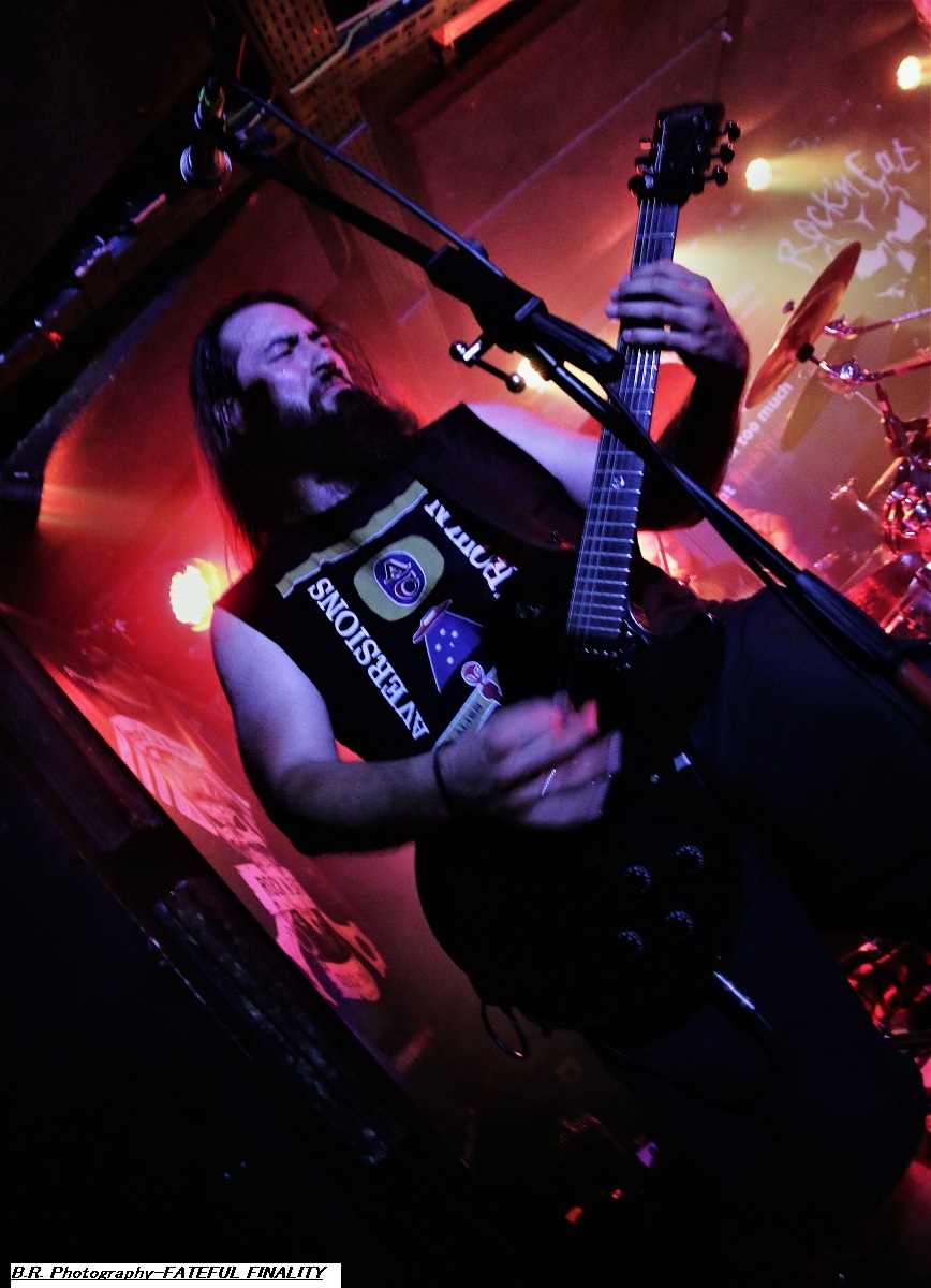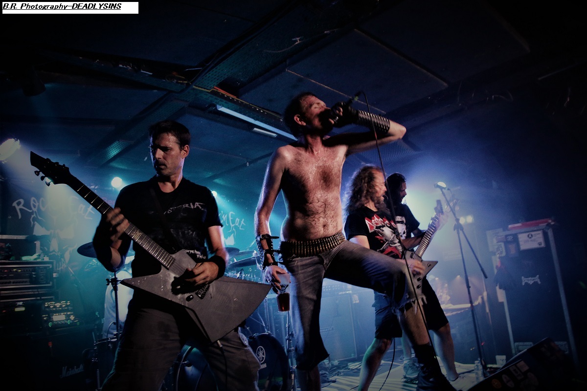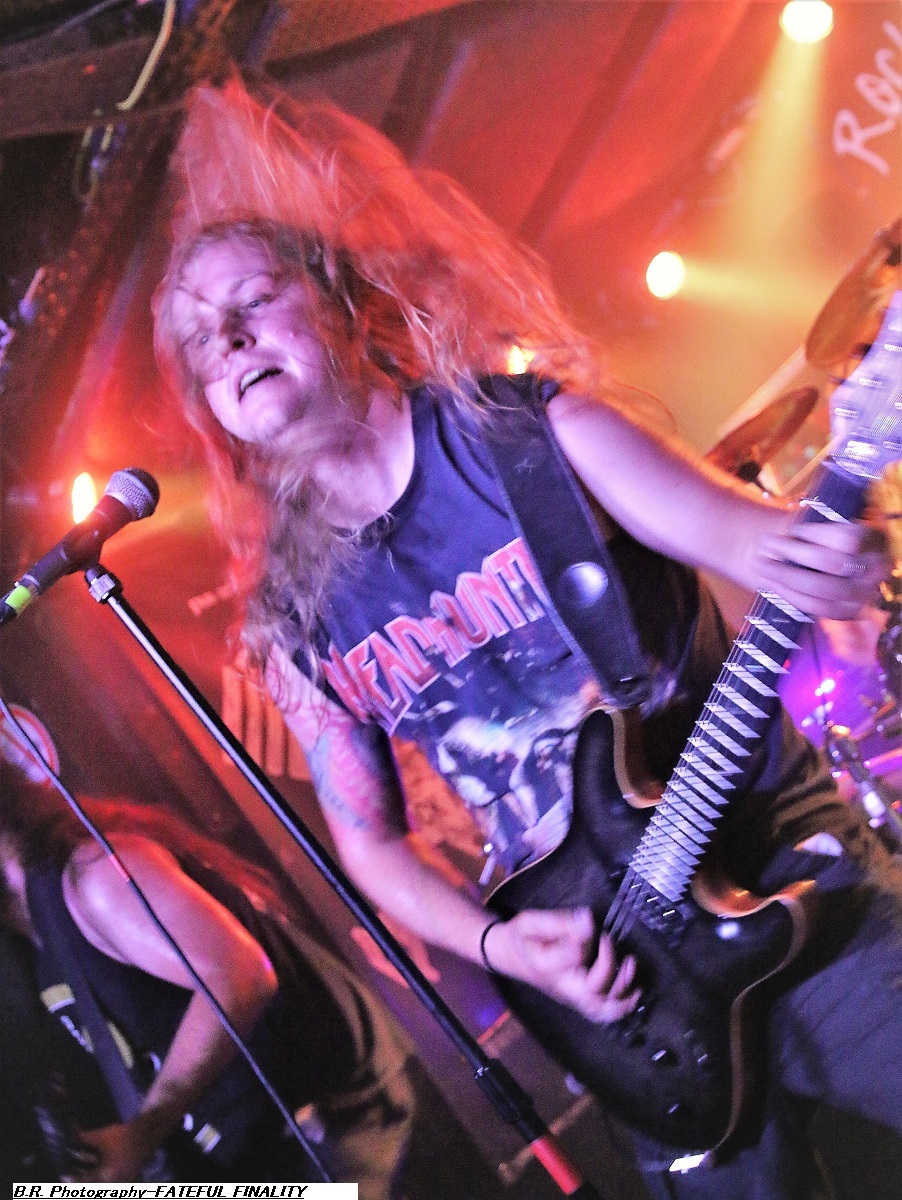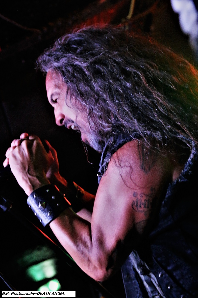 Mais avant leur set, nous avons pu apprécier la prestation des Lyonnais DEADLYSINS remontés à block ce soir et qui nous ont mis sdans le bain (de sueur ?) sans préambule, sans faux semblant, old-school peut-être mais efficace à 100%, paf ! Ensuite nous avons eu droit à la prestation musclée de nos cousins Germains FATEFUL FINALITY, groupe qui accompagne Death Angel sur la tournée, ce soir étant leur seconde date. La tension est montée d’un cran dans le public, la chalmeur aussi ! Leur set fut brutal, rapide, intense dans un registre thrash aux touches modernes mais implacable de puissance de feu, aargh ! La pression continue de monter de plusieurs crans, la température devenant caniculaire devant la scène avec l’arrivée devant nous des Californiens de DEATH ANGEL. Et là, dès le premier titre, tout part en live, garez-vous car ça va être une tuerie carrément ! Et l’on a dégusté dans tous les sens du terme avec ce thrash sans concession et des musiciens au top niveau avec aussi un Mark Osegueda sympathique serrant les mains durant le set (dont la mienne), sympa quoi Bref, Death Angel est toujours placé à un très haut niveau et nous a écrasé tout simplement, mais avec doigté SVP, ! Merci aux groupes, merci au public pour l’ambiance instaurée et bien entendu merci au Rock n,Eat qui nous propose des menus metal/rock de choix. |