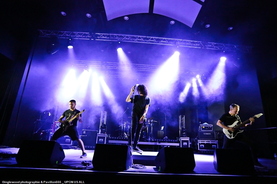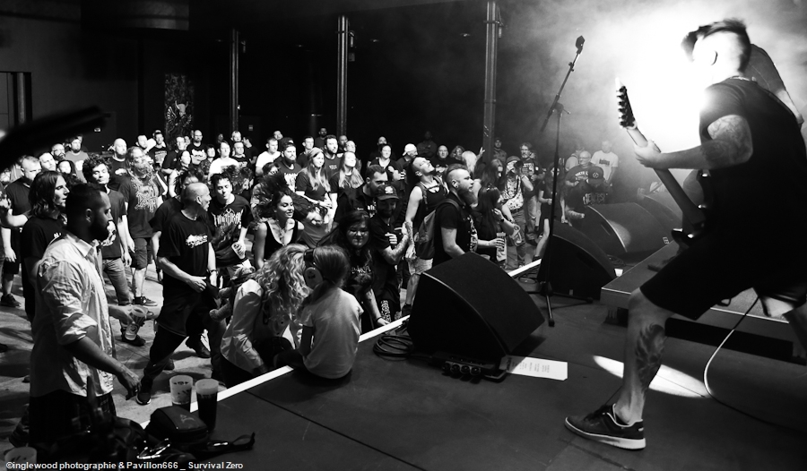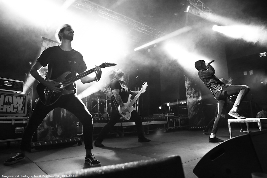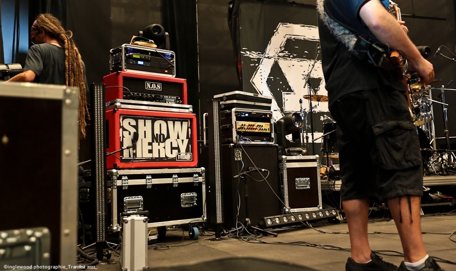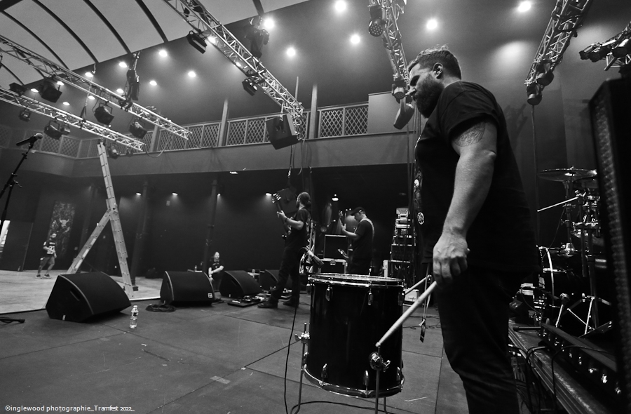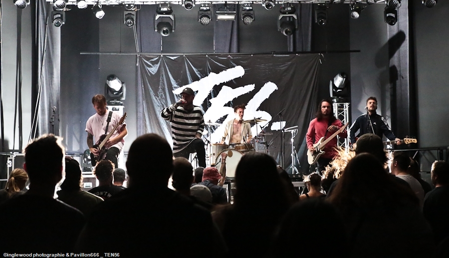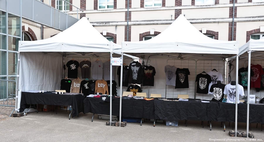 L’équipe avait à cœur d’atteindre les standards d’un festival digne de ce nom et il faut bien avouer que l’orga fut au top. Espace restauration avec tables et bancs, stands de merch pour les groupes bien mis en valeur et deux bars dont un en extérieur avec du houblon de qualité. Le tout mené par une équipe de bénévoles (de potes également) super efficaces, organisés et souriants, encadrés par notre asticot local. Coté logistique, c’est un 10 ! Pas de blablas, je connais la salle par cœur et dans ses moindres recoins. Pas surpris, donc en voyant la qualité de l’installation coté lights et son. Tout est réuni pour que nous passions une bonne soirée avec TEN 56 (Nu Deathcore – Paris), UPON US ALL (Metal – Toulouse), HURAKAN (Deathcore – Paris) SURVIVAL ZERO (Groove Metal – Troyes) et NOSTRONAUT (Stoner – Troyes), un plateau assez varié. Un coucou au copain Ben de bgpmusiclive.com qui avait quitté sa région parisienne pour ma campagne et on y va ! NOSTRONAUT ouvre la soirée dans un registre stoner très propre et bien dans les standards. Le chanteur bardé de son Hagström (magnifique) et le bassiste de sa Rickenbacker 4003 (Lemmy forever) m’ont fait grande impression, sans dénigrer leurs deux acolytes bien sûr. Le chanteur, capitaine de vaisseau a su nous embarquer avec lui de manière assez naturelle et j’ai bien apprécié ce qui m’était proposé. C’est solide. Survival Zero c’est un peu la « dream team » locale, tous les membres ont été ensemble ou non dans diverses formations troyennes par le passé. Le groupe est sortit du bois au début de la crise covid et à du ronger son frein pendant de longs mois malgré la sortie d’un excellent album « The ascension ». Depuis, les gars se sont rodés sur les routes (notamment au Hellfest) et je dois dire que c’est la performance la plus propre que j’ai pu voir d’eux. Une mise en place remarquable, rien ne bouge rythmiquement, Pierre est impérial au chant, haranguant un public prêt à en découdre sur les riffs gras et massifs de Survival Zero. Ce groupe sait ce qu’il fait et maîtrise beaucoup des aspects d’un live réussi, gardez ce nom dans vos radars. La soirée ne faiblit pas avec la montée sur scène de UPON US ALL. Un registre Djent et des compos aérées, mais aux tonalités pesantes. Le chant alterne growls et clairs avec brio, et même si l’agressivité est bien présente, on ressent une réelle volonté mélodique qui a su séduire une audience très réceptive. Avec HURAKAN, on passe clairement du côté d’un Deathcore moderne et dans l’ère du temps. Que c’est bien fait les amis ! Des riffs massifs, du breakdowns cassage de nuque, de magnifiques samples et un chant hyper cohérent. Un groupe de tueurs qui a moissonné la Chapelle Argence. On passe aux stars de la soirée, Ten56. Décrit par certains comme « la sensation metal 2022 », le groupe composé de grands noms du metal français se veut dans la lignée du grand SLIPKNOT, créatif comme un certain KORN, et d’une puissance GOJIRESQUE, qu’en est-il ? J’ai vu Ten56 au Motocultor , et je dois bien l’avouer, j’ai été séduit, il aurait pu en être de même ici, si on avait vu quelque chose… Ten56 (comme pas mal de groupes actuels) mise sur un light show de type « malvoyant », c’est-à-dire dans le noir 90 % du temps et le reste avec deux phares de bagnoles s’illuminant au rythme du kick. Mis à part ça, il faut bien l’avouer, c’est mortel ! Le groupe enchaîne avec grande violence low kick et uppercuts sans nous laisser reprendre notre souffle. La fosse s’est liquéfiée devant tous les assauts de Ten56. Un set pro, maîtrisé et efficace, mais trop court, le groupe n’ayant sorti qu’un EP. À suivre, évidemment, bravo, mais pitié, mettez de la lumière, vous n’êtes pas si moches. Pour conclure, je dirais que ce premier Tramfest indoor est aux yeux de tous une franche réussite. Le public a répondu présent avec pas mal de gamins bien vénères (ça fait plaisir.), beaucoup de sourires et un grand plaisir de se retrouver enfin pour se faire plaisir. Merci à TRAM et Maurine pour l’accred. |