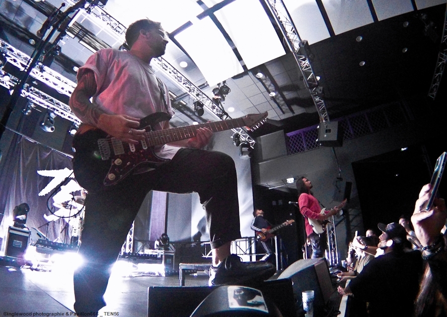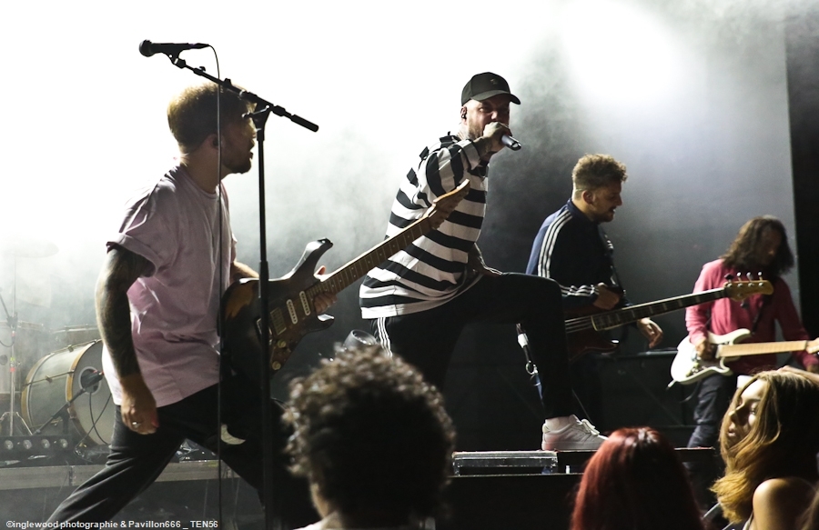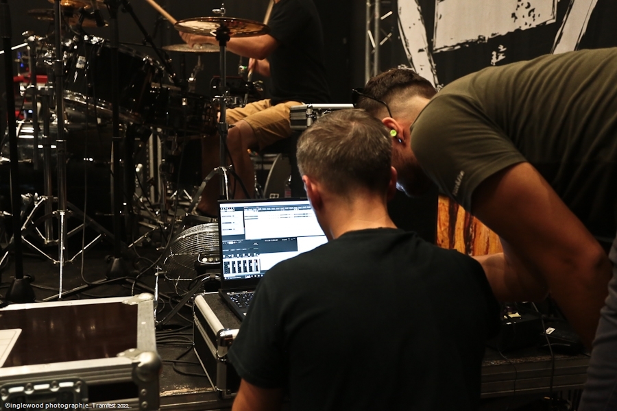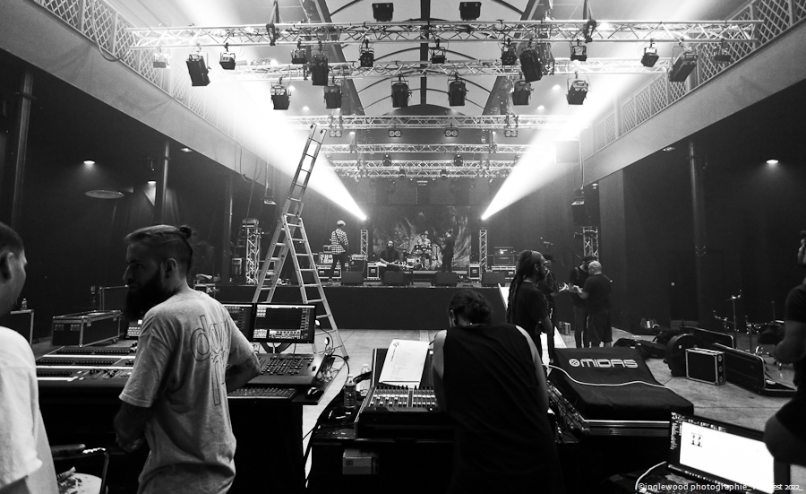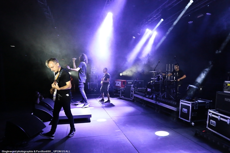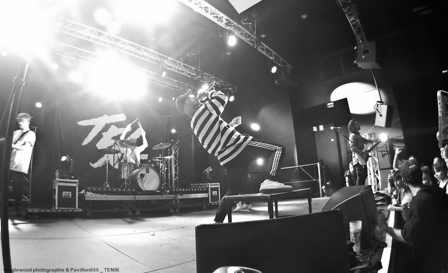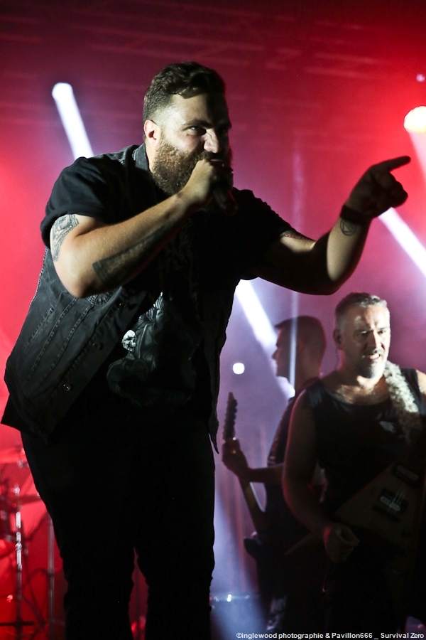 L’équipe avait à cœur d’atteindre les standards d’un festival digne de ce nom et il faut bien avouer que l’orga fut au top. Espace restauration avec tables et bancs, stands de merch pour les groupes bien mis en valeur et deux bars dont un en extérieur avec du houblon de qualité. Le tout mené par une équipe de bénévoles (de potes également) super efficaces, organisés et souriants, encadrés par notre asticot local. Coté logistique, c’est un 10 ! Pas de blablas, je connais la salle par cœur et dans ses moindres recoins. Pas surpris, donc en voyant la qualité de l’installation coté lights et son. Tout est réuni pour que nous passions une bonne soirée avec TEN 56 (Nu Deathcore – Paris), UPON US ALL (Metal – Toulouse), HURAKAN (Deathcore – Paris) SURVIVAL ZERO (Groove Metal – Troyes) et NOSTRONAUT (Stoner – Troyes), un plateau assez varié. Un coucou au copain Ben de bgpmusiclive.com qui avait quitté sa région parisienne pour ma campagne et on y va ! NOSTRONAUT ouvre la soirée dans un registre stoner très propre et bien dans les standards. Le chanteur bardé de son Hagström (magnifique) et le bassiste de sa Rickenbacker 4003 (Lemmy forever) m’ont fait grande impression, sans dénigrer leurs deux acolytes bien sûr. Le chanteur, capitaine de vaisseau a su nous embarquer avec lui de manière assez naturelle et j’ai bien apprécié ce qui m’était proposé. C’est solide. Survival Zero c’est un peu la « dream team » locale, tous les membres ont été ensemble ou non dans diverses formations troyennes par le passé. Le groupe est sortit du bois au début de la crise covid et à du ronger son frein pendant de longs mois malgré la sortie d’un excellent album « The ascension ». Depuis, les gars se sont rodés sur les routes (notamment au Hellfest) et je dois dire que c’est la performance la plus propre que j’ai pu voir d’eux. Une mise en place remarquable, rien ne bouge rythmiquement, Pierre est impérial au chant, haranguant un public prêt à en découdre sur les riffs gras et massifs de Survival Zero. Ce groupe sait ce qu’il fait et maîtrise beaucoup des aspects d’un live réussi, gardez ce nom dans vos radars. La soirée ne faiblit pas avec la montée sur scène de UPON US ALL. Un registre Djent et des compos aérées, mais aux tonalités pesantes. Le chant alterne growls et clairs avec brio, et même si l’agressivité est bien présente, on ressent une réelle volonté mélodique qui a su séduire une audience très réceptive. Avec HURAKAN, on passe clairement du côté d’un Deathcore moderne et dans l’ère du temps. Que c’est bien fait les amis ! Des riffs massifs, du breakdowns cassage de nuque, de magnifiques samples et un chant hyper cohérent. Un groupe de tueurs qui a moissonné la Chapelle Argence. On passe aux stars de la soirée, Ten56. Décrit par certains comme « la sensation metal 2022 », le groupe composé de grands noms du metal français se veut dans la lignée du grand SLIPKNOT, créatif comme un certain KORN, et d’une puissance GOJIRESQUE, qu’en est-il ? J’ai vu Ten56 au Motocultor , et je dois bien l’avouer, j’ai été séduit, il aurait pu en être de même ici, si on avait vu quelque chose… Ten56 (comme pas mal de groupes actuels) mise sur un light show de type « malvoyant », c’est-à-dire dans le noir 90 % du temps et le reste avec deux phares de bagnoles s’illuminant au rythme du kick. Mis à part ça, il faut bien l’avouer, c’est mortel ! Le groupe enchaîne avec grande violence low kick et uppercuts sans nous laisser reprendre notre souffle. La fosse s’est liquéfiée devant tous les assauts de Ten56. Un set pro, maîtrisé et efficace, mais trop court, le groupe n’ayant sorti qu’un EP. À suivre, évidemment, bravo, mais pitié, mettez de la lumière, vous n’êtes pas si moches. Pour conclure, je dirais que ce premier Tramfest indoor est aux yeux de tous une franche réussite. Le public a répondu présent avec pas mal de gamins bien vénères (ça fait plaisir.), beaucoup de sourires et un grand plaisir de se retrouver enfin pour se faire plaisir. Merci à TRAM et Maurine pour l’accred. |