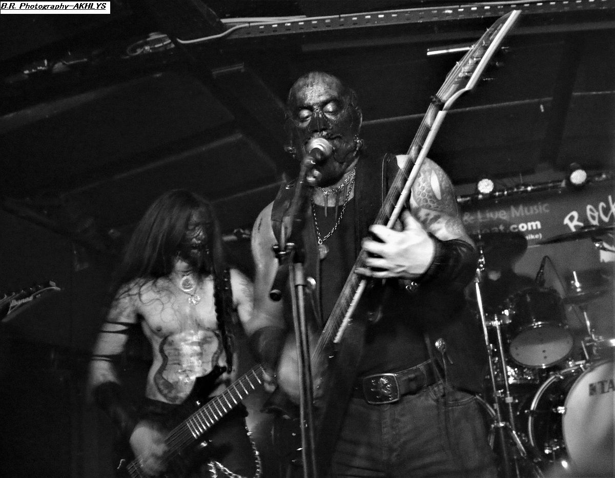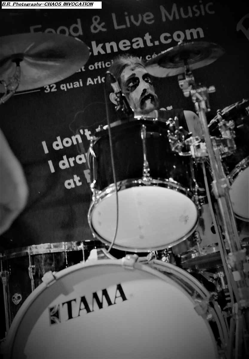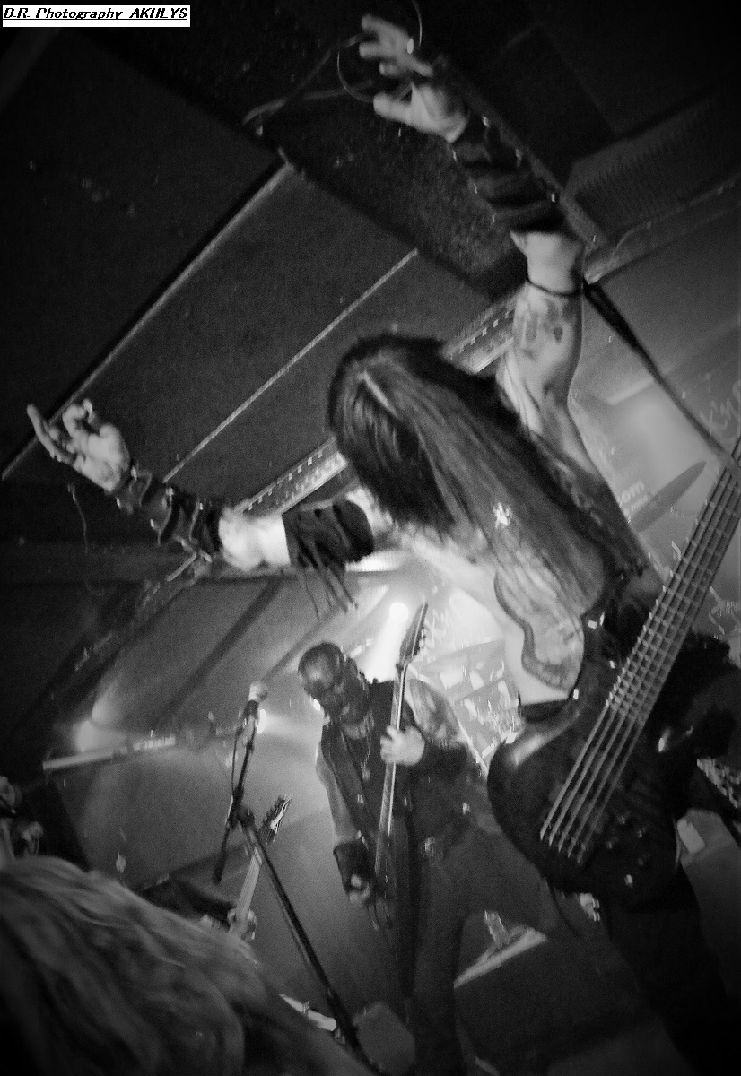 Plateau true black-metal donc qui s’est produit dans notre Rock n’Eat devant un public venu en nombre avec notamment la présence remarquée stand de Hasgard Hass. Il est tout juste 20 heures lorsque nos cousins Latins de FIDES INVERSA lancent le débat avec fracas, puissance de feu à la Marduk, oups, le nom est lâché. Mais qu’à cela ne tienne les Romains ont assuré pour un set qui d’emblée a mis tout le monde d’accord. Ce soir ça va vite et, à peine le temps de descendre une mousse que nos cousin Germains CHAOS INVOCATION nous plongent dans une ambiance malsaine à l’aide de compositions intéréssantes avec une influence Dark Funeral omniprésente. Leur black se révèle lourd et rageur sans négliger pourtant un peu d’harmonies sombres ici ou là, intéressant à plus d’un titre quoi ! AKHLYS des « states » démarre ensuite son set, naviguant entre la mort et des rêves glacés, compromis entre black, dark ambiant et folie cauchemardesque. Le tout rehaussé par les masques horrifiques des musiciens. Seul bémol, le grésillement des amplis en live par rapport aux CDs. Mais à part ça, ceux du Colorado sont empreint d’une certaine originalité dans le metal sombre er cela vaut le déplacement ! Soirée black-metal comme on aime au final et plus de 150 personnes ont eu raison de participer à cette grand’messe noire. Merci à MoonFog Production et au Rock n’Eat bien entendu, nous apprécions ! |