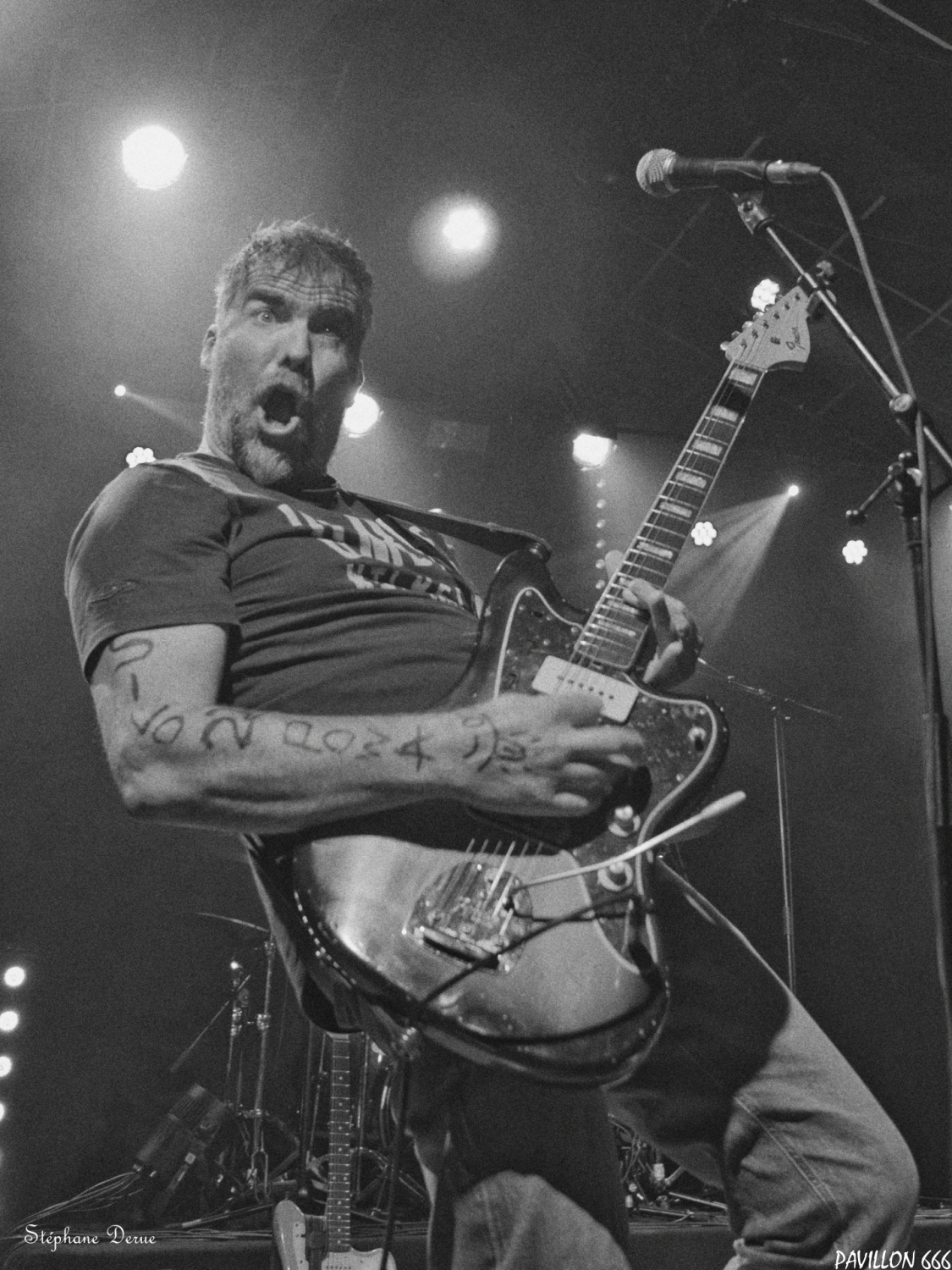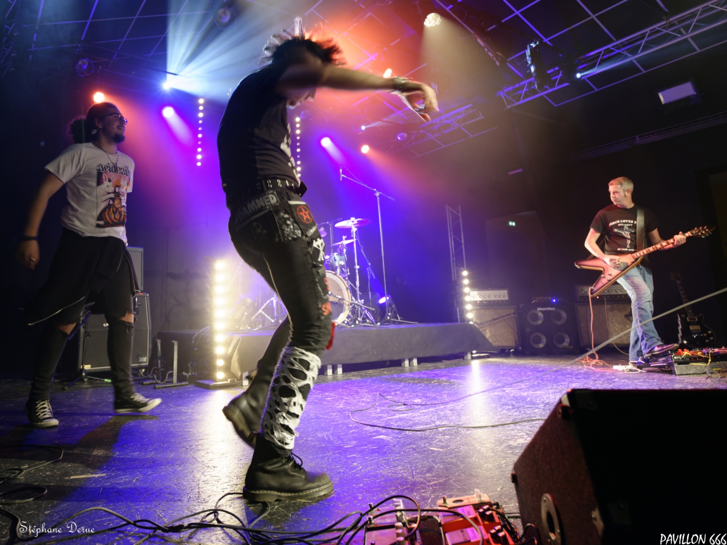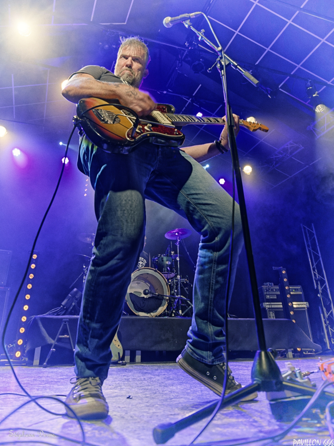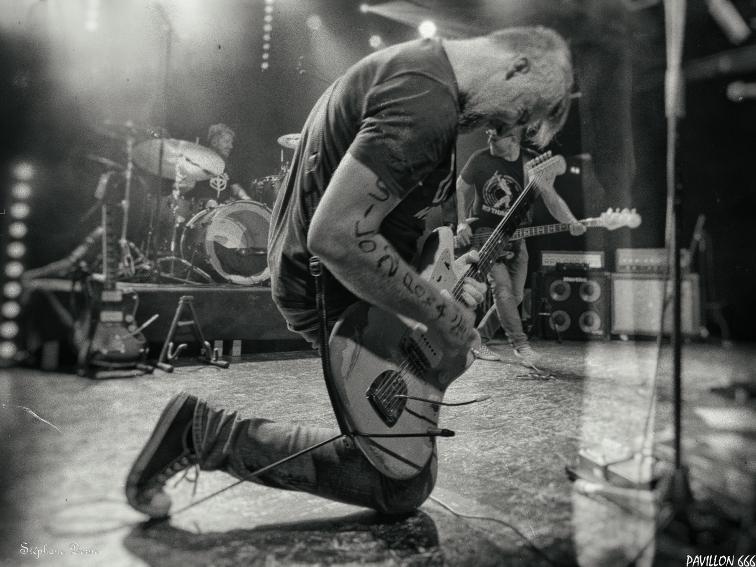Je tiens d’ailleurs à remercier l’accueil réservé par Manon et l’équipe du SILO, et les techniciens, MAEL au son et SEB aux éclairages. Toujours un plaisir de travailler avec eux. Le premier groupe à se présenter sur les planches est « TALKY WALKIE » formé par Céline et Sylvain. Le peu d’expérience sur scène de ce duo n’a en rien entaché leur prestation qui a d’ailleurs conquis le public. Un rock électro acoustique subtil où les voix se marient parfaitement, distillant des compositions variées, en rythme et en ambiance, soutenues par la basse de Céline et la guitare de Sylvain. Une très belle découverte, pour un duo talentueux qui mériteraient de pouvoir présenter plus souvent au public leurs compositions. Que dire de la prestation de « MUGSLUG » !!! Super comme d’habitude. Une énergie incroyable, menée par trois musiciens accomplis, maitrisant de bout en bout leur set. Le public Le public ne s’y trompe pas, et reprends en cœur des titres qui sont maintenant des standards pour ceux qui suivent ce trio. « Strike » et « i’m not » ou encore « new world order » font bouger les premiers rangs dans des pogos bon enfant. « UFO division » reste un temps fort du concert tant ce titre vous prend aux tripes. Impossible de ne pas bouger sur un tel morceau. Pas toujours facile de faire des photos nettes dans ces conditions. Cyril, le fantasque bassiste, est en forme olympique ! Fred au chant et à la guitare dégage une énergie communicative et Bastien aux fût est tout simplement monstrueux. Le public, chauffé à vif, réservera un accueil survolté à « SUMMER OF VIOLENCE », groupe normand de Stoner. Un set énervé, où les plus chauds auront la possibilité d’investir la scène pour pogoter. Sous un déluge de guitare acérée et une batterie sur vitaminé, le chanteur hurle sa rage et harangue le public entre chaque titre par un discours qui sent la colère et la révolte. Une soirée pleine de bonnes vibrations et ça fait un bien fou. A bientôt ! |