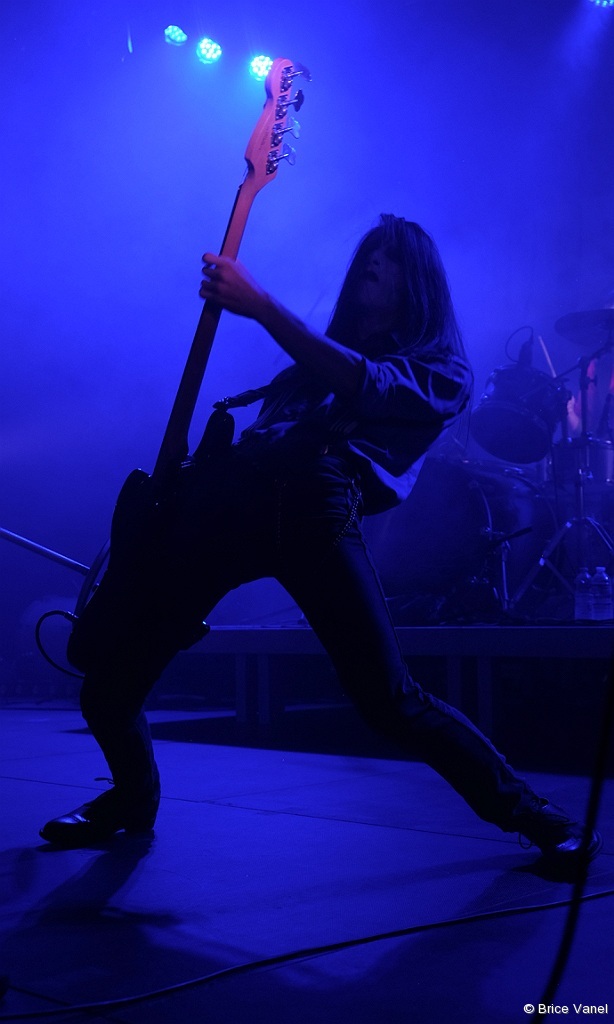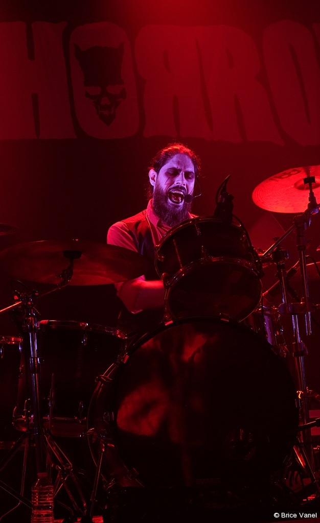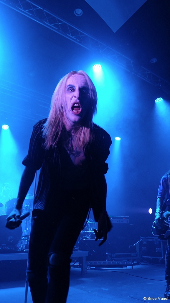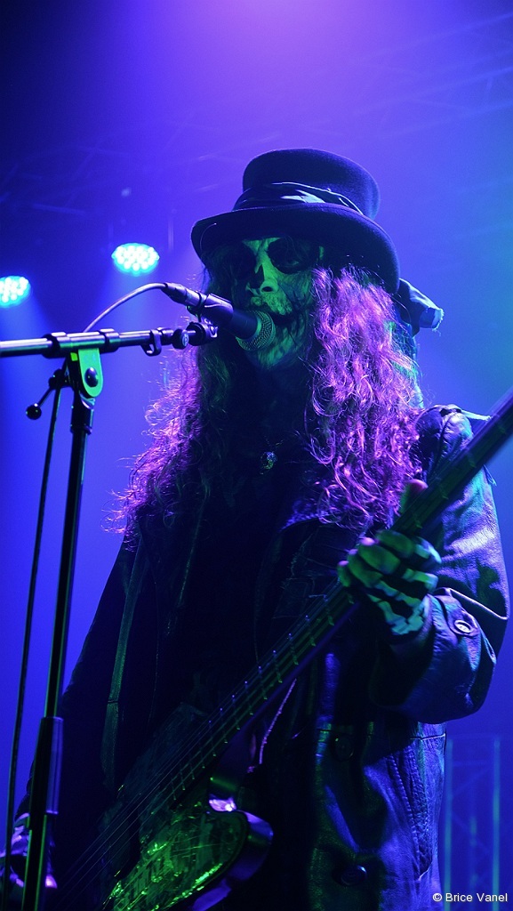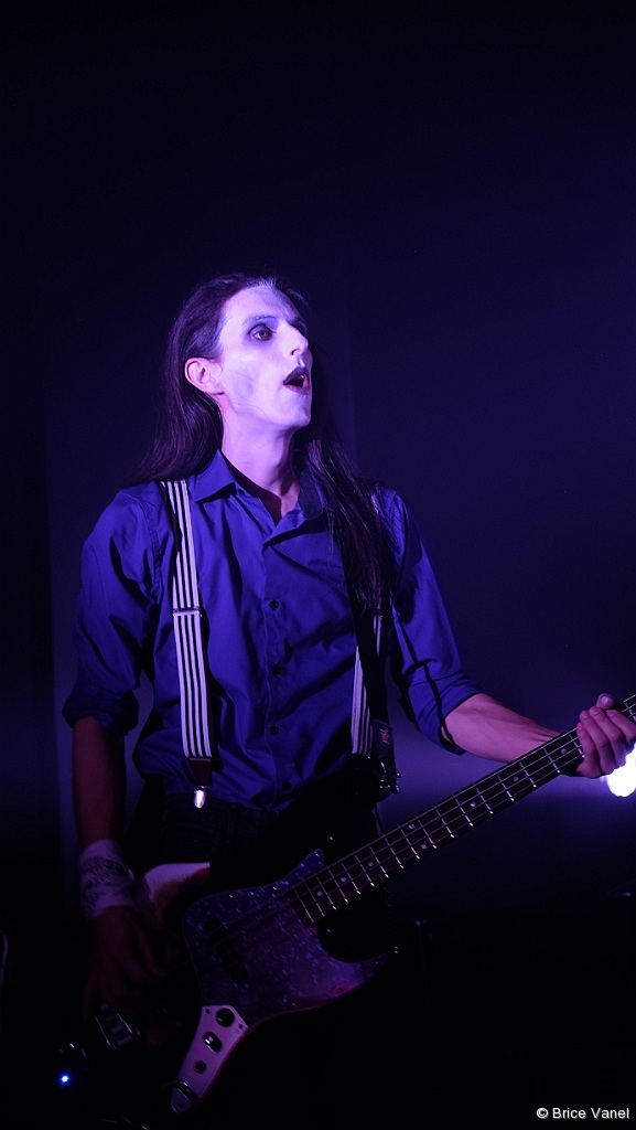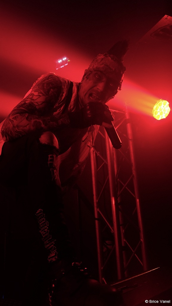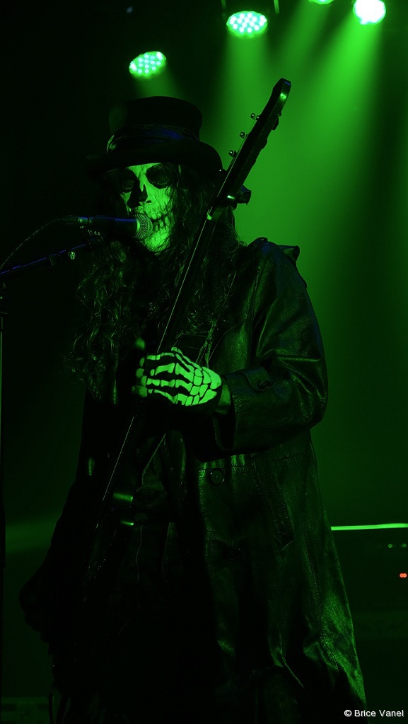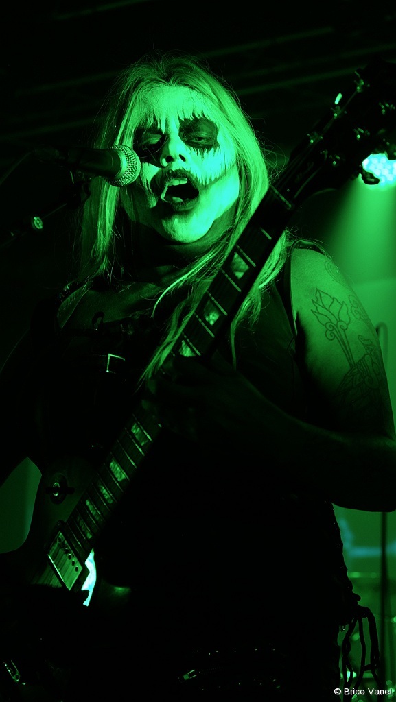 Après ce fût au tour des fous furieux italiens de Superhorror de retourner la Chapelle Argence avec leur horror punk rock métal énergique et destroy. Le frontman, maquillé, comme ses accolytes, apporte une énergie communicative sur scène. Une bonne claque ! Comment se fait-il qu’il n’aient pas joué en France depuis 10 ans !