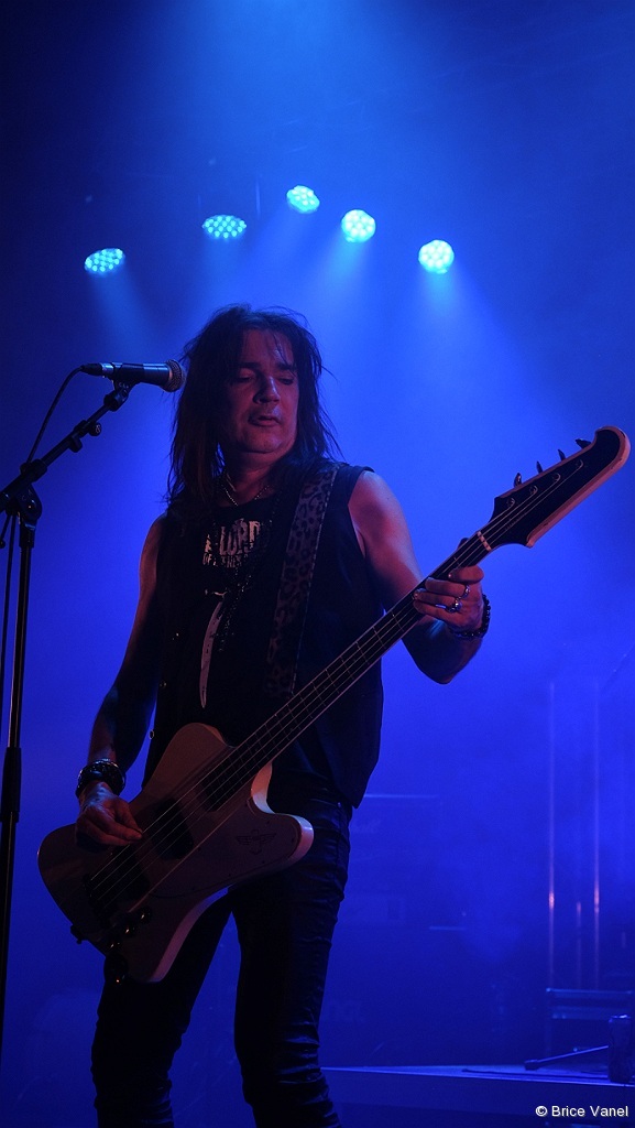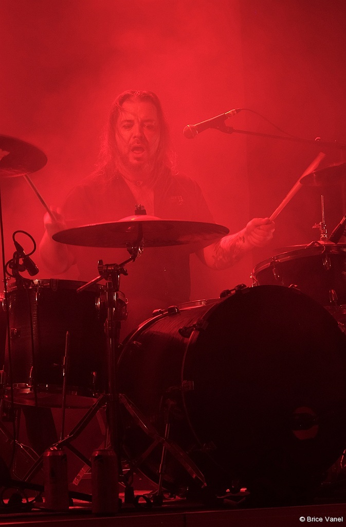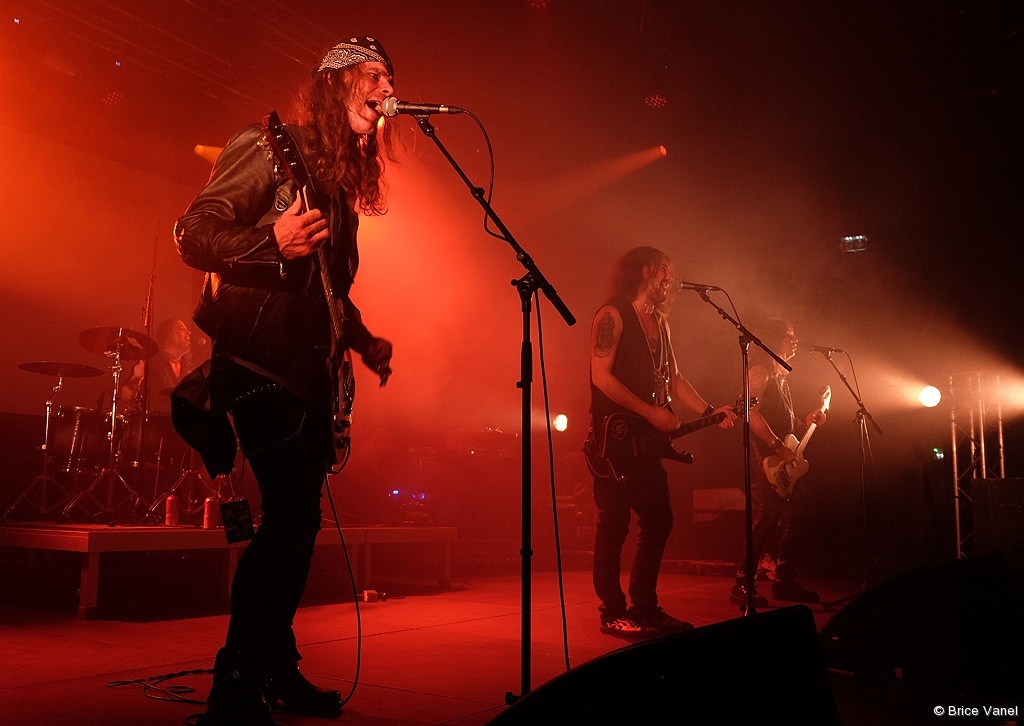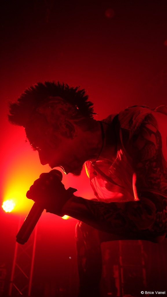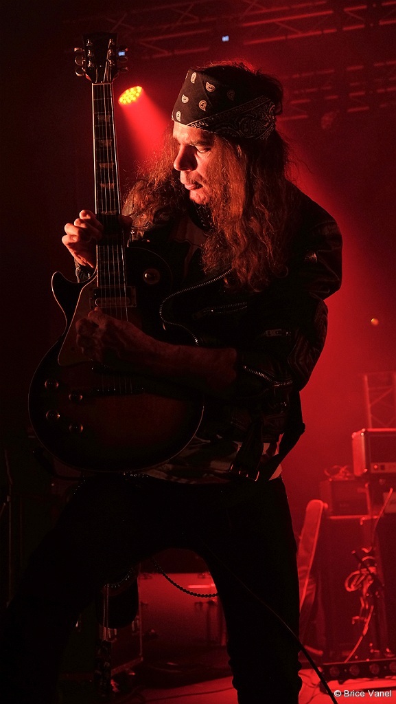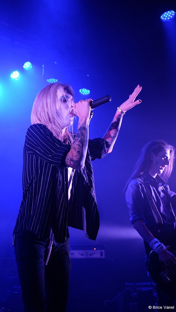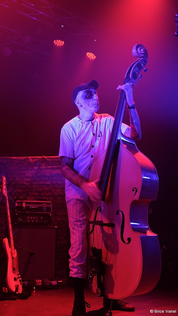 Après ce fût au tour des fous furieux italiens de Superhorror de retourner la Chapelle Argence avec leur horror punk rock métal énergique et destroy. Le frontman, maquillé, comme ses accolytes, apporte une énergie communicative sur scène. Une bonne claque ! Comment se fait-il qu’il n’aient pas joué en France depuis 10 ans !