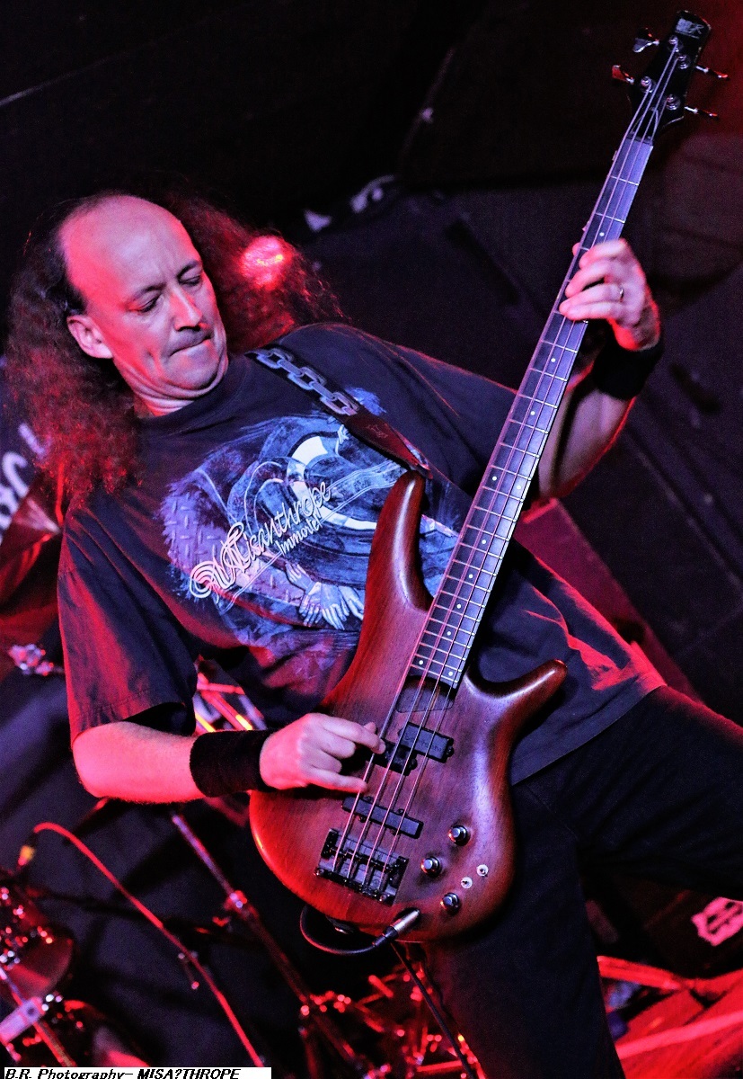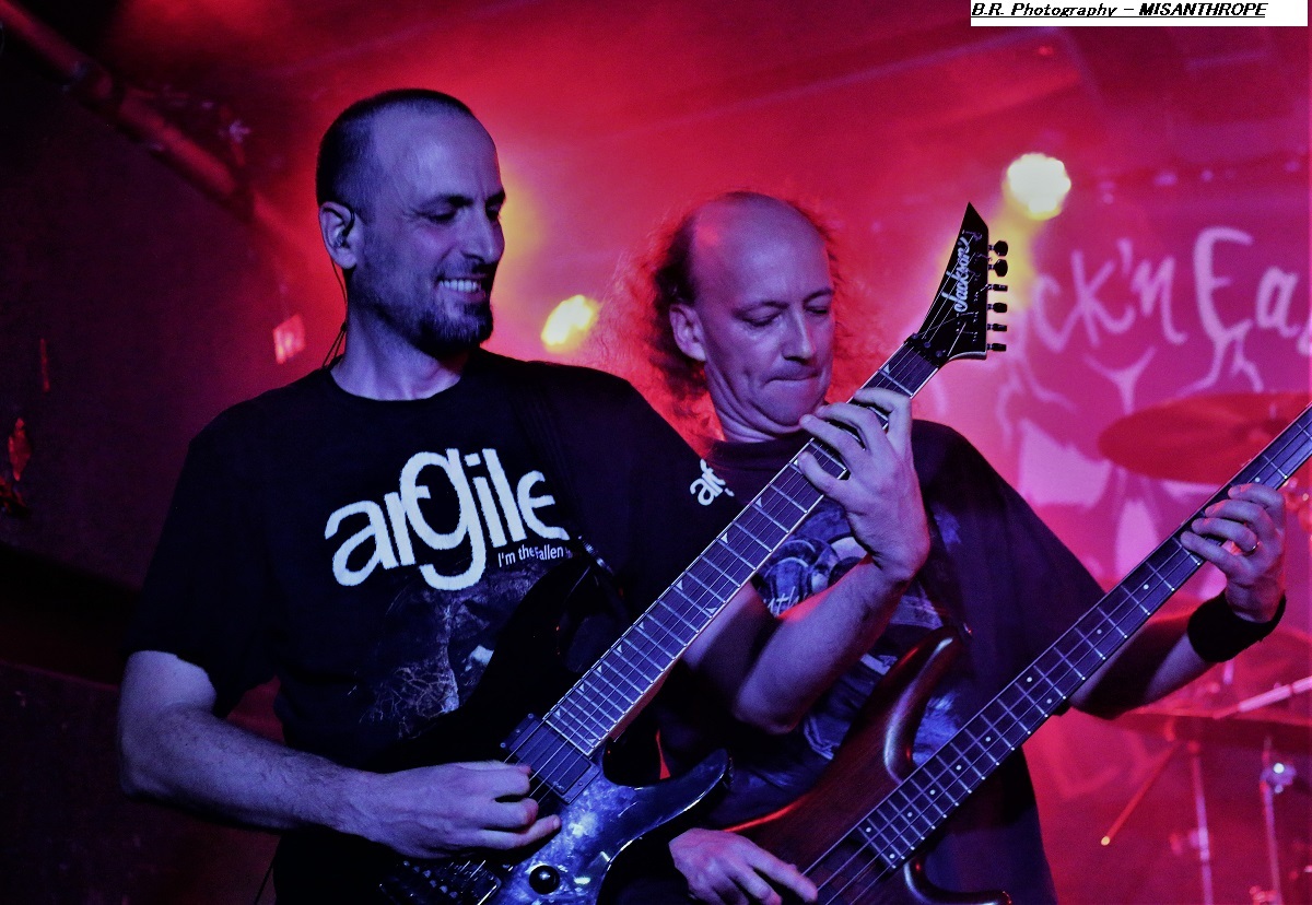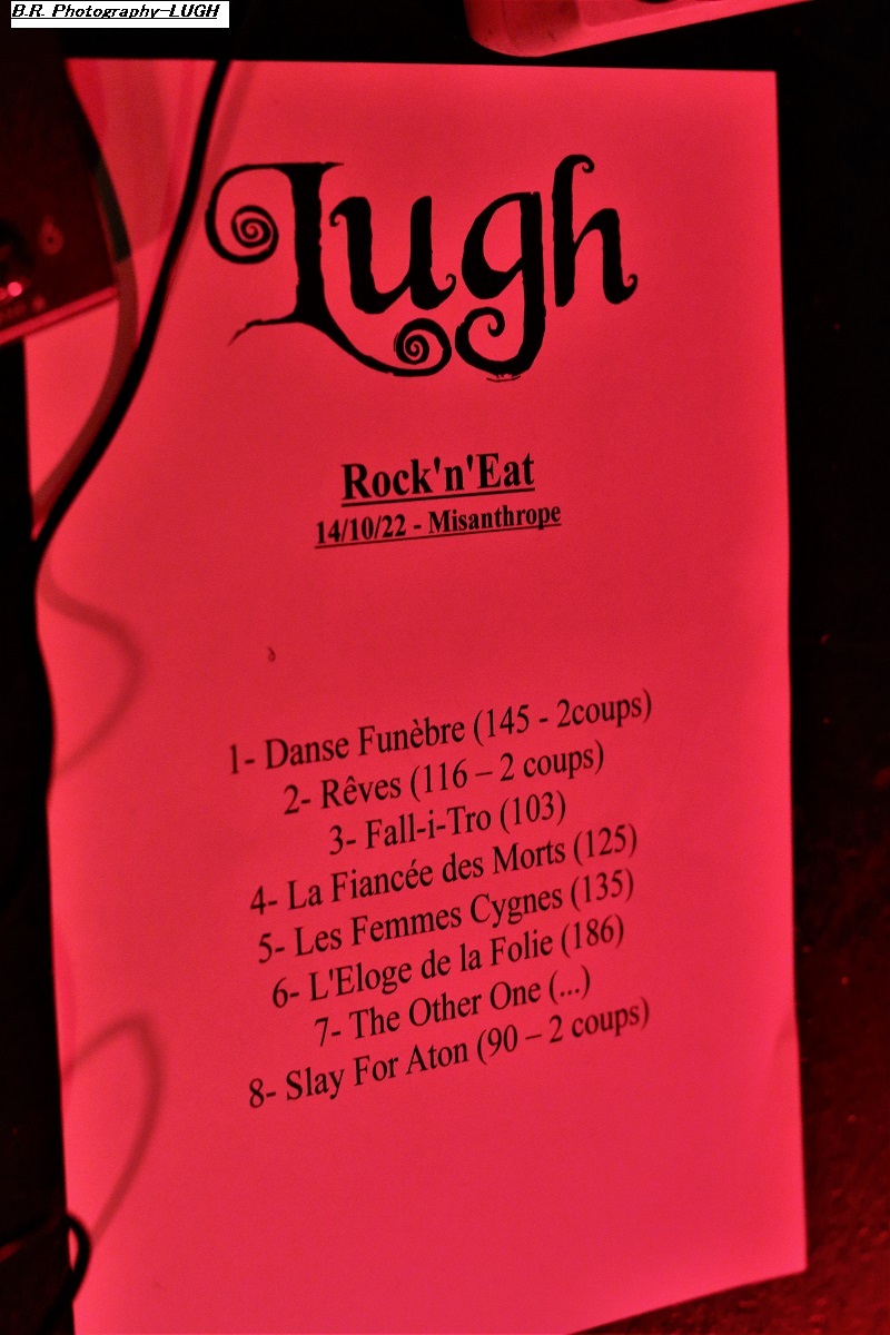 Et comment choisir une première partie pour ce concert ? Eh bien tout simplement en invitant les locaux de LUGH qu,i au travers de textes et contes théâtraux nous ont emmené dans le méandre d’une certaine folie douce bien inspirée. Du coup nous avons apprécié leur talent fait de bric et de broc mais surtout de rock, de prog et même de death-metal, dans des envolées musicales et parolières s’entrechoquant entre voix claires narratives et « growls » fracassants. Et parmi des titres issus de leur premier EP et de leur album « Les Loges de la Folie » on nous a offert deux nouveaux titres « Fall i Tro » et « Femmes Cygnes ». L’heure allouée était trop courte pour ces envois parfois « boulangers » ! Quel plaisir non dissimulé de retrouver MISANTHROPE là devant nous, vivant tous les titres de son fameux album « Misanthrope Immortel » paru il y a 20 ans et maintenant réédité ! Philippe Courtois n’a rien perdu de sa prestance scénique et d’une certaine gouaille, mais aussi de sa façon de vous interpeller à l’aide de certaines réalités qui nous ont en quelque sorte déstabilisées à un moment où à un autre. Bien sûr les musiciens sont fidèles à eux-mêmes depuis de très nombreuses années et semblent être des fervents de ces textes qui nous ont accrochés un moment où a un autre de « Les Empereurs du Néant » à « Tranchées 1914 » en passant par « les Lamentations du Diable ». L’ambiance est »souterraine » dans notre Rock n’Eat ce soir, les fidèles sont là reprenant, les paroles et se déchainant sur les rythmiques bien senties , nous ne voyons pas le temps passer ! Après le dernier titre de l’album phare de ce soir, les rappels nous rappellent et cela pourrait durer , dure, nous n’en serions pas fâchés, mais tout se termine avec « Bâtisseurs de Cathédrales » extrait de leur album « Visionnaire » de 1997, flash-back ! Merci à MISANTHROPE, à LUGH pour cette soirée hors du temps. Merci au Rock n’Eat bien entendu pour l’accueil ! |