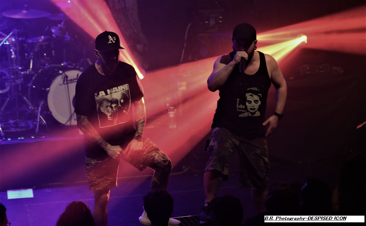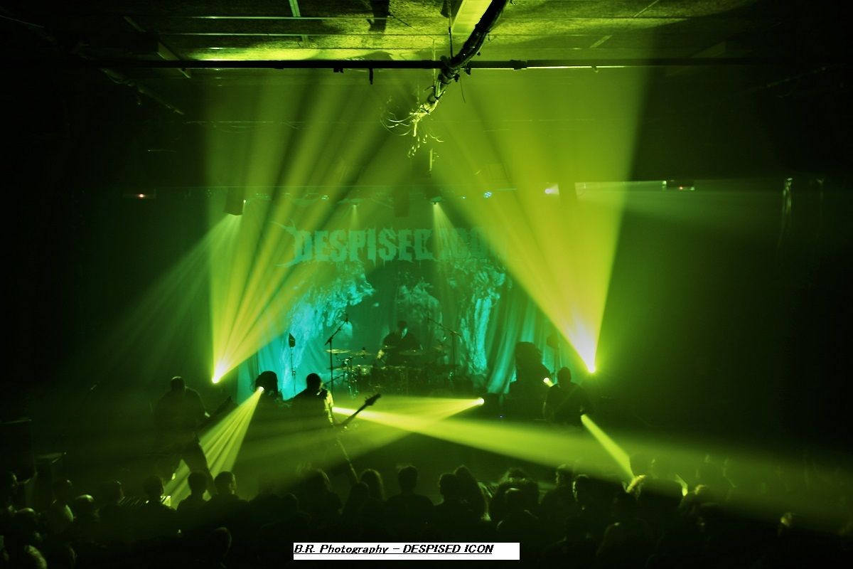 Ouverture des portes à 18 heures 30, premier groupe sur les planches, VISCERA qui nous vient de Grande-Bretagne, alors messieurs les Anglais tirez les premiers, ce qu’ils ont fait d’ailleurs. Formé en 2019, donc récemment, mais avec des membres d’autres formations du deathcore, VISCERA sort l’artillerie lourde ce soir mais le côté technique dispensé me laisse un peu sur ma faim, peut-mieux faire pour nous accrocher vraiment en somme ! Changement d’ambiance avec les Hollandais de DISTANT qui, d’entrée de jeu, nous font part d’une lourdeur écrasante qui se transformera ensuite en déchainement deathcore sans limite. Formé en 2014 le groupe à « de la bouteille » comme l’on dit communément dans ces cas-là. Le côté beatdown fait un malheur en live. Au final voici une prestation bien remarquée en ce qui me concerne, ah ces brisures rythmiques qui vous brisent la nuque, ça fait mal, mais c’est du tout bon ! Avec les « ricains » d’OCEANO, groupe formé à Chicago en 2006, le tempo se calme à l’aide d’instauration d’ambances océanique (sic) . De temps en temps la brutalité du deathcore refait surface mais n’arrive pas à me convaincre de leur démarche, certes recherchées, mais qui a du mal à sortir des sentiers battus du deathcore US. Du deathcore au brutal death technique, il n’y a qu’un pas que franchissent allègrement les vétérans Polonais de DECAPITATED (vus pour ma part il y a 16 ans dans ce lieu, ndlr). Le groupe formé en 1996 par Vogg, Vitek et Sauron (qui n’étaient que des gamins à l’époque) et s’appelaient Decpitated Saints avait failli splitter en 2007 suite à un accident de la route qui a couté la vie à Vitek et laissé handicapé Covan. Malgré cela Vogg décide de continuer l’aventure en 2009 et la suite, vous la connaissez, DECAPITATED en est aujourd’hui à son nouvel album de 2022 intitulé « Cancer Culture » qui « casse » la baraque chez les chroniqueurs. Et sur scène alors, qu’es -ce que cela donne ? Eh bien, c’est la claque assurée et vous allez en prendre plein la « g..le », nous en avons fait l’expérience ce soir à Lyon. Le groupe se renouvelle sans cesse et leur set a passé à une vitesse folle dans nos conduits auditifs et nous a aveuglé de lights bien sentis, amen ! Et puis, et puis, nous allons terminer avec l’autre tête d’affiche de la soirée, les Canadiens de DESPISED ICON, groupe formé à Montréal en 2002 et considéré comme l’un, sinon le pionnier du deathcore en mixant brutal death, hardcore avec un soupçon de grindcore. Le groupe sera « muet » de 20010 à 2014, mais depuis il est revenu en force et ce soir, là devant nous le « monstre » à deux têtes (deux chanteurs voyons) va nous coller littéralement contre les murs du CCO il n’y a pas photo, regardez le public se défoncer, de corcle-pits en circle-pits pratiquement non-stop ! Les Canadiens ne réinventent pas le deathcore mais il faut reconnaitre que leur brutalité et leur puissance de feu en live font la différence, merci les cousins du Canada, vous revenez quand vous voulez, on aime ! L’affiche était prometteuse et nous n’avons pas été déçus de ce voyage brutal et technique à la fois. Merci à Sound Like Hell Production pour cette invitation au voyage du Lundi soir. Merci aux 5 formations en lice et merci au public pour l’ambiance musclées instaurée dans ces lieux ! |