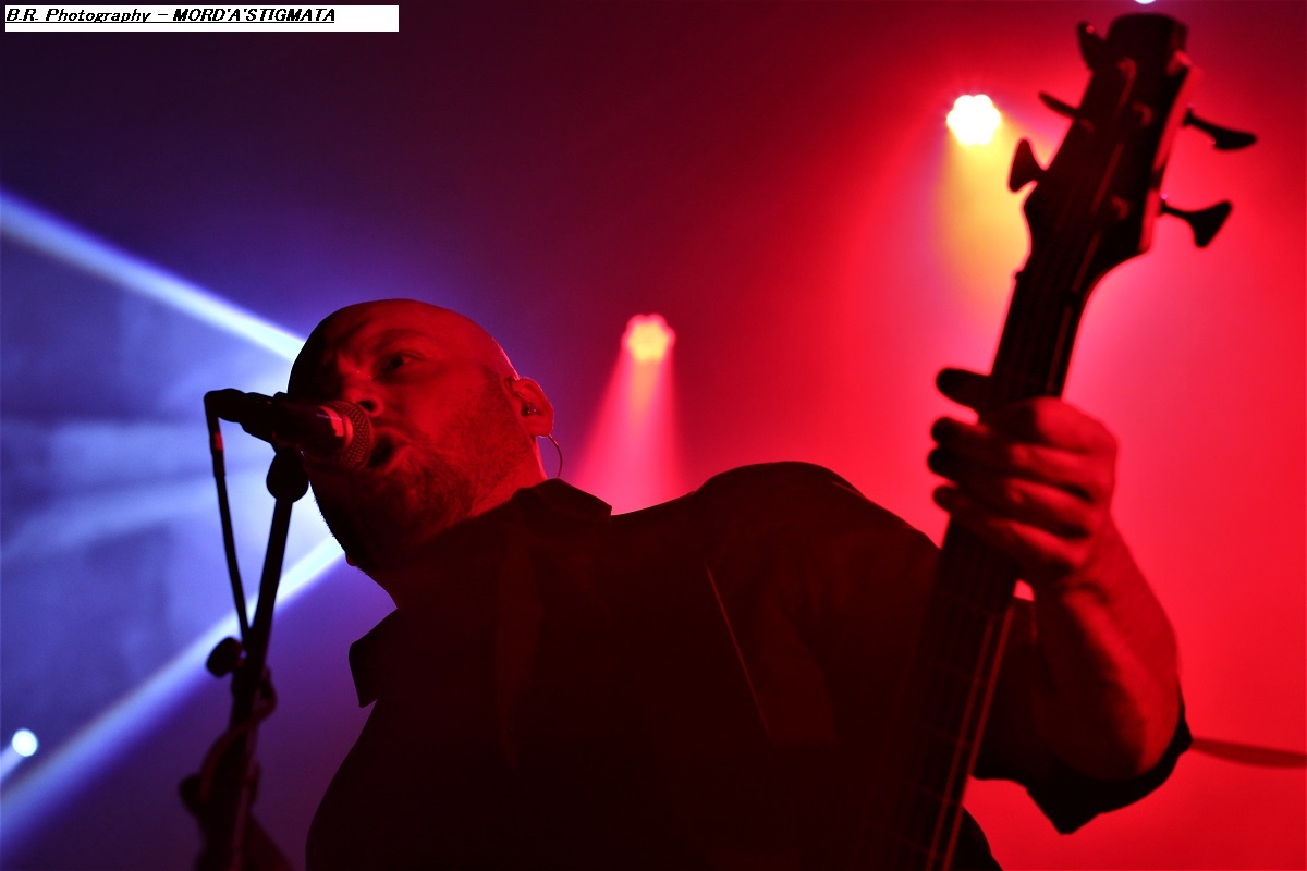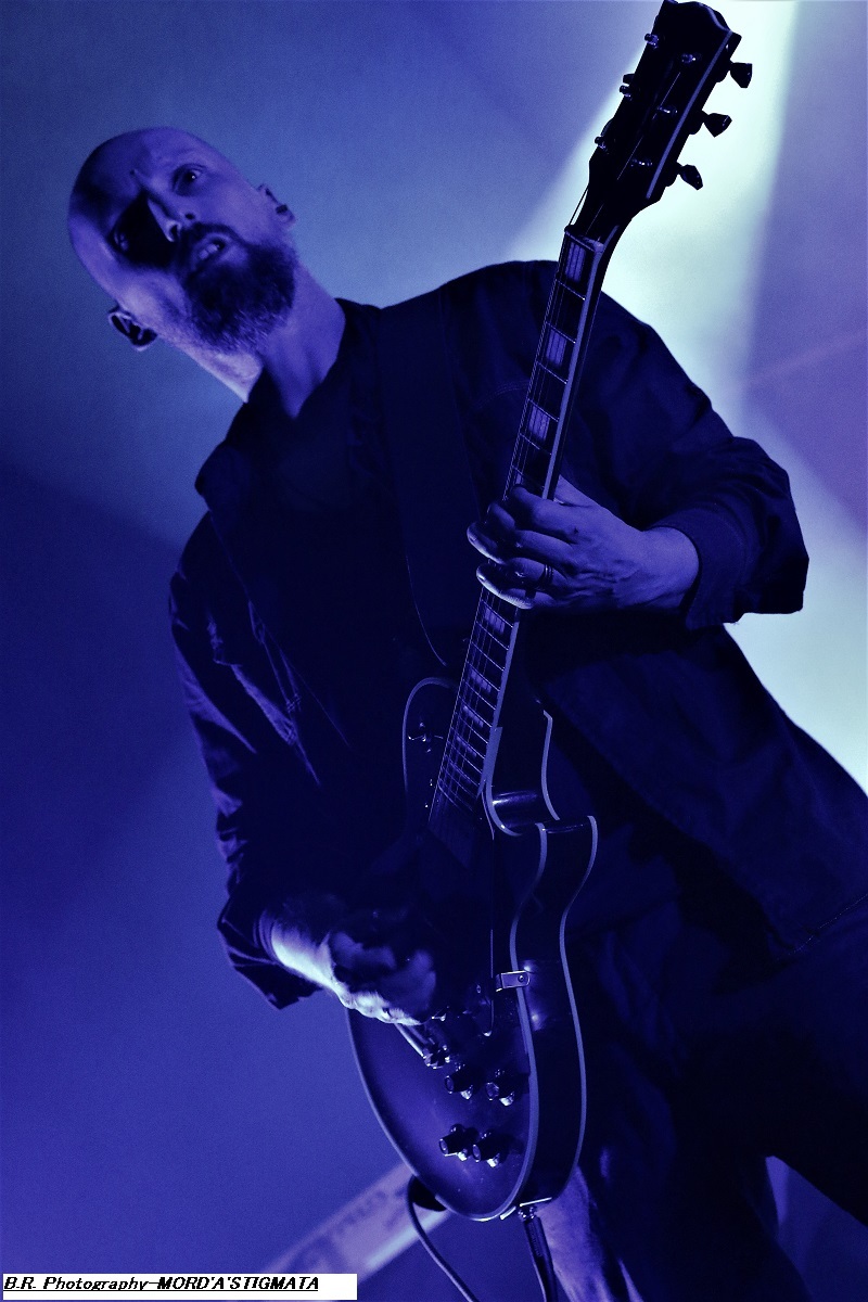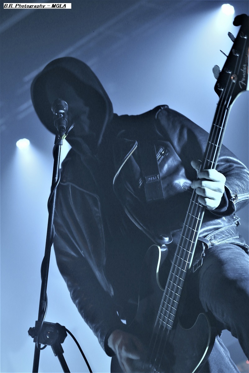Les Polonais de MORD’A’STIGMATA émergent du brouillard bleuté de la scène du Totem dès 19heures 20 exactement. Le quatuor n’est pas un nouveau venu de la scène dite « post-black-metal avec à son actif, depuis sa formation en 2004, de 6 albums dont le petit dernier « Like Ants and Snakes » qu’il nous présente dans cette tournée avec leurs compatriotes de MGLA donc. Alors, je le dis tout de suite, j’avais des attentes plutôt négatives concernant ce groupe. Mais ici ce soir, en live, j’ai été surpris par la première partie de leur prestation pour un black plutôt bien enlevé avec une pointe d’originalité. Mais la seconde partie du set fut pour moi un peu trop extravagante avec une guitare (sixtie ?) monocorde et ces voix théâtrales à la limite du goth. Bref, prestation en demi-teinte pour moi, mais reconnaissons-le ce quatuor est très aventureux avec des envolées osées. Avez-vous aimé ou pas ? Le trio Néo-Zélandais ULCERATE prend la suite et nous fait apprécier (ou pas ?) son death technique qu’il pratique depuis déjà 22 ans avec à la clé 6 albums, « Stare Into Death » étant paru quant à lui en 2020 chez Debemur Morti Productions. Alors, amateurs de death-technique régalez-vous avec ce magma sonore vicieux, malsain, acide, moribond qui vous glace le sang dans une ambiance noire et épaisse à couper au couteau. Pour les fans du groupe pas de problème les nouveaux titres ne changent rien (ou pas grand-chose) à leur ligne de conduite. Pour nous les autres qui découvrons, c’est un peu une entrée dans un brouillard lugubre vous givrant les neurones et bien entendu c’est un peu répétitif. Alors, choisissez votre camp, on aime ou on n’aime pas mais si vous vous référez à un certain Neurosis vous y trouverez peut-être votre compte. L’assistance nombreuse va maintenant se presser contre la scène et soudain sans préambule va s’éclater avec le premier titre des mythiques Polonais de MGLA qui n’y vont pas avec le dos de la cuiller pour lancer le débat. La set-liste bien étudiée (à mon avis) sera surtout composée de titres du nouvel opus « Age of Excuse » (2019) et des titres du précédent album « Exercises In Futility » qui avait défrayé la chronique à sa sortie en 2015. Depuis maintenant plus de 20 ans MGLA (brouillard en Polonais-sic) nous offre un black-metal sombre, froid, glacial même par endroits contrastant avec le look de chaleur que les musiciens supportent à l’aide perfecto en cuir et de masques. Mais le groupe n’utilise pas ce look pour se faire connaitre en fait car leur musique, assez « mid-tempo » reconnaissons-le, sort des sentiers battus et a inspiré bon nombre de formations de par la qualité des compositions et de leur interprétation avec par exemple une certaine mélancolie sous-jacente. Sur scène, des musiciens relativement statiques peut-être mais pour des envols recherchés, et cette batterie provocante et inventive ! Bref, ce soir MGLA nous a emmené dans un autre monde, un endroit hors du temps et de de l’espace tout simplement, on aime ! Merci aux trois formations venues nous offrir du rêve (ou du cauchemar), merci à SLH Productions pour nous avoir offert ce concert tant attendu et merci naturellement au Totem pour l’accueil. |
