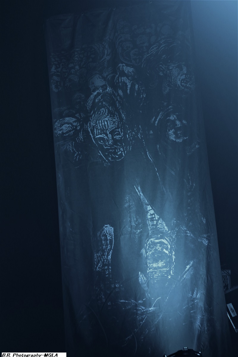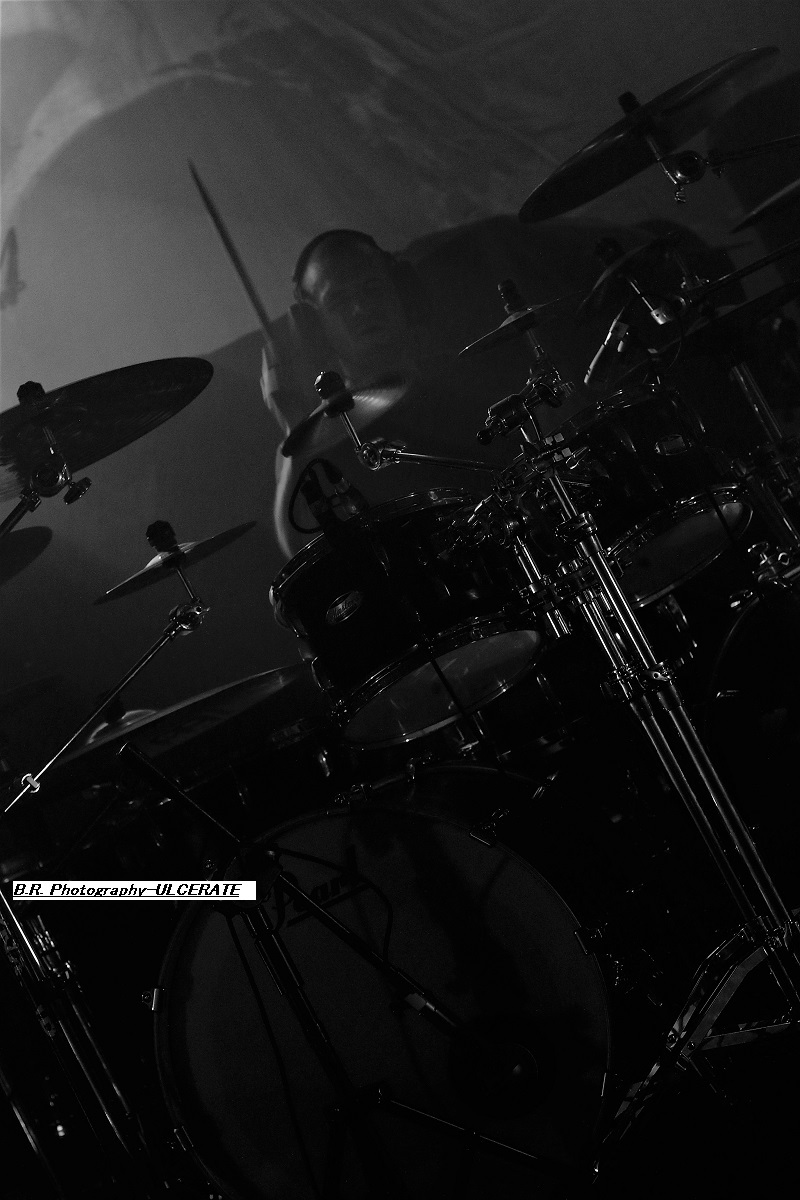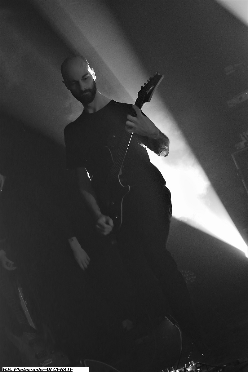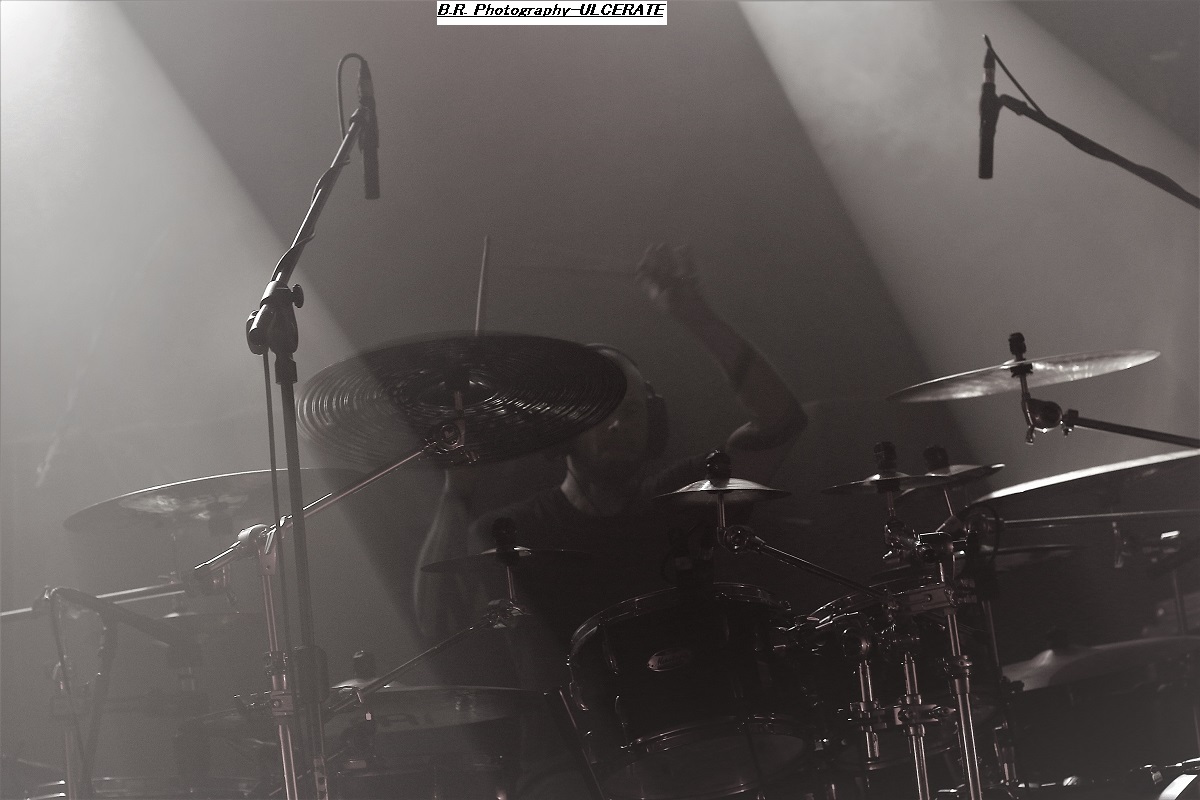 Les Polonais de MORD’A’STIGMATA émergent du brouillard bleuté de la scène du Totem dès 19heures 20 exactement. Le quatuor n’est pas un nouveau venu de la scène dite « post-black-metal avec à son actif, depuis sa formation en 2004, de 6 albums dont le petit dernier « Like Ants and Snakes » qu’il nous présente dans cette tournée avec leurs compatriotes de MGLA donc. Alors, je le dis tout de suite, j’avais des attentes plutôt négatives concernant ce groupe. Mais ici ce soir, en live, j’ai été surpris par la première partie de leur prestation pour un black plutôt bien enlevé avec une pointe d’originalité. Mais la seconde partie du set fut pour moi un peu trop extravagante avec une guitare (sixtie ?) monocorde et ces voix théâtrales à la limite du goth. Bref, prestation en demi-teinte pour moi, mais reconnaissons-le ce quatuor est très aventureux avec des envolées osées. Avez-vous aimé ou pas ? Le trio Néo-Zélandais ULCERATE prend la suite et nous fait apprécier (ou pas ?) son death technique qu’il pratique depuis déjà 22 ans avec à la clé 6 albums, « Stare Into Death » étant paru quant à lui en 2020 chez Debemur Morti Productions. Alors, amateurs de death-technique régalez-vous avec ce magma sonore vicieux, malsain, acide, moribond qui vous glace le sang dans une ambiance noire et épaisse à couper au couteau. Pour les fans du groupe pas de problème les nouveaux titres ne changent rien (ou pas grand-chose) à leur ligne de conduite. Pour nous les autres qui découvrons, c’est un peu une entrée dans un brouillard lugubre vous givrant les neurones et bien entendu c’est un peu répétitif. Alors, choisissez votre camp, on aime ou on n’aime pas mais si vous vous référez à un certain Neurosis vous y trouverez peut-être votre compte. L’assistance nombreuse va maintenant se presser contre la scène et soudain sans préambule va s’éclater avec le premier titre des mythiques Polonais de MGLA qui n’y vont pas avec le dos de la cuiller pour lancer le débat. La set-liste bien étudiée (à mon avis) sera surtout composée de titres du nouvel opus « Age of Excuse » (2019) et des titres du précédent album « Exercises In Futility » qui avait défrayé la chronique à sa sortie en 2015. Depuis maintenant plus de 20 ans MGLA (brouillard en Polonais-sic) nous offre un black-metal sombre, froid, glacial même par endroits contrastant avec le look de chaleur que les musiciens supportent à l’aide perfecto en cuir et de masques. Mais le groupe n’utilise pas ce look pour se faire connaitre en fait car leur musique, assez « mid-tempo » reconnaissons-le, sort des sentiers battus et a inspiré bon nombre de formations de par la qualité des compositions et de leur interprétation avec par exemple une certaine mélancolie sous-jacente. Sur scène, des musiciens relativement statiques peut-être mais pour des envols recherchés, et cette batterie provocante et inventive ! Bref, ce soir MGLA nous a emmené dans un autre monde, un endroit hors du temps et de de l’espace tout simplement, on aime ! Merci aux trois formations venues nous offrir du rêve (ou du cauchemar), merci à SLH Productions pour nous avoir offert ce concert tant attendu et merci naturellement au Totem pour l’accueil. |