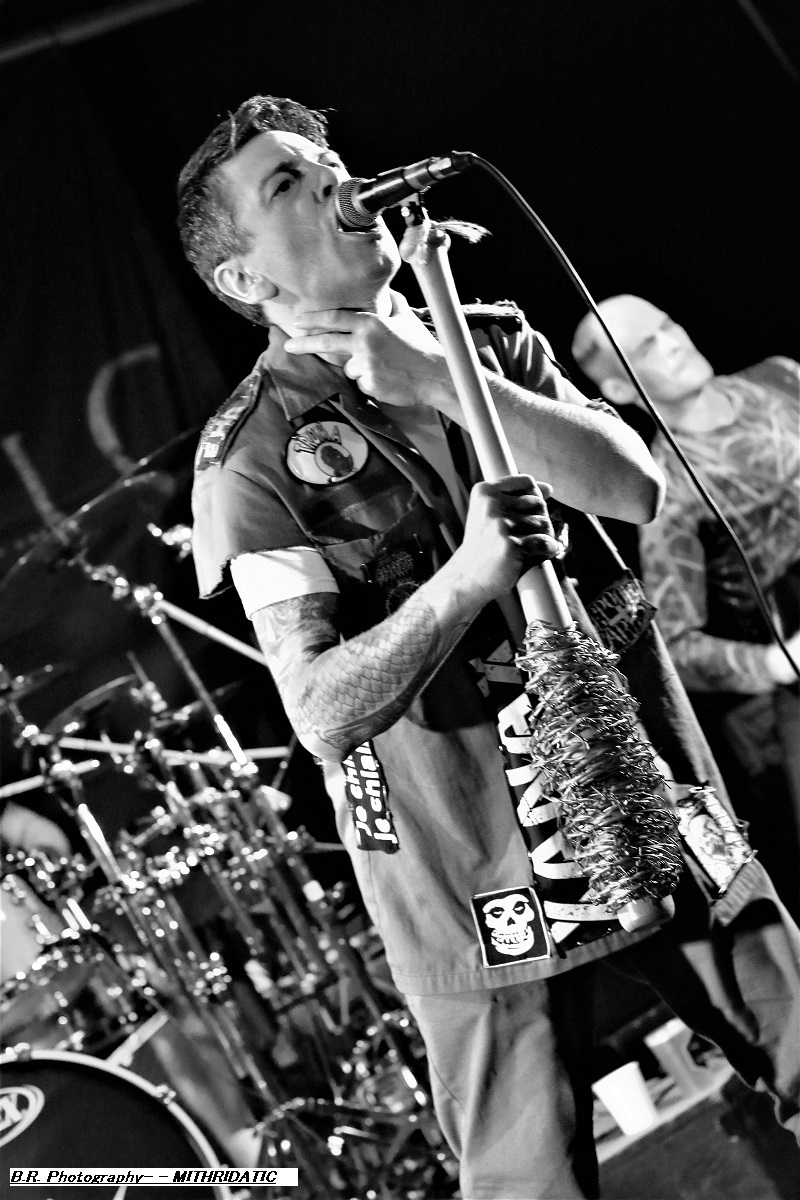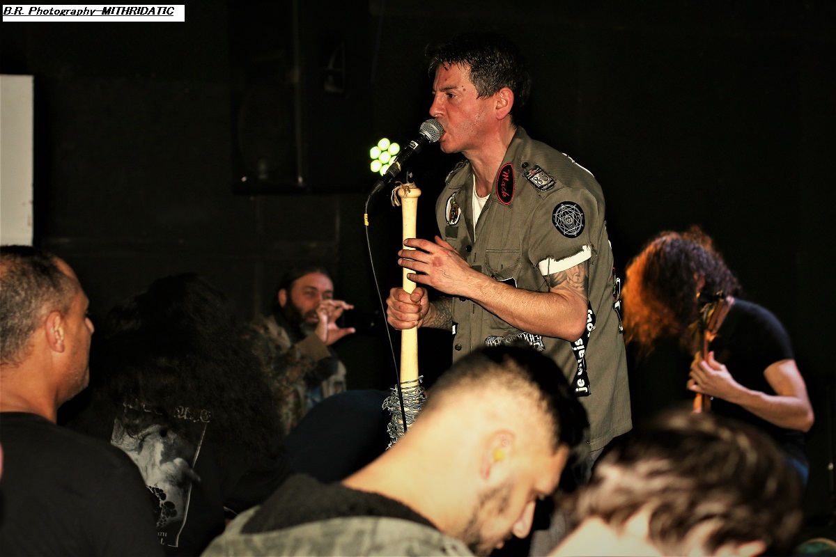 SIN OF WRATH ne bénéficiera pas d’un super son ni d’un public pas encore arrivé. Et pourtant le quatuor en veut et joue à l’énergie à l’aide d’un répertoire qui ne fait pas dans la dentelle, alors on aime et on les soutient ! STRIVERS joue encore en trio, un bassiste étant toujours à venir par la suite. Mais qu’à cela ne tienne, la formation fait le job, frontman déchaîné, guitariste aux soli vicieux et batteurs inventif, ça ne se discute pas. STRIVERS a encore de beaux jours (belles nuits ?) devant lui, leur heavy-core-death pousse le bouchon bien loin dans le metal extrême, on aime aussi ! Et puis, et puis, MITHRIDATIC va nous inoculer à grosses doses son poison malsain fait de black, de death, mais aussi de sludge crasseux comme on en retrouve dans les marécages de Louisiane. MITHRIDATIC en live ça ne se rate pas avec son frontman torturé ses guitaristes aux registres angoissants, son bassiste soutenant l’édifice de mort imminente et son batteur locomotive qui malmène ses futs dans une incroyable pulsion destructrice de neurones. Bref, MITHRIDATIC c’est sale, tordu, écrasant parfois, rapide aussi dans le « core ». Alors, après écoute de « Misérable Miracle » (2016) et « Tétanos Mystique » et surtout un « live » comme ce soir dans cette ambiance glauque et sombre, vous serez admis quelque part entre la vie et la mort, aargh ! Bien content de cette soirée dans un Warmaudio chaleureux et accueillant. Merci aux trois entités extrêmes ayant foulé la scène et merci au public ayant apprécié, je suis sûr ce concert du Vendredi soir. |