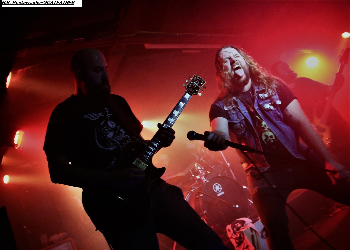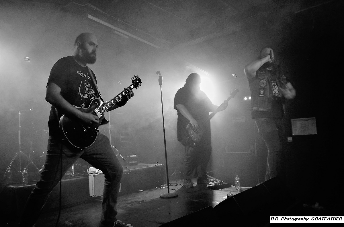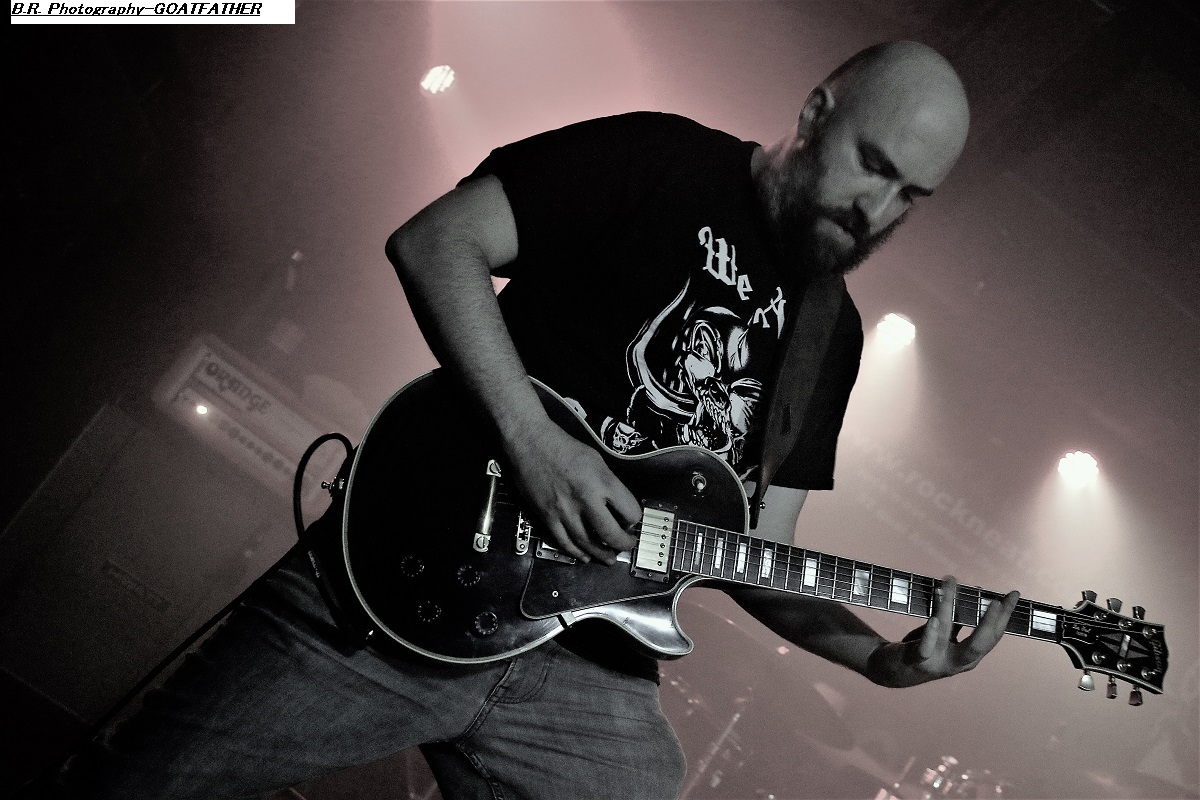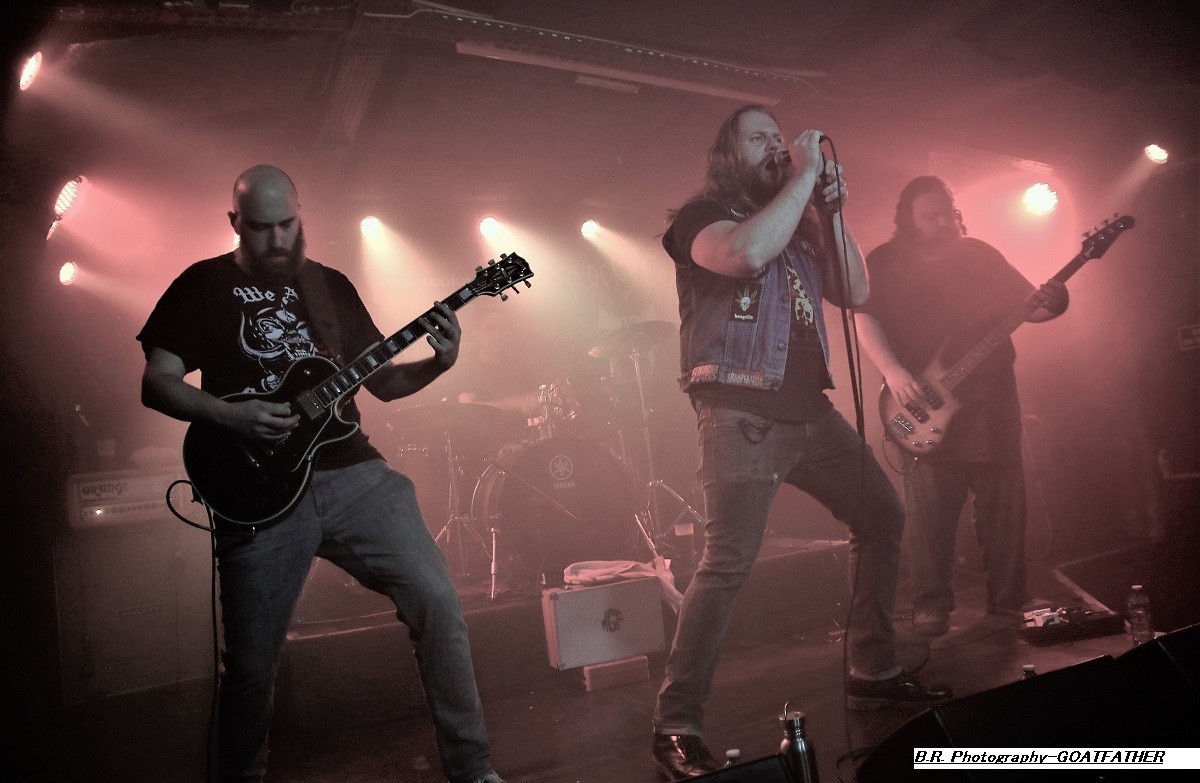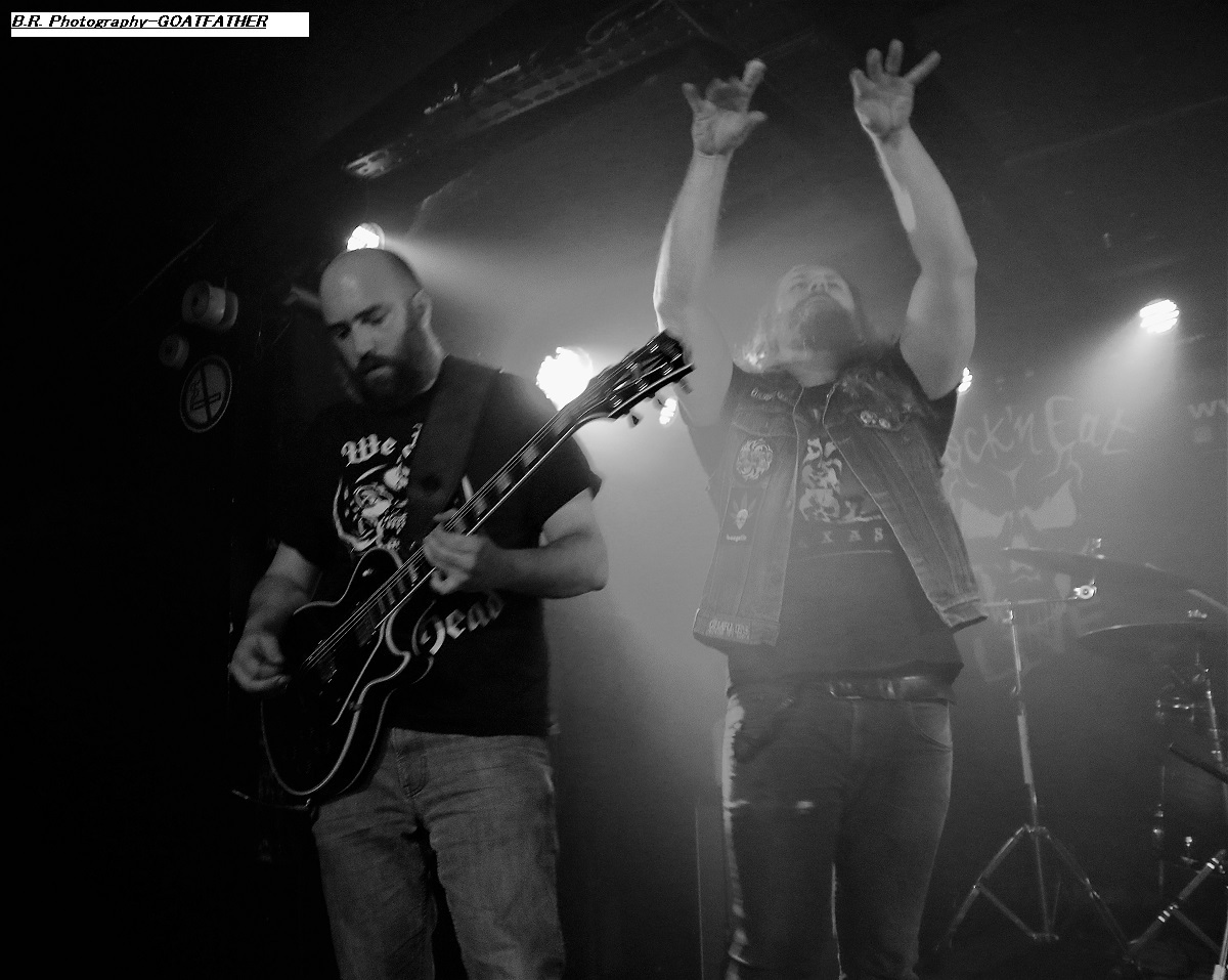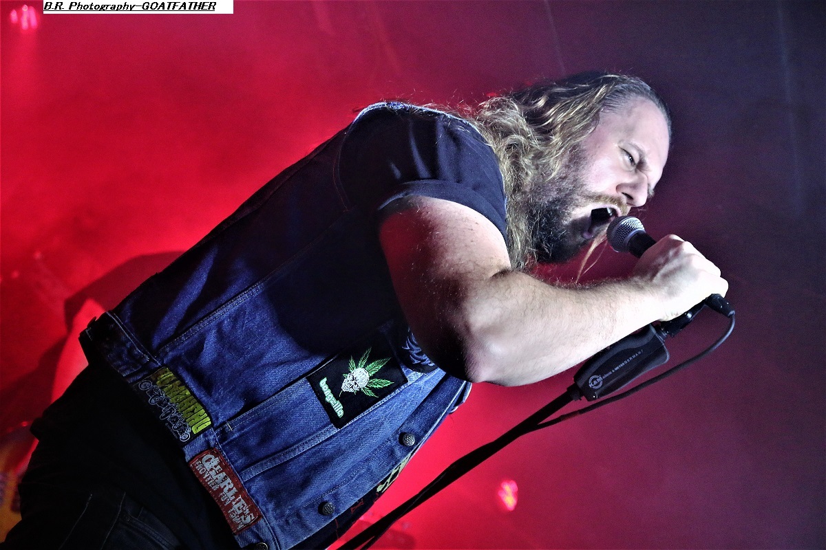 Avec un peu de retard à l’allumage dû à un ampli basse à remplacer vite fait, c’est à 21 heures que STONEFORGE envoie le son. Un son lourd, crasseux, dans une ambiance « enfumée » où la gratte miaule à l’envi et la basse fait trembler les voutes du club lyonnais. Alors, « ça plane pour moi », beaucoup de parties instrumentales et un chant « rauquisant » venant soutenir leur blues. Le Black Sab n’est pas loin, Orange Goblin non plus. Alors si vous avez aimé leur set n’oubliez pas en rentrant chez vous de mettre sur votre platine leur album « Ash Major » vous m’en direz des nouvelles ! Et puis, c’est au tour de GOATFATHER de nous faire vibrer les neurones à l’aide d’un désert rock musclé, souvent psyché, métallisé par endroits mais qui vous prend aux tripes. Ce soir le quatuor nous offre bien sûr des compositions de leur dernier album intitulé « Monster Truck » comme par exemple « Shelter », « Convoy » ou encore « In Your Face » qui débute le show très chaud d’emblée. Nous aurons droit aussi à des « « vieilleries » comme ils disent avec bien entendu « Hipster Fister ». Le frontman en fait des tonnes (qui a dit comme d’habitude ?), le guitariste tricote des parties acides rien que pour vous, le bassiste soutien l’édifice et le batteur démolit ses futs, avec doigté SVP ! Que voulez-vous de plus ? Rien ma foi nous avons dégusté dans tous les sens du terme que diable et leur « truck » n’a pas dérapé sur la route 66, on aime ! Merci les gars, excellente prestation des deux formations en lice qui m’ont fait entrer de plain-pied dans cette nouvelle année 2023 qui s’annonce énorme niveau concerts programmés. Et bien entendu merci à notre Rock n’Eat des gones pour l’accueil ! |