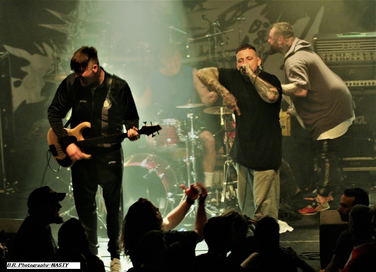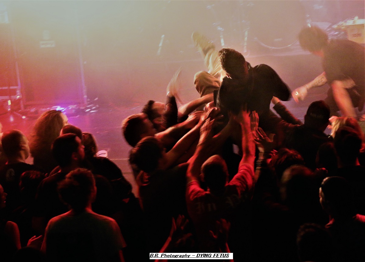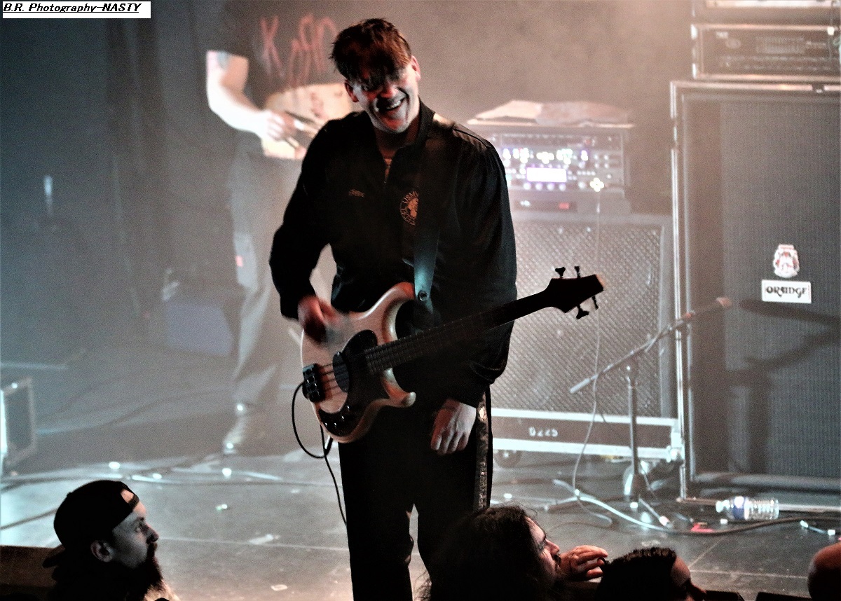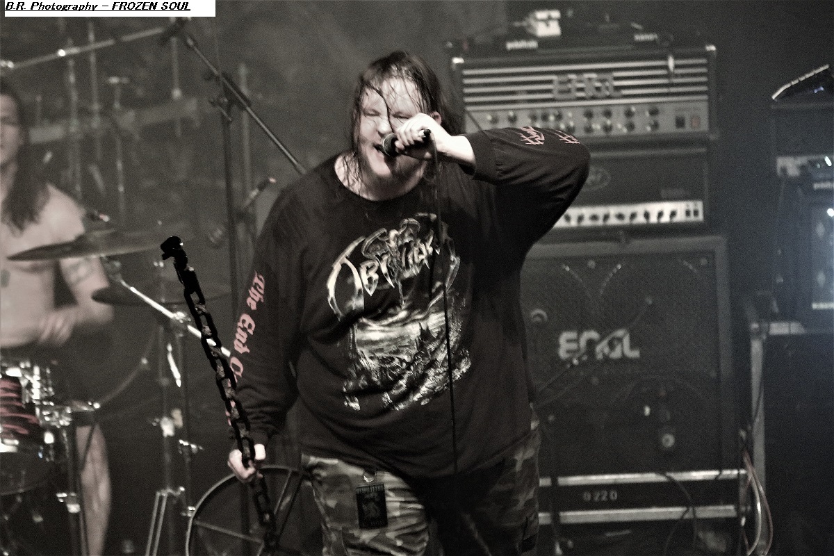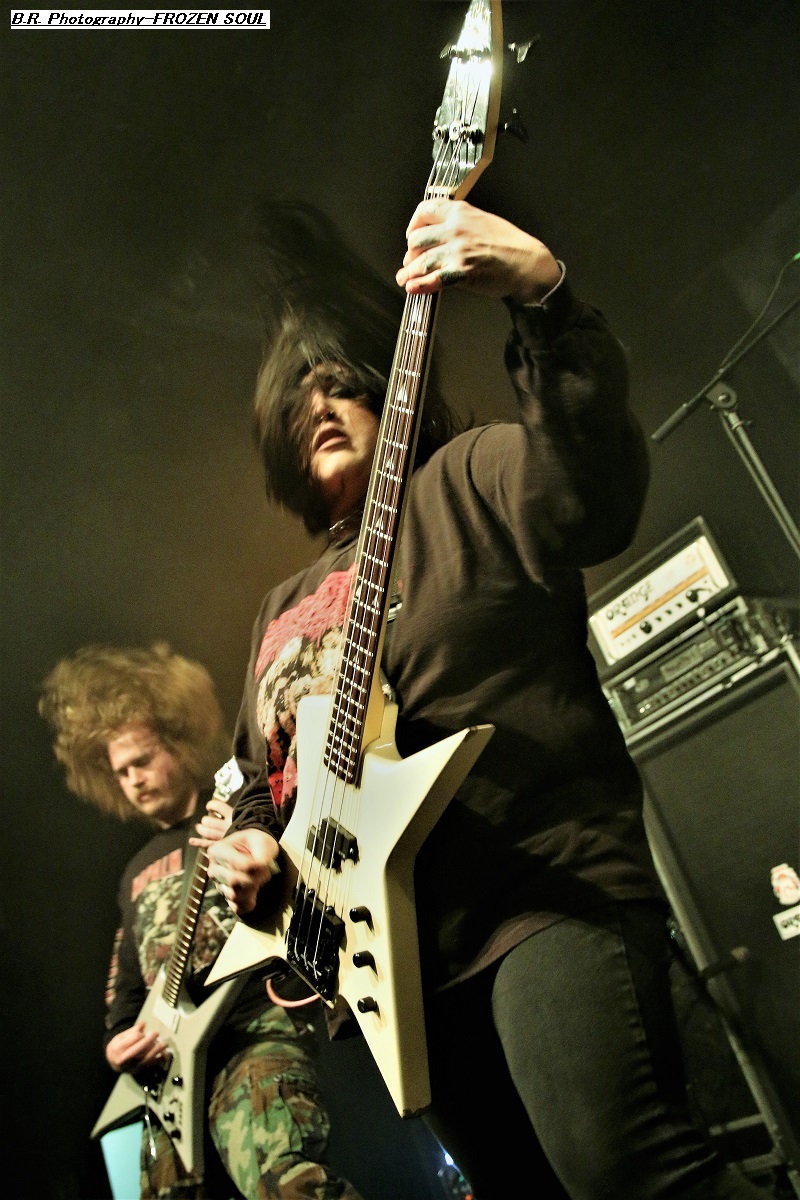 CCO de Lyon-Villeurbanne à l'appel de Sounds Like Hell Productions. SLH donc qui nous a proposé une affiche imparable avec la venue de DYING FETUS (USA) et de NASTY (Belgique) accompagnés par CABAL du Danemark et des « ricains » de FROZEN SOUL. FROZEN SOUL qui nous interpelle dès 19 heures 20 devant un public déjà en nombre et prêt à en découdre car dès les premiers titres ça commence à brasser de partout dans la salle. C'est normal, car ces musiciens ne sont pas venus ici ce soir pour nous susurrer de douces berceuses, mais pour nous coller contre les murs du CCO à l'aide de death-metal, certes old-school, mais groovy à mort. Ce groupe formé en 2018 par de vieux « renards » du death a sorti un premier album « Crypt Of Ice » en 2021. Et en live le groupe ne nous fait pas de cadeau à l'aide d'un metal-de-la-mort-qui-tue à l’ancienne mais qui nous détruit les neurones. Le public l'a vite comprit et apprécie. Bon début de soirée donc avant de passer à quelque-chose de plus « core ». C'est au tour maintenant de CABAL qui va se lacer à « core » perdu dans un deathcore assez brutal. Formé en 2015 cette entité défend en live son 3ème album « Magno Interitus », et le défend bien ce soir . Ces Danois s'aventurent parfois sur un terrain un peu plus « noisy/indus », mais reste agressif dans l'ensemble dans la lignée par exemple d'un Lorna Shore, et ça passe très bien en live comme ce soir à Lyon, intéressant à plus d'un titre donc ! Du deathcore au hardcore il n'y a qu'un pas que franchissent allègrement les Belges de NASTY qui ont ce soir la « frite » (sic), même après presque 20 années de bons et loyaux services avec un penchant marqué pour le beat down. Alors, c'est la valse des gros riffs lourds pimentés par des accélérations attendues. Classique dans le style me direz-vous, mais d'une efficacité redoutable surtout sur les planches comme ce soir dans un CCO plein comme un oeuf avec un public vraiment motivé et chaud comme la braise. Pour aller plus loin, mettez-vous dans les conduits auditifs leur album « Menace » de 2020 où le groupe cherche a se sortir du carcan beatdown en innovant quelque peu ! Retour au death avec DYING FETUS, oui mais pas n'importe quel death, un death technique certes mais dopé au grindcore, un death qui vous remue les tripes non stop et qui vous rend quelque fois un peu épileptique voyez-vous. Vous ne voyez pas, at bien ce soir le trio légendaire du Maryland créé en 1991 nous a lancé ses « growls » à la figure sur une rythmique d'enfer avec des « tricotages » guitaristiques malsain qui nous ont raclé la cervelle. Le groupe tient toujours le « haut du pavé » dans le style, si style il y a, c'est Dominic une légende de l’extrême, du brutal, du glauque, du putride, du, metal d'abattoir quoi ! Et figure-vous que l'on a aimé cette petite heure d'effusion métallique car Dying Fetus nous manquais, et il est revenu pour nous rappeler à son bon souvenir et ce fus grand. Nous attendons maintenant leur nouvel album dont un avant-goût nous a été donné avec leur single « Compulsion for Cruelty ». Set-list : intro d'entrée en scène « The Boys are back in Town » (Thin Lizzy ). Justifiable Homicide, Subjected to a Beating, Fixated on Devastation, One Shot, one Kill, Unbridled Fury, Grotesque Impalement, Compulsion for Cruelty, From Womb to Waste, In the Trenches, Your Treachery Will die with You, Wrong one tu Fuck With, Kill Your Mother, Rape Your Dog. Il ne me reste qu'à remercier Sound Like Hell Productions pour nous avoir proposé une affiche de ce genre. Merci aux groupes qui se sont succédé sur scène et merci au public pour l'ambiance des grands soirs. |
