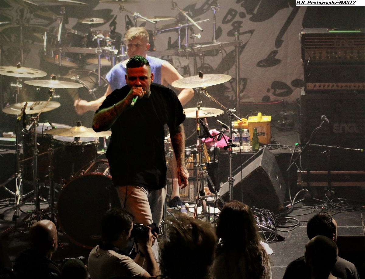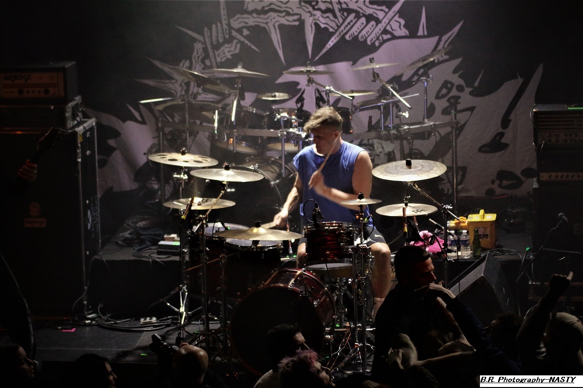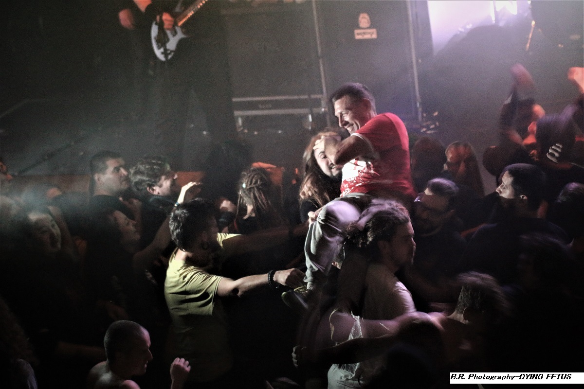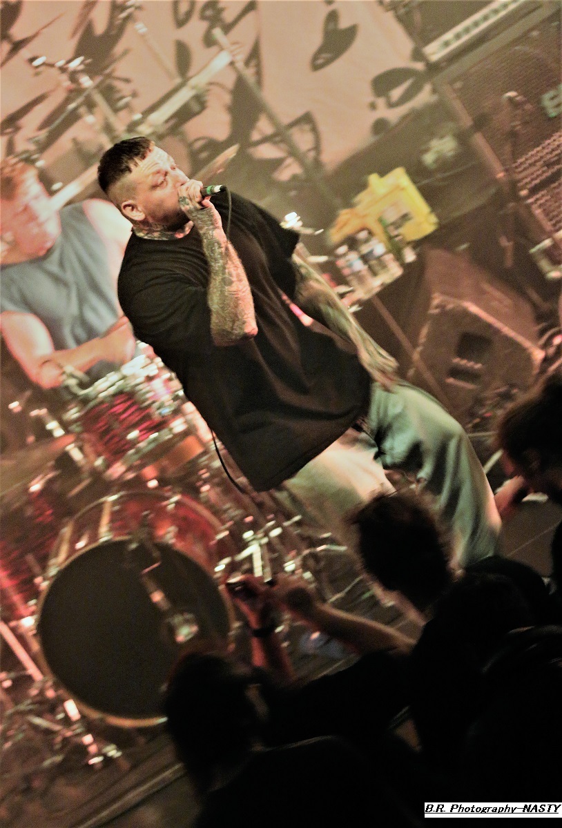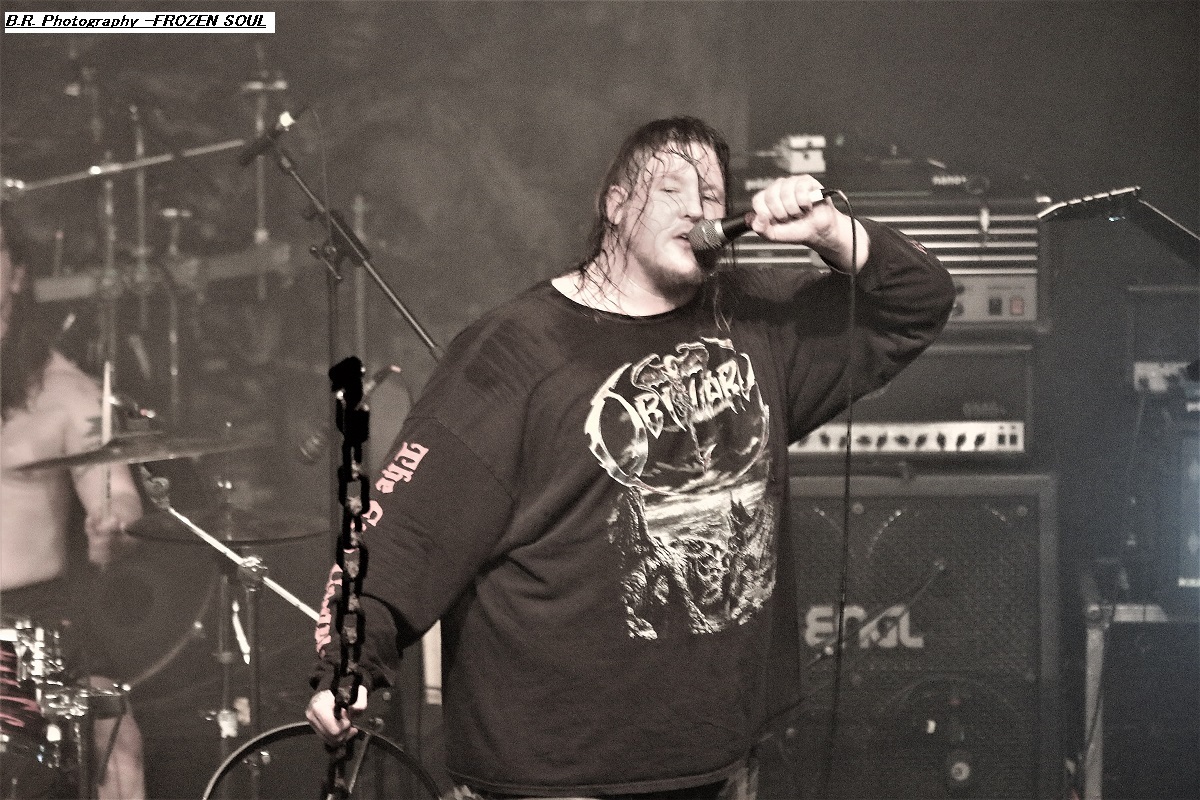 CCO de Lyon-Villeurbanne à l'appel de Sounds Like Hell Productions. SLH donc qui nous a proposé une affiche imparable avec la venue de DYING FETUS (USA) et de NASTY (Belgique) accompagnés par CABAL du Danemark et des « ricains » de FROZEN SOUL. FROZEN SOUL qui nous interpelle dès 19 heures 20 devant un public déjà en nombre et prêt à en découdre car dès les premiers titres ça commence à brasser de partout dans la salle. C'est normal, car ces musiciens ne sont pas venus ici ce soir pour nous susurrer de douces berceuses, mais pour nous coller contre les murs du CCO à l'aide de death-metal, certes old-school, mais groovy à mort. Ce groupe formé en 2018 par de vieux « renards » du death a sorti un premier album « Crypt Of Ice » en 2021. Et en live le groupe ne nous fait pas de cadeau à l'aide d'un metal-de-la-mort-qui-tue à l’ancienne mais qui nous détruit les neurones. Le public l'a vite comprit et apprécie. Bon début de soirée donc avant de passer à quelque-chose de plus « core ». C'est au tour maintenant de CABAL qui va se lacer à « core » perdu dans un deathcore assez brutal. Formé en 2015 cette entité défend en live son 3ème album « Magno Interitus », et le défend bien ce soir . Ces Danois s'aventurent parfois sur un terrain un peu plus « noisy/indus », mais reste agressif dans l'ensemble dans la lignée par exemple d'un Lorna Shore, et ça passe très bien en live comme ce soir à Lyon, intéressant à plus d'un titre donc ! Du deathcore au hardcore il n'y a qu'un pas que franchissent allègrement les Belges de NASTY qui ont ce soir la « frite » (sic), même après presque 20 années de bons et loyaux services avec un penchant marqué pour le beat down. Alors, c'est la valse des gros riffs lourds pimentés par des accélérations attendues. Classique dans le style me direz-vous, mais d'une efficacité redoutable surtout sur les planches comme ce soir dans un CCO plein comme un oeuf avec un public vraiment motivé et chaud comme la braise. Pour aller plus loin, mettez-vous dans les conduits auditifs leur album « Menace » de 2020 où le groupe cherche a se sortir du carcan beatdown en innovant quelque peu ! Retour au death avec DYING FETUS, oui mais pas n'importe quel death, un death technique certes mais dopé au grindcore, un death qui vous remue les tripes non stop et qui vous rend quelque fois un peu épileptique voyez-vous. Vous ne voyez pas, at bien ce soir le trio légendaire du Maryland créé en 1991 nous a lancé ses « growls » à la figure sur une rythmique d'enfer avec des « tricotages » guitaristiques malsain qui nous ont raclé la cervelle. Le groupe tient toujours le « haut du pavé » dans le style, si style il y a, c'est Dominic une légende de l’extrême, du brutal, du glauque, du putride, du, metal d'abattoir quoi ! Et figure-vous que l'on a aimé cette petite heure d'effusion métallique car Dying Fetus nous manquais, et il est revenu pour nous rappeler à son bon souvenir et ce fus grand. Nous attendons maintenant leur nouvel album dont un avant-goût nous a été donné avec leur single « Compulsion for Cruelty ». Set-list : intro d'entrée en scène « The Boys are back in Town » (Thin Lizzy ). Justifiable Homicide, Subjected to a Beating, Fixated on Devastation, One Shot, one Kill, Unbridled Fury, Grotesque Impalement, Compulsion for Cruelty, From Womb to Waste, In the Trenches, Your Treachery Will die with You, Wrong one tu Fuck With, Kill Your Mother, Rape Your Dog. Il ne me reste qu'à remercier Sound Like Hell Productions pour nous avoir proposé une affiche de ce genre. Merci aux groupes qui se sont succédé sur scène et merci au public pour l'ambiance des grands soirs. |