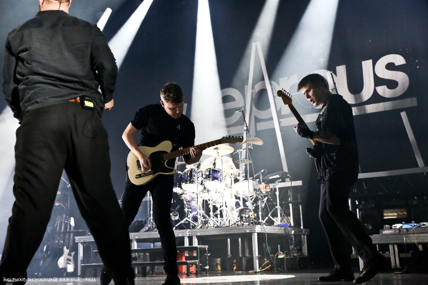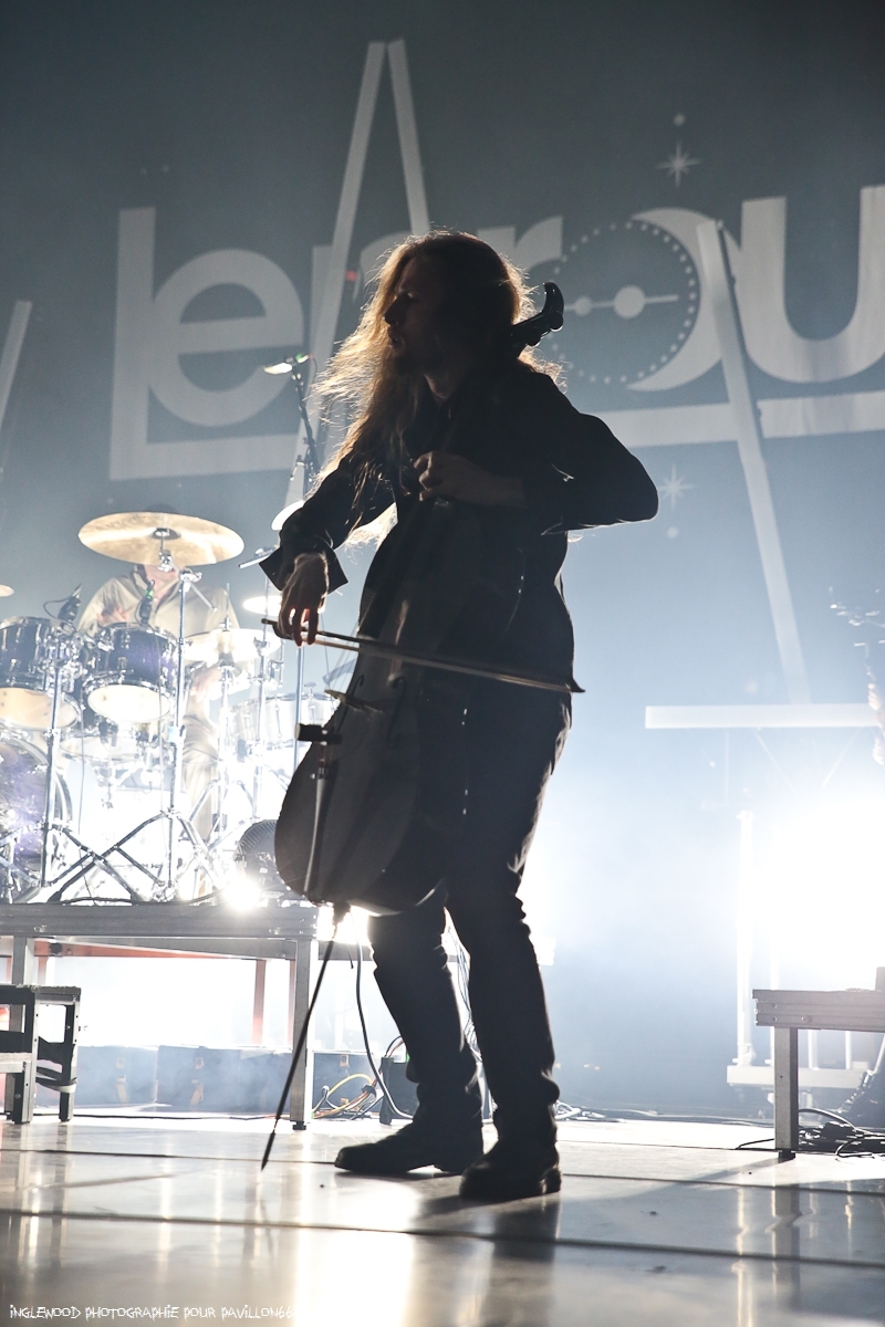 Une fois passé le hall, on arrive dans la rotonde de la salle et c’est carrément magnifique, un chef d’œuvre art-nouveaux. Ce soir, l’affiche et la salle m’inspirent un sentiment de calme et d’introspection et à vrai dire, ce sera le cas. C’est le groupe Norvegien Kalandra qui arrive tôt sur scène (19h) dans un registre pour le moins atmosphérique. Fondé en 2012 à Olso Kalandra sort un premier ep, Beneath The Breaking Waves, en 2017 et dévoile ses premières compositions dans un registre Folk / Pop / Rock aux ambiances glacées. Ils accompagnent par ailleurs Wardruna sur leur tournée en 2022. La chanteuse Katrine Ødegård Stenbekk est assez magnétique et possède une voix incroyable, mais le groupe a eu du mal à installer son ambiance. En effet, le public pourtant très attentif est un peu resté en observation et moi aussi, à vrai dire. Un set hypnotisant, mais pas très captivant. On passe un cap avec les Anglais de Monuments ! La musique proposée est nettement plus dynamique dans un registre metalcore progressif qui va, sans peine, faire monter la température de la salle Playel. Sans être révolutionnaire, le répertoire de Monuments est très entraînant et le chanteur Andy Cizek se donne comme un diable, arpentant la scène et haranguant le public qui va lui donner de beaux mosh pit ! Le groupe est bien en place et le public portant venus en paix se laisse bousculer avec plaisir. Un set convaincant, énergique et bienvenu. Il est à peu près 21 heures quand résonne les notes de « Have you ever ? ». C’est parti pour une heure trente d’un mix parfait entre émotion et énergie brute. Pour moi, il y a au moins deux choses qui font que Leprous est notable dans le paysage du metal progressif, la première est son chanteur Einar Solberg qui est tout bonnement stupéfiant. Inutile de faire l’éloge de ses capacités vocales, elles sont évidentes, c’est juste qu’en live, on est encore plus transporté et attiré par cet homme et ses capacités émotionnelles et poétiques. Tout son corps épouse les mélodies et vous emporte, c’est magnifique. Le second atout (entre autres, évidemment) c’est son batteur Baard Kolstad. Il est puissant, fin, véloce et donne cette touche de groove aux œuvres de Leprous. En plus de tout ça, il est extrêmement spectaculaire sur scène et attire beaucoup de regards. Le groupe communique avec parcimonie, mais les regards des musiciens sont perçants et bienveillants, ils ressentent et captent l’émotion du public en communion, c’est certains. À ma grande surprise, les quelques interventions d'Einar sont plutôt drôles et piquantes (notamment sur ses notions de Français). Moment d’émotion et de revendication quand le groupe à dédié « Castaway Angels » au peuple Ukrainien. « Slava Ukraini » Les musiciens sont toujours en mouvement, y compris le violoncelliste qui est un véritable plus sur scène, ils échangent leur place régulièrement et renforcent les moments de chaos de certains titres. Mon top sera « Castaway Angels », « Below » et « Nighttime Disguise ». J’ai également apprécié le son ciselé et bien défini qui sied parfaitement à de telles ambiances tout comme la mise en scène et le light show parfaitement en adéquation avec le reste. Une magnifique soirée, un lieu sublime et un groupe au sommet, merci. Merci également à Roger de Replica et à l’équipe de la Salle Pleyel. |