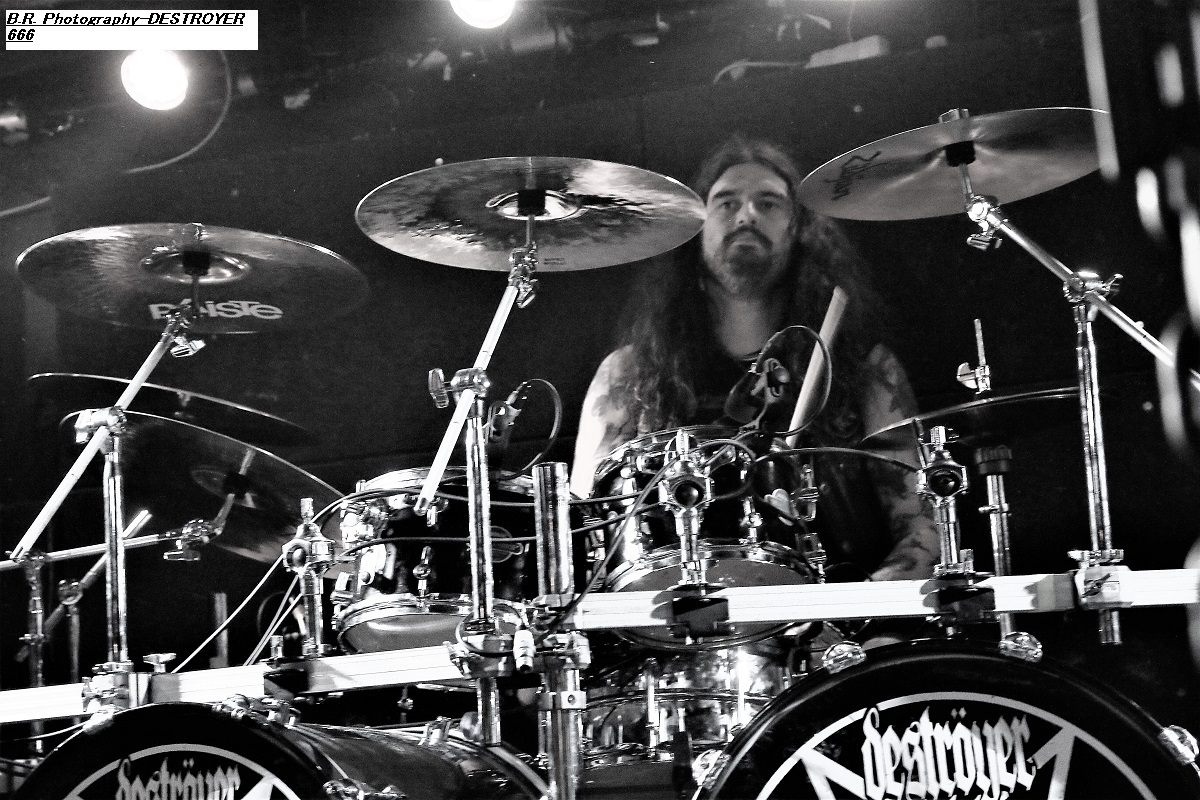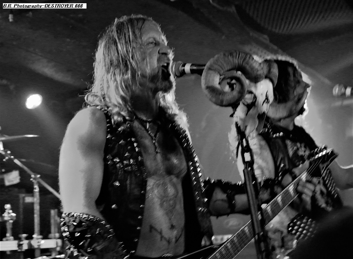 Nous commençons la soirée en compagnie d'HELLERUIN officiant dans un certain « true » black-metal sans compromis. Ce groupe batave a été créé en 2015 par Carchost seul et unique membre officiel qui se produit sur scène avec des musiciens de live. Et sur scène leur black se révèle puissant et habité, inspiré par la vieille école, mais un black qui sort de l'ordinaire et fait une entrée remarquée dans les hordes actuelles de BM. Pour aller plus loin écoutez donc leur premier album de 2021 intitulé « War Upon Man », enregistrement bien accueilli par la critique et écoutez aussi leur nouveau single « Hymn of Life and Death » prélude au prochain opus à paraître en juin prochain. Leurs compatriotes de BODYFARM viennent défendre sur les planches leur nouvel album de 2023 intitulé « Ultimate Abomination ». Comme l'indique le titre de l'opus, ici on ne fait pas dans la dentelle et 14 ans après sa formation le groupe remonte avec vigueur au créneau d'un death-metal old-school, certes, mais crachant son venin mélodique entre parties agressives sur un rythme d'enfer. Bien sûr, dans la fosse ça commence à bien remuer ce qui stimule nos hollandais de la mort qui tue, et sur ce terrain-là ils n'ont besoin de personne pour leur donner des leçons. Alors fatalement on adhère pleinement à leur show très chaud, voyons ! Retour à Lyon de DESTRÖYER 666 ce Mercredi soir 8 Mars 2023, ce combo sale, violent et destructeur (sic) de neurones qui fus fondé en Australie en 1994, mais qui s'est installé en Europe maintenant (en Angleterre plus précisément), est là devant nous afin de nous infliger une « raclée » dont on se souviendra longtemps ! Les fans du premier rang sont collés à la scène avec leurs blousons Deströyer 666 évidemment. Groupe très attendu donc et dès le premier titre le monstrueux « Never Surrender » issu de leur 5ème et nouvel album du même nom, ça part dans tous les sens dans un Rock n'Eat chaud comme la braise, aargh ! Destrôyer 666 détruit tout sur son passage comme Attila et ses Huns. Son mélange de death/thrash/black, fils d'une copulation improbable entre Motörhead et Marduk se révèle être d'une sauvagerie incroyable. C'est tranchant comme une lame de rasoir, puissant, sur des rythmes implacables, comment résister ? Quelques touches de mélodies malsaines viennent infiltrer une agressivité de tous les instants. Alors nous en avons pris plein la « g...le » et plein les côtes, mais que c'était bon ! Merci à Access Live pour l'accréditation, merci aux 3 groupes venus d'ailleurs pour une soirée « destroy » et bien entendu merci au Rock n'Eat pour l'accueil ! |